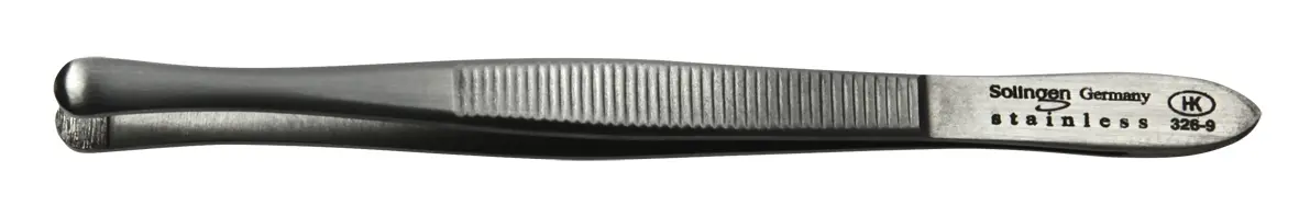 Bei dieser Pinzette sind die Spitzen des Kopfes zur Minimierung des Verletzungrisikos abgerundet.
