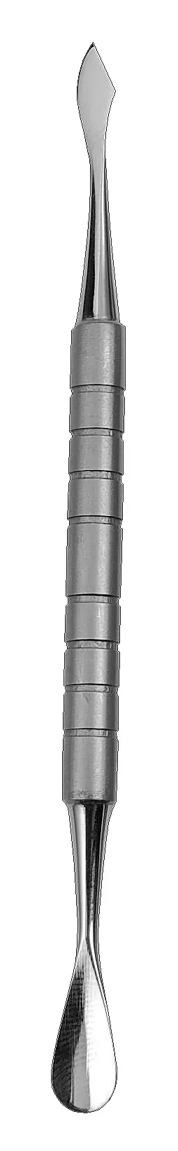 Dieses Doppelinstrument ist sorgfältig aus rostfreiem Edelstahl gefertigt. Mit seinem löffelähnlichen Ende lässt sich überschüssige Nagelhaut sanft zurückschieben, mit dem Nagelmesser am anderen Ende können abgestorbene Hornpartikel auf dem Nagelrücken sauber entfernt werden.