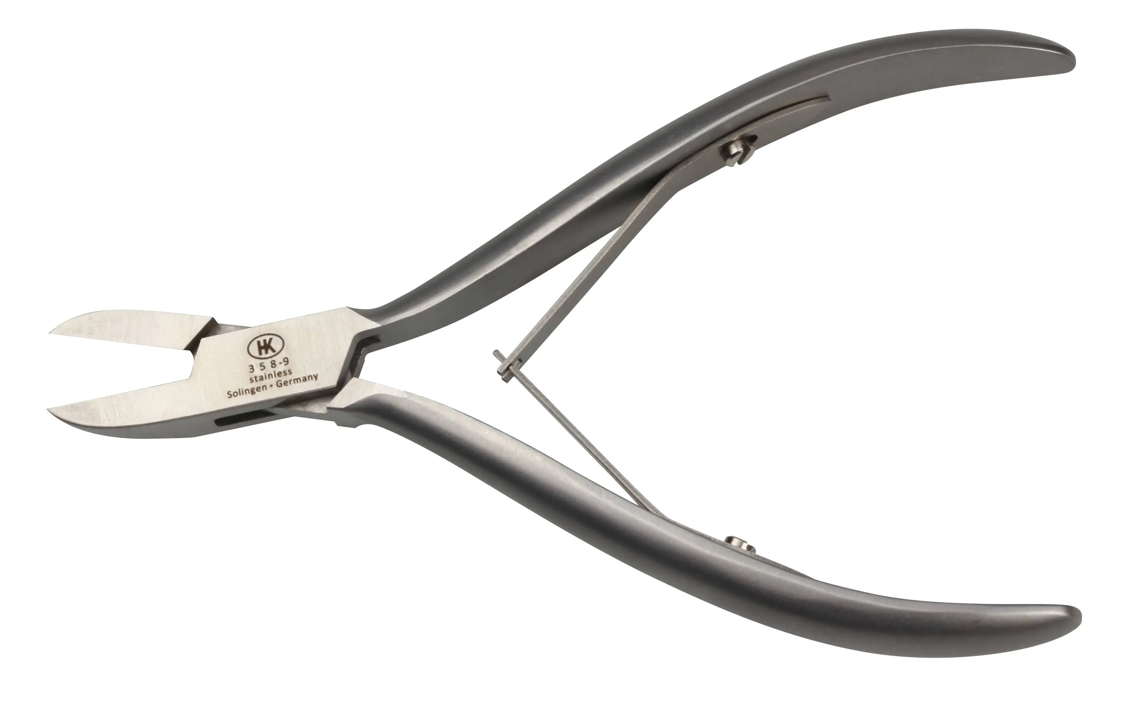 Diese Eckenzange mit Ihren geraden Schneiden ist besonders dafür ausgelegt, eingewachsene Nägel zu schneiden. Mit 130 mm Gesamtlänge nutzt sie die Hebelkraft über ihre Langen Schenkel optimal und reduziert so den erforderlichen Kraftaufwand. Die durchgesteckte Fertigungsweise verleiht ihr eine hohe Stabilität. Bei durchgesteckten Zangen wird der Durchgange im Oberbeck zunächst glühend erhitzt und dann geweitet, um sodann den Unterbeck "durchzustecken".