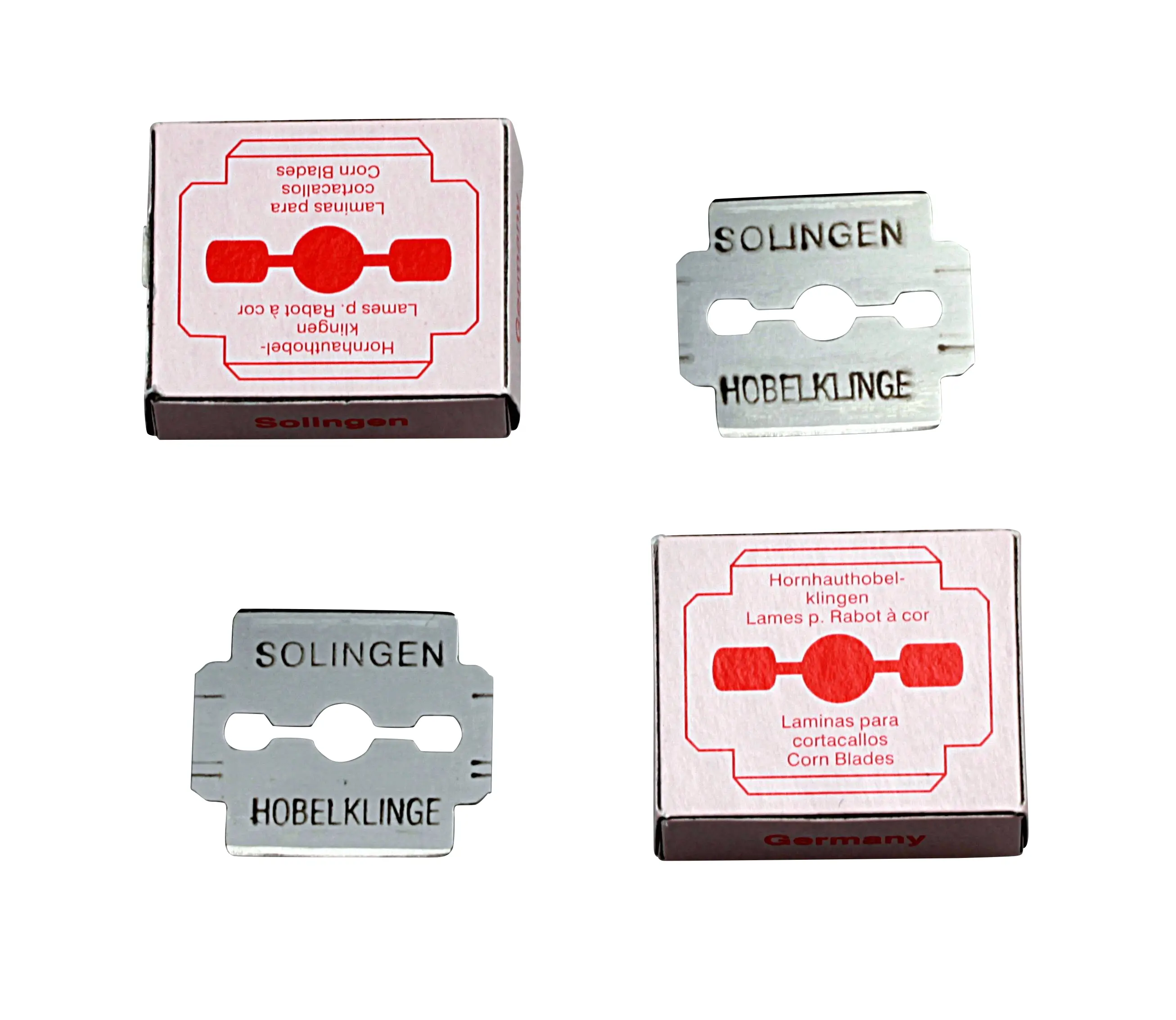 Diese Ersatzklingen "made in Solingen" sind für handelsübliche Hornhauthobel geeignet. Achten Sie immer darauf, die Klingen Ihres Hobels rechtzeitig auszutauschen, um so ein einwandfreies Ergebnis zu erzielen und ganz besonders auch die Verletzungsgefahr zu reduzieren.