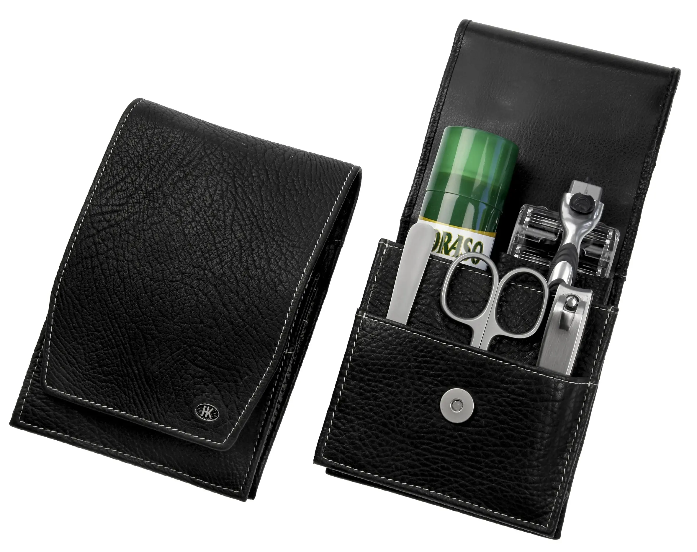 Herren-Pflegeset: 6-tlg. Bestückung, rostfrei; Büffelleder, schwarz