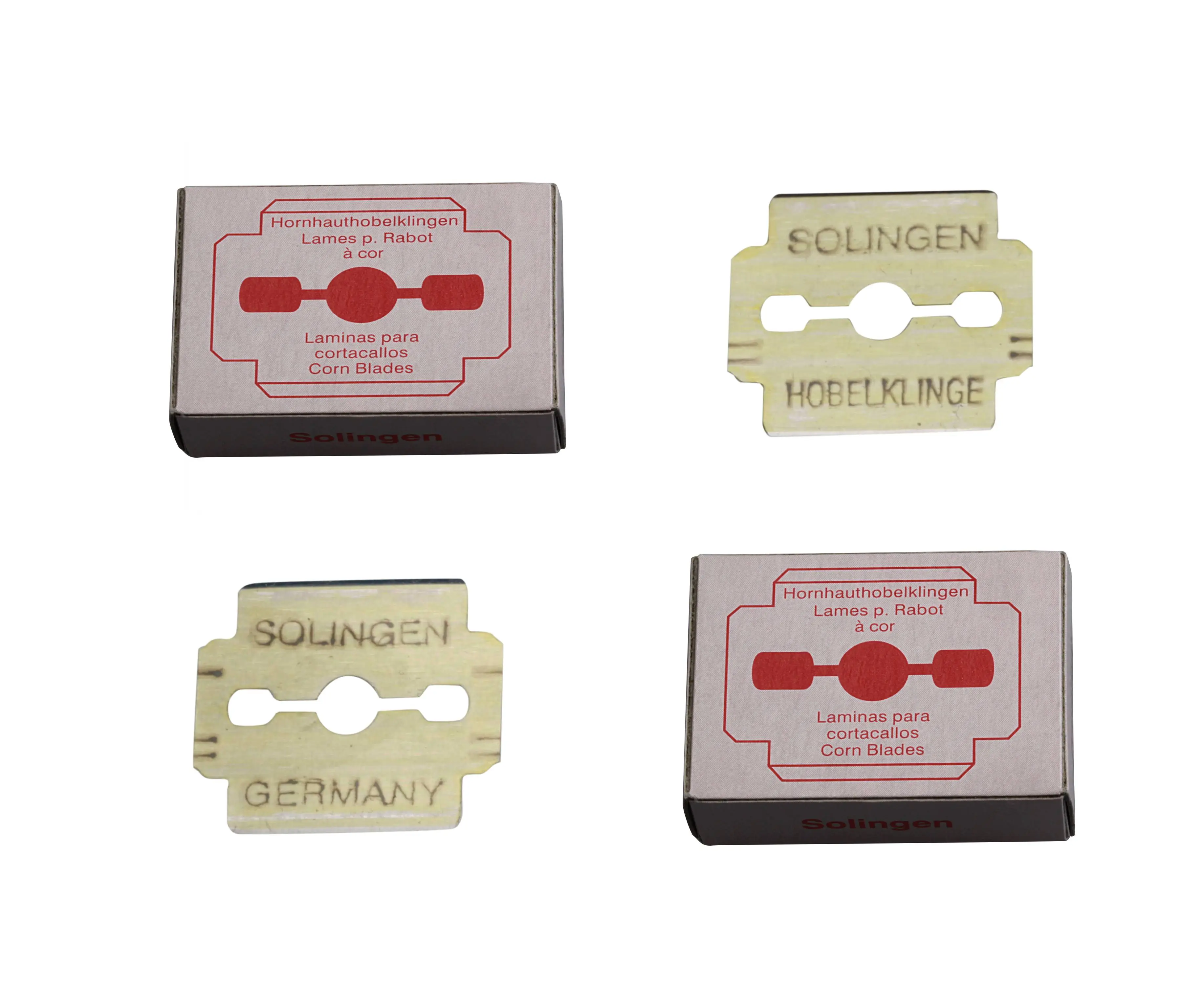 Diese Ersatzklingen "made in Solingen" sind für alle handelsüblichen Hornhauthobel geeignet - so auch für unseren komplett aus rostfreiem Edelstahl gefertigten Hornhauthobel Nr. 26-9000. Alle zehn Klingen sind hygienisch einzeln verpackt.