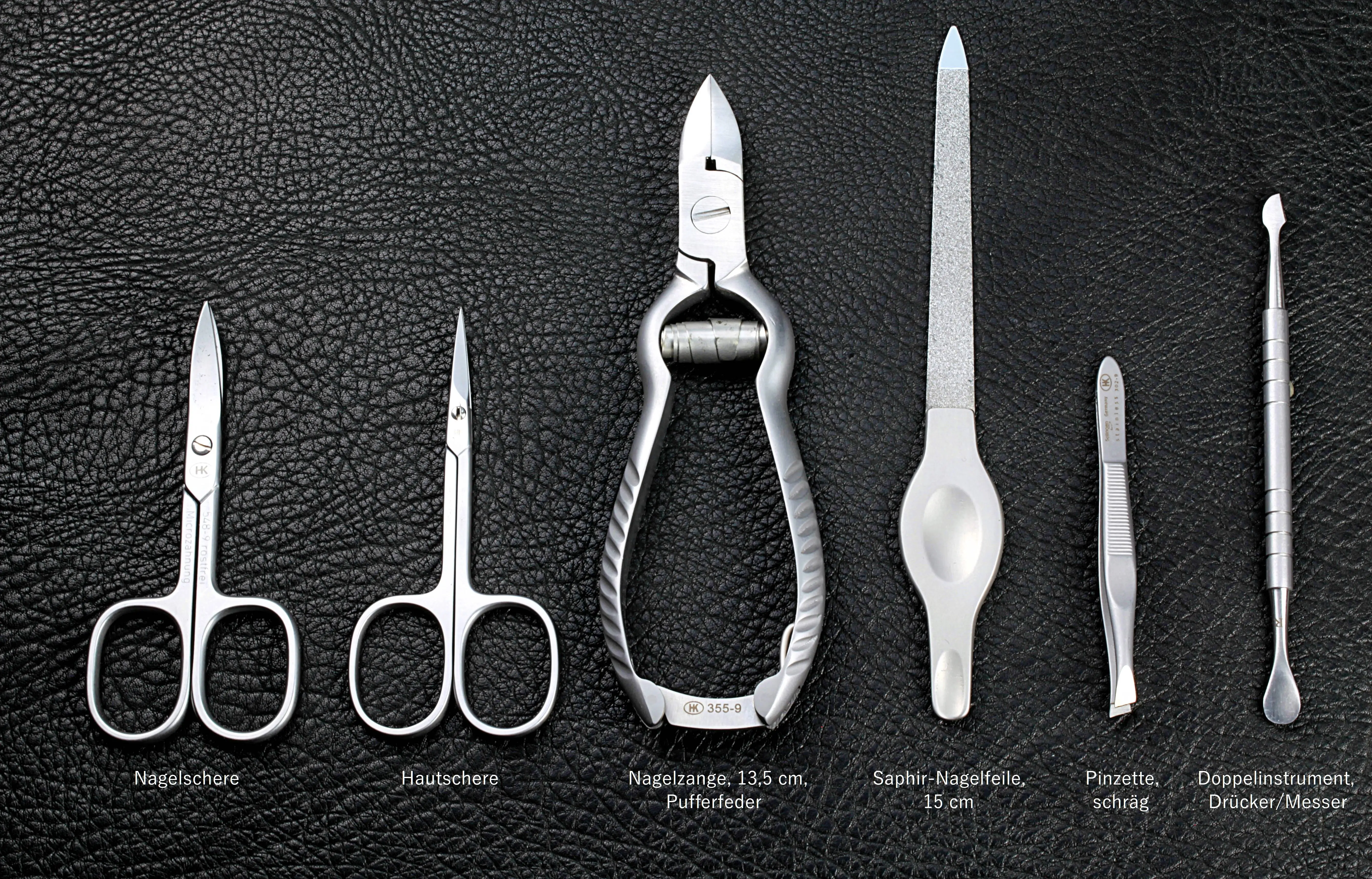 Klassisch maskulines Manicure-Etui mit einer hochwertigen sechsteiligen Bestückung: