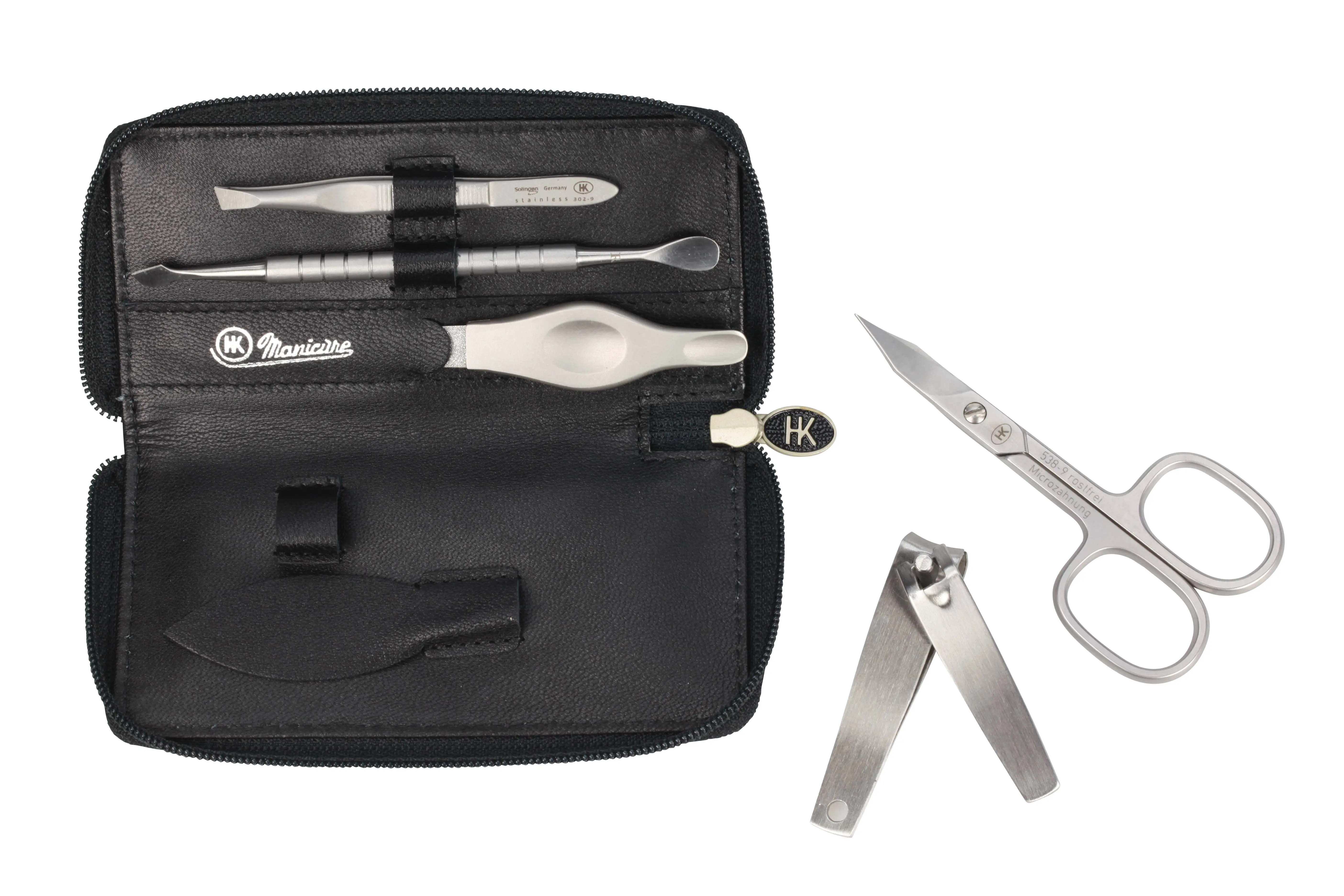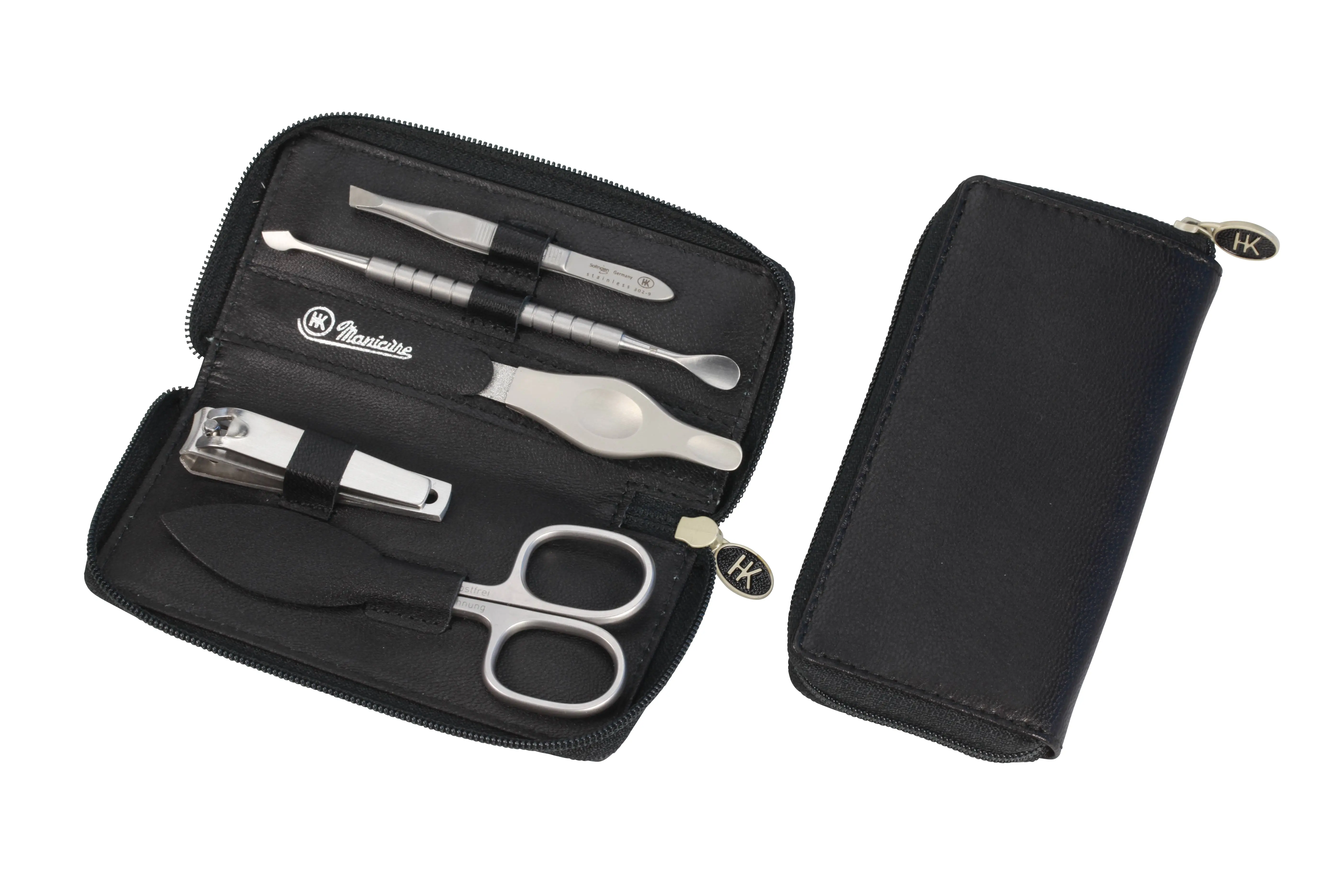 Manicure-Etu mit Reißverschluss: 5-tlg. Bestückung, rostfrei-edelmattiert; Amalfi-Vollrindleder, schwarz