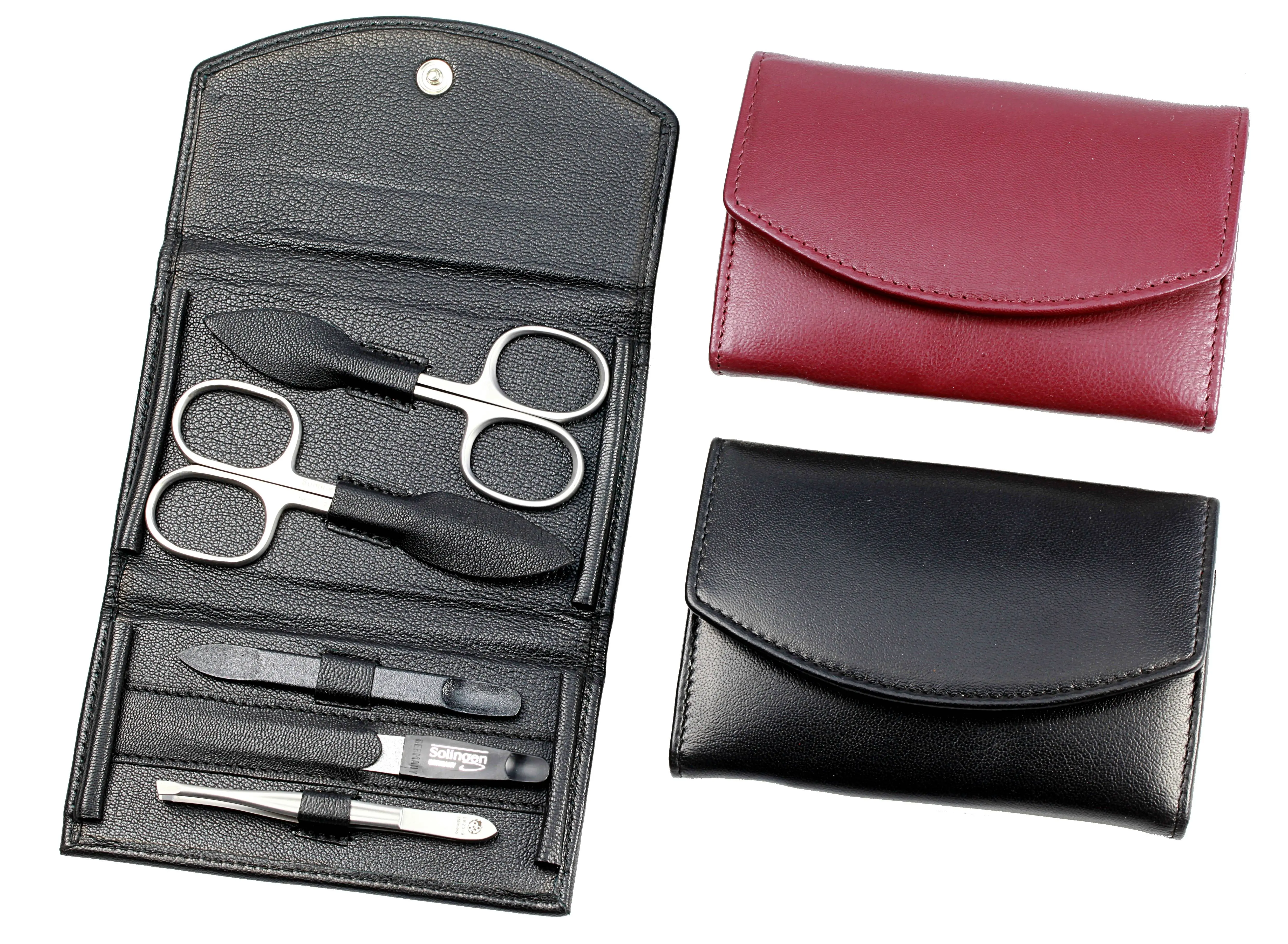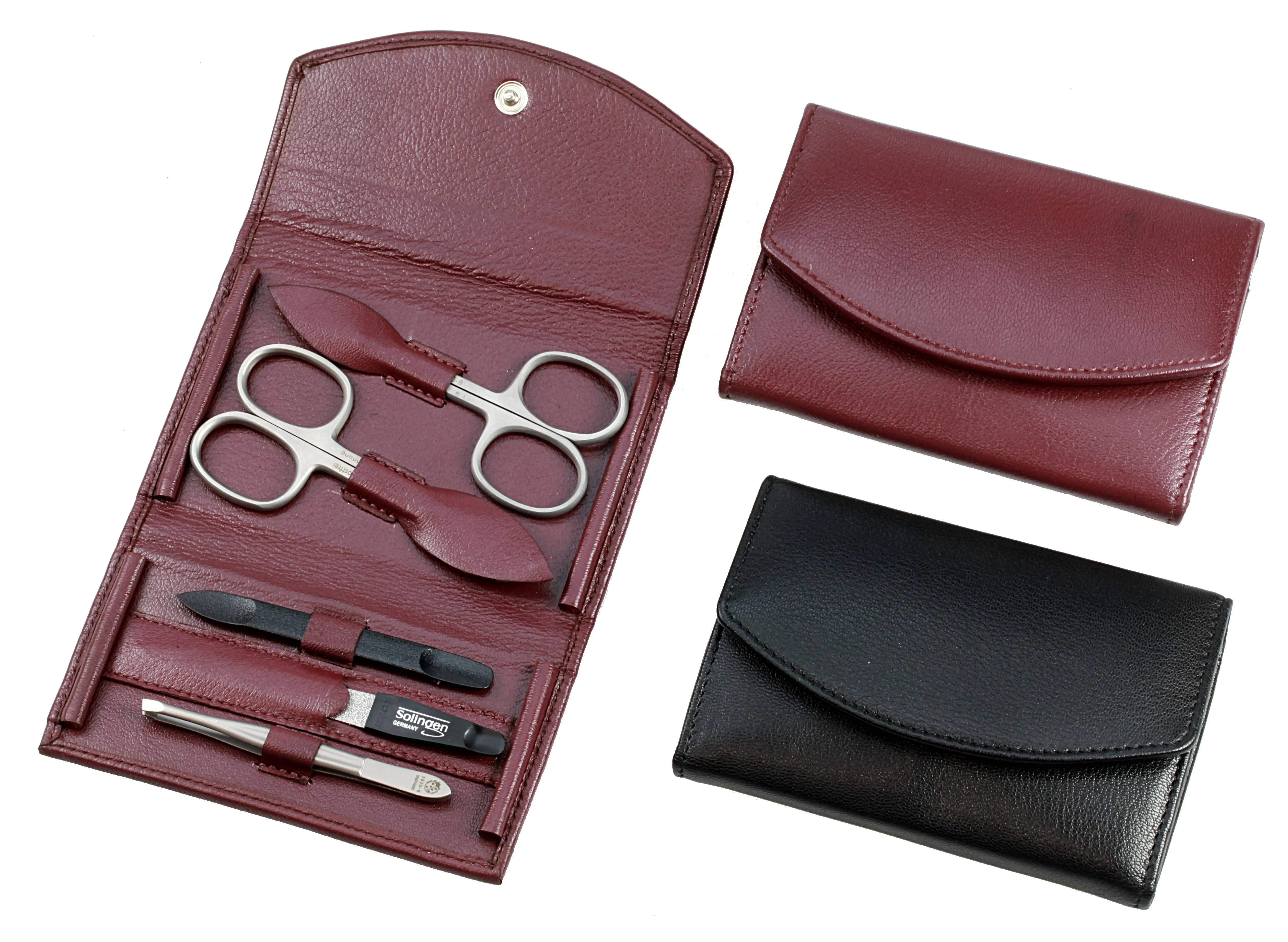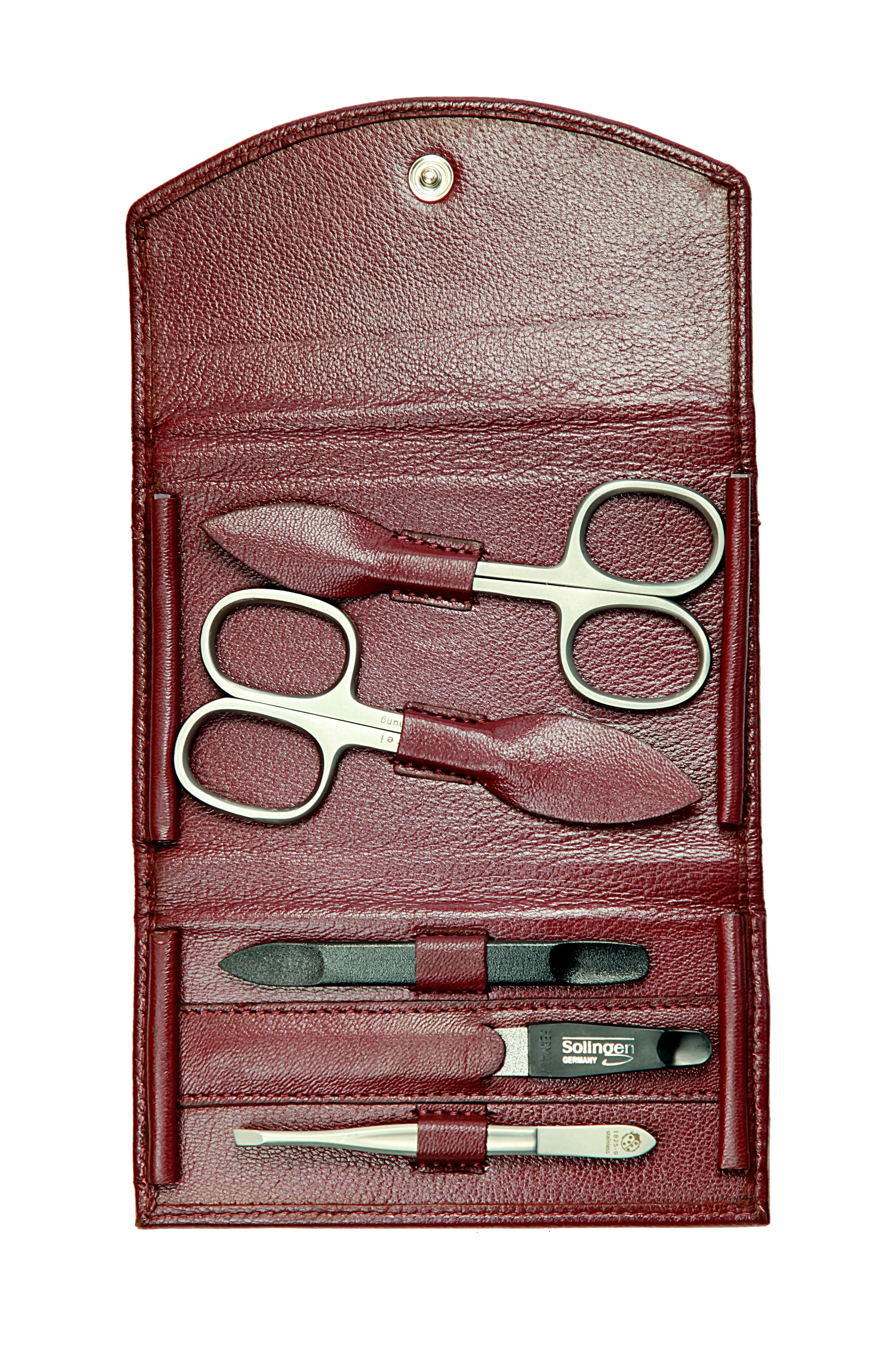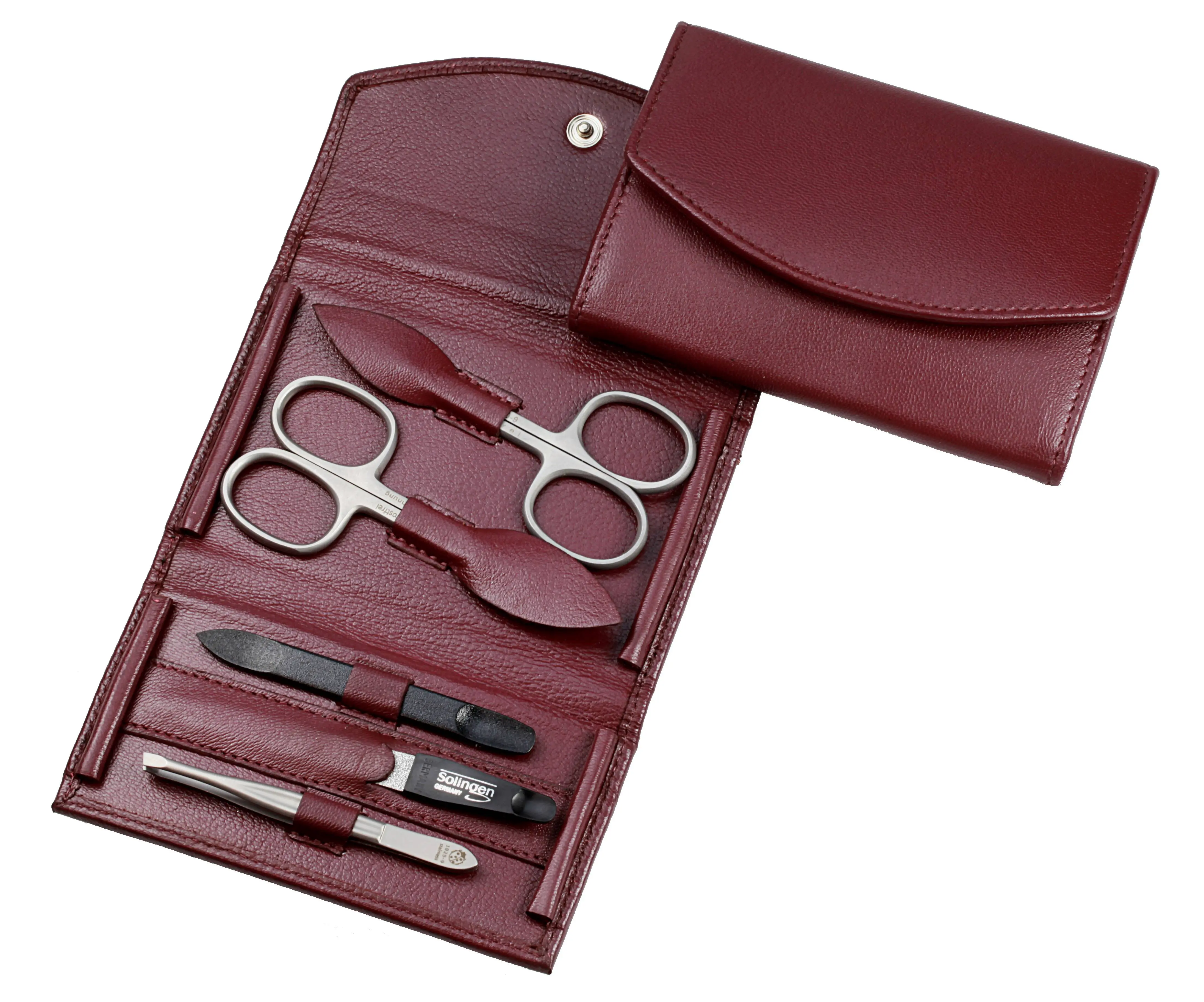 Manicure-Etui: 5-tlg. Bestückung, rostfrei-edelmattiert; Nappa-Lammleder, bordeaux