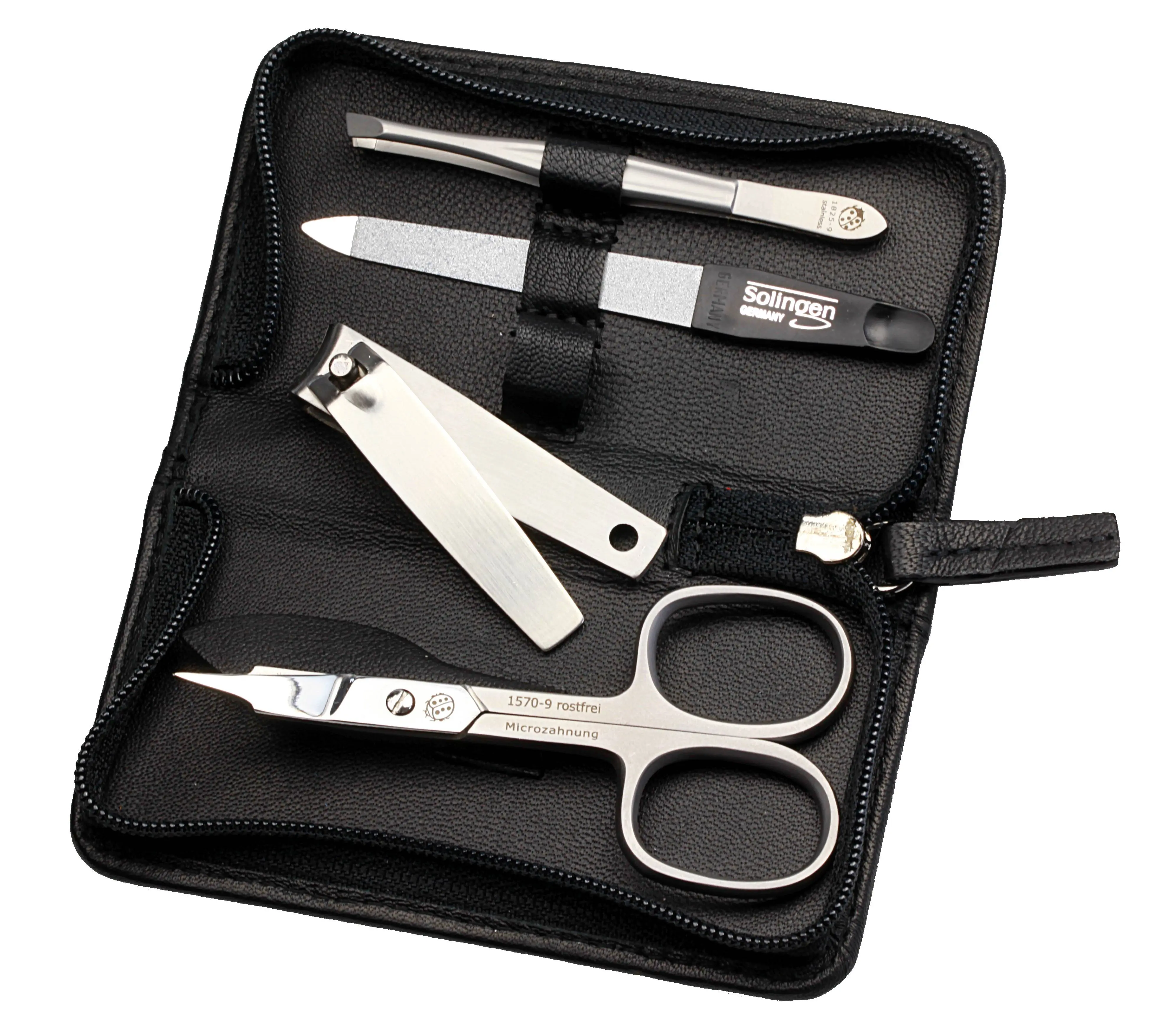 Produktinformationen "Manicure-Etui, Reißverschluss: 4-tlg. Bestückung, rostfrei-edelmattiert; Nappa-Lammleder, schwarz"
