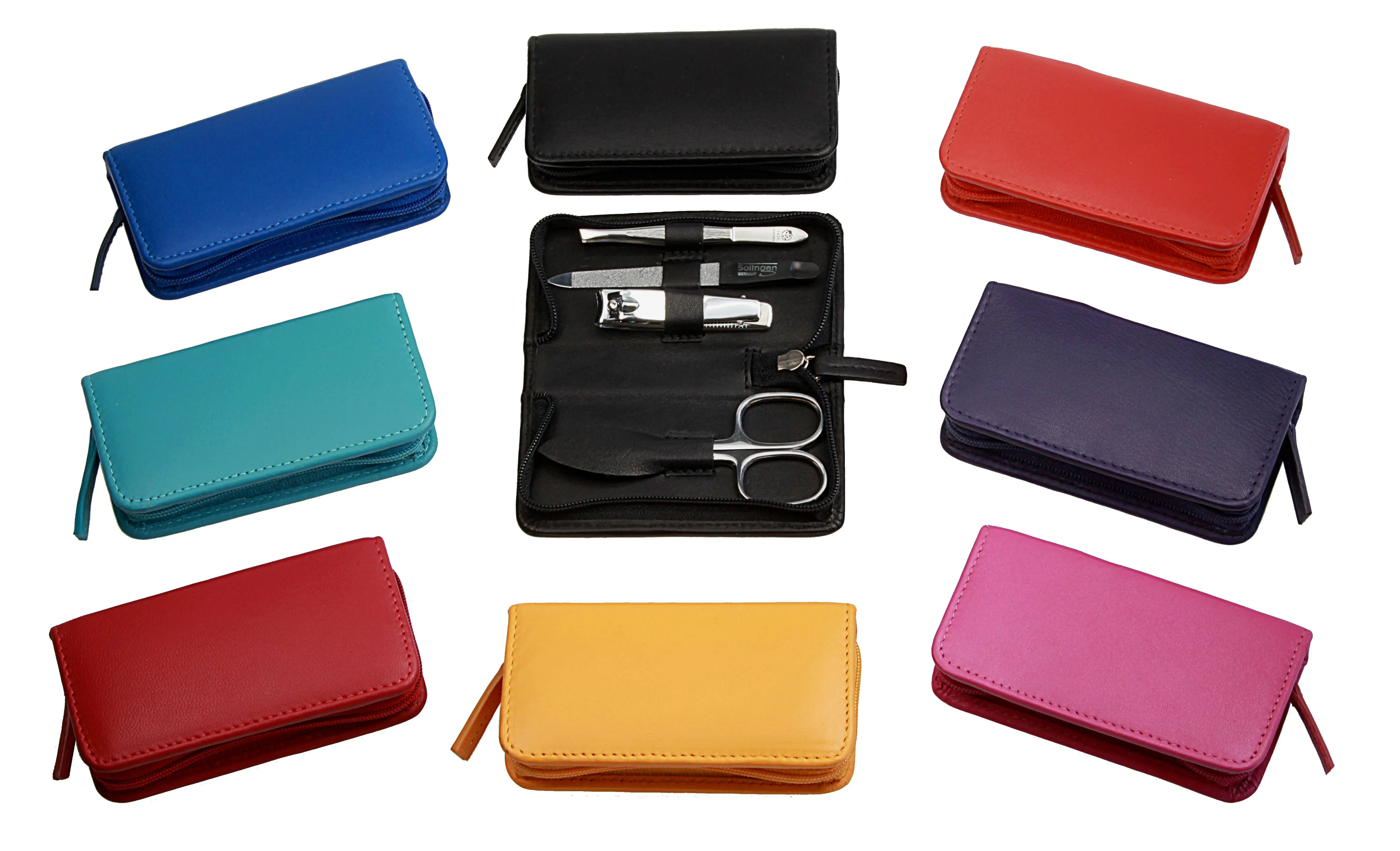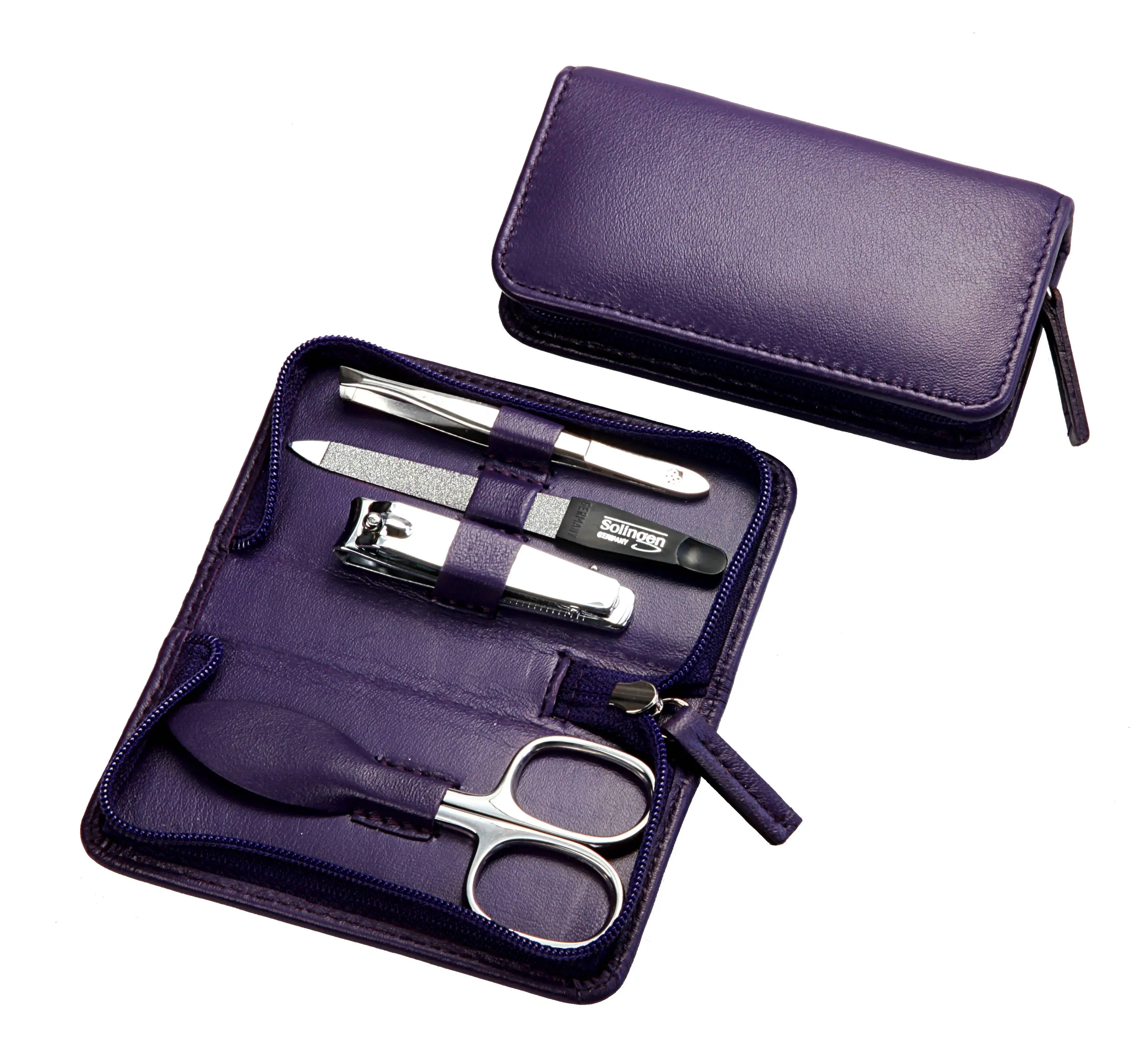 Produktinformationen "Manicure-Etui, Reißverschluss: 4-tlg. Bestückung, rostfrei-glanzpoliert; Nappa-Lammleder, lila"