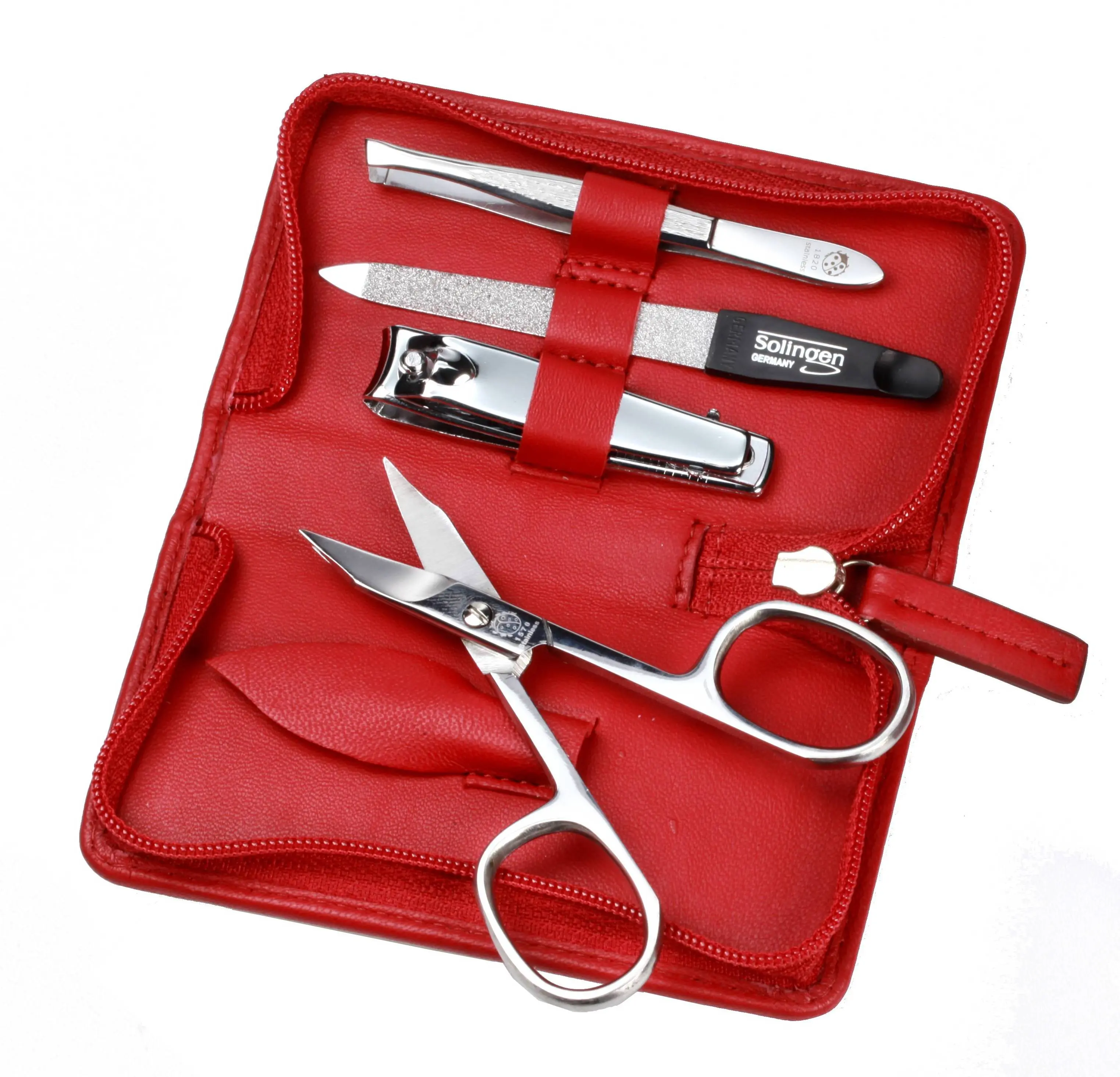 Ein Klassiker unserer Kollektion ist dieses Reißverschluss-Etui: Mit Liebe zum Detail ist es aus handschuhweichem Nappa-Vollrindleder in einem modisch frischen Rot sorgfältig gefertigt. Schlicht im Design und kompakt in seinen Abmessungen, kann es durch die "inneren Werte" absolut überzeugen! Die vier hochwertigen Nagelpflegeinstrumente sind präzise aus rostfreiem Edelstahl in glanzpolierter Ausführung gefertigt: