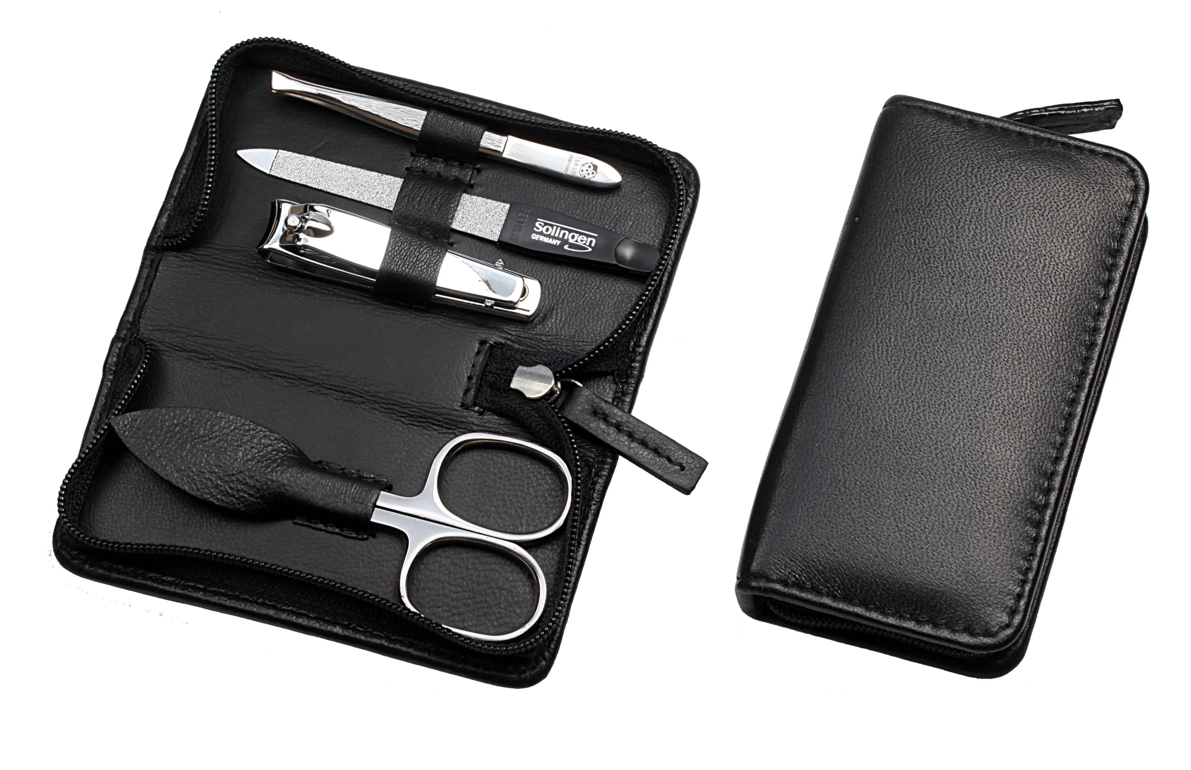 Produktinformationen "Manicure-Etui, Reißverschluss: 4-tlg. Bestückung, rostfrei-glanzpoliert; Nappa-Lammleder, schwarz"