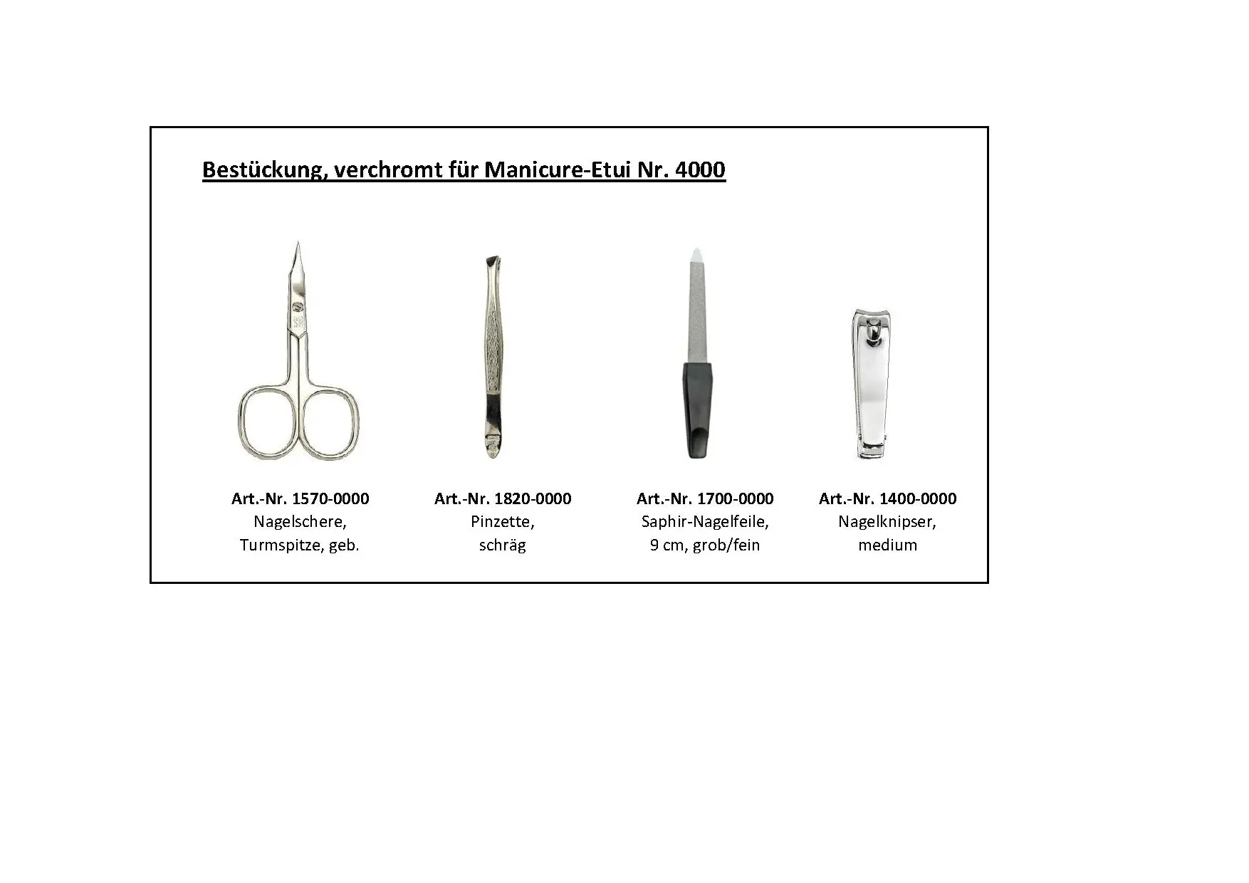 - Nagelschere mit Turmspitze zum Schneiden des Nagels sowie der Nagelhaut