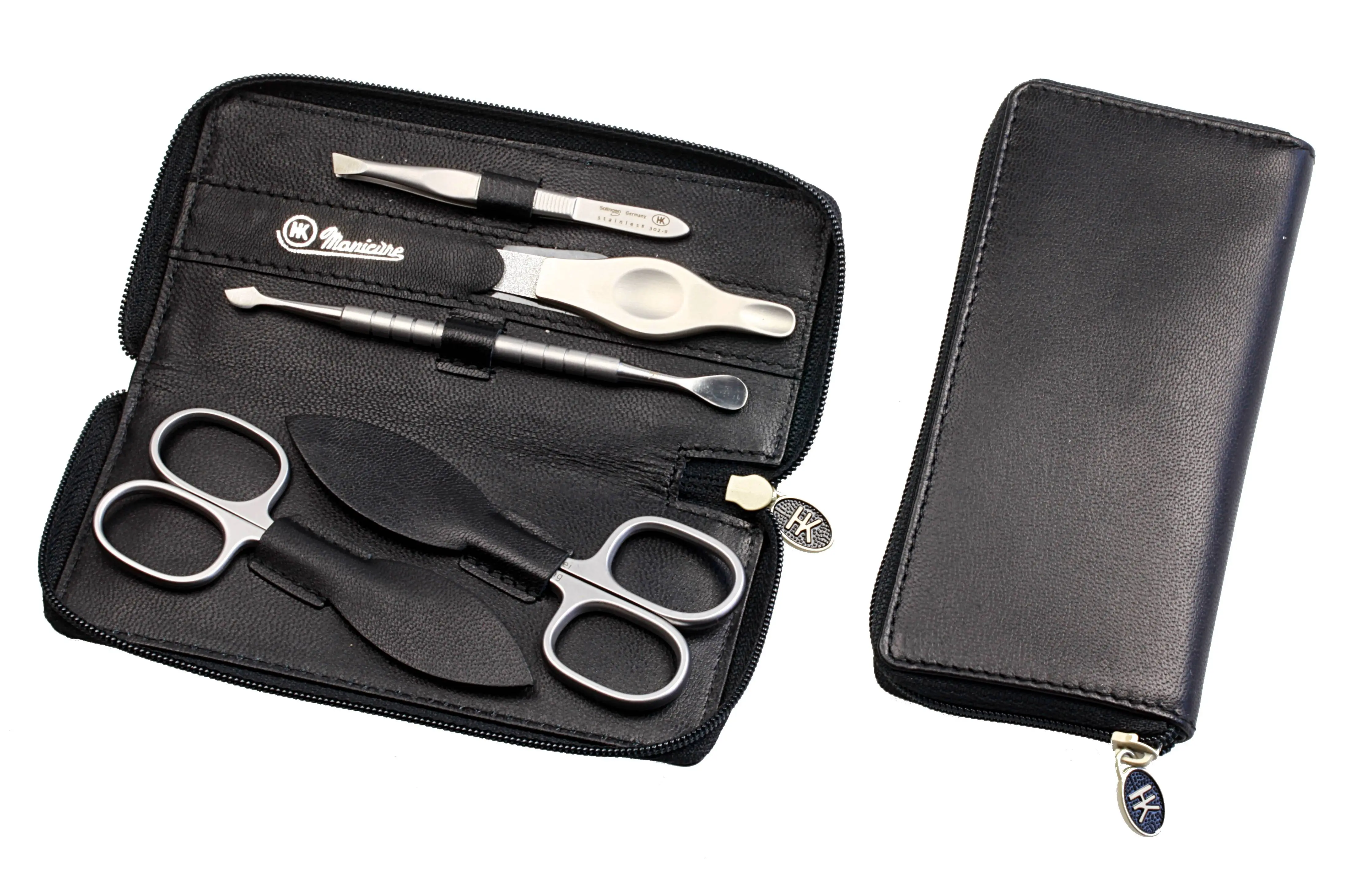 Manicure-Etui, Reißverschluss: 5-tlg. Bestückung, rostfrei-edelmattiert; Amalfi-Vollrindleder, schwarz
