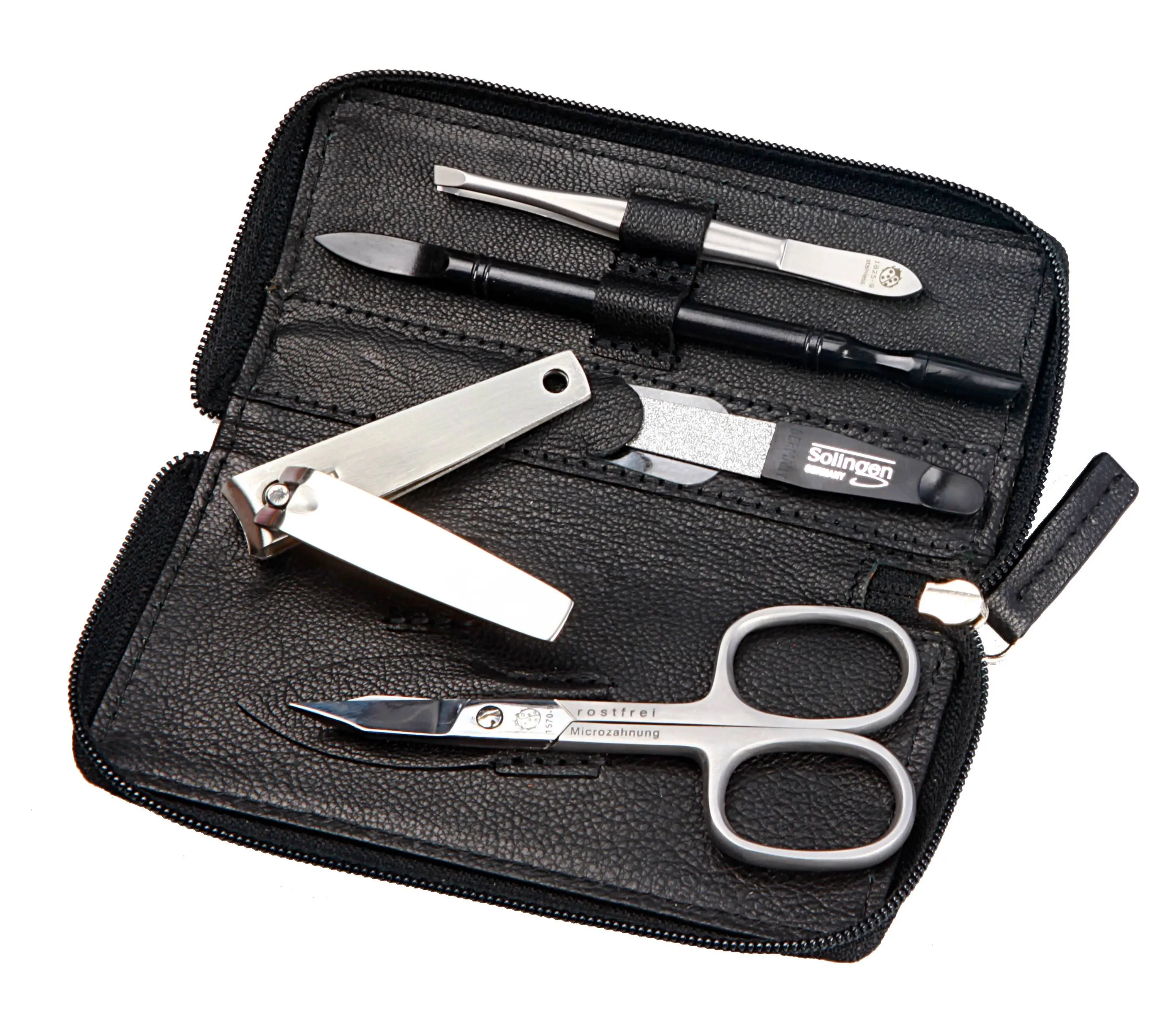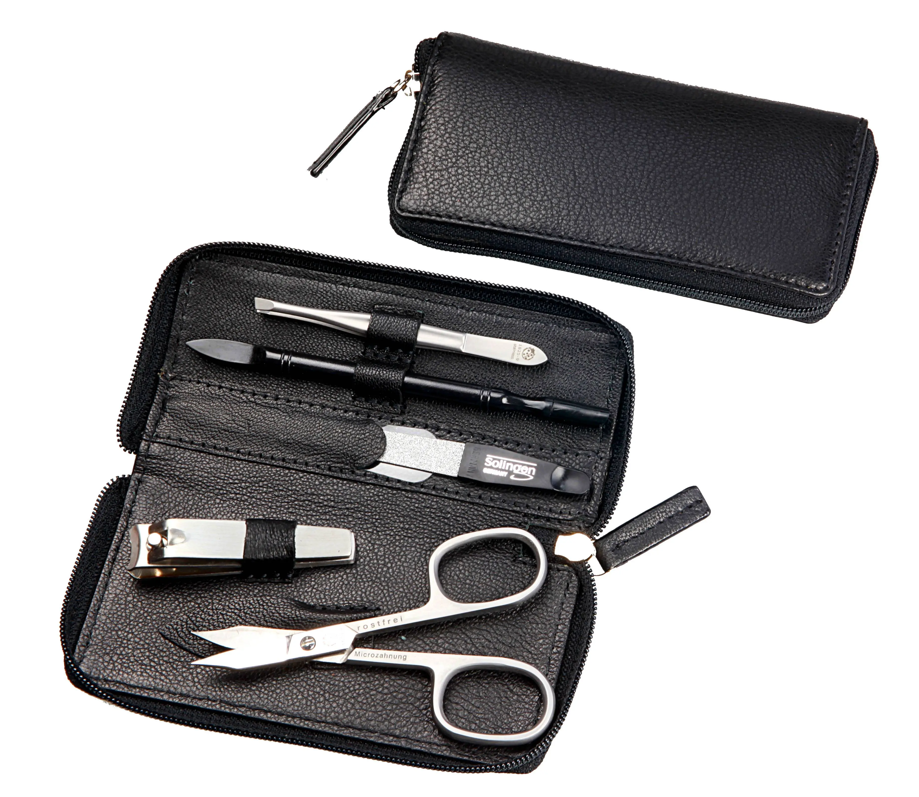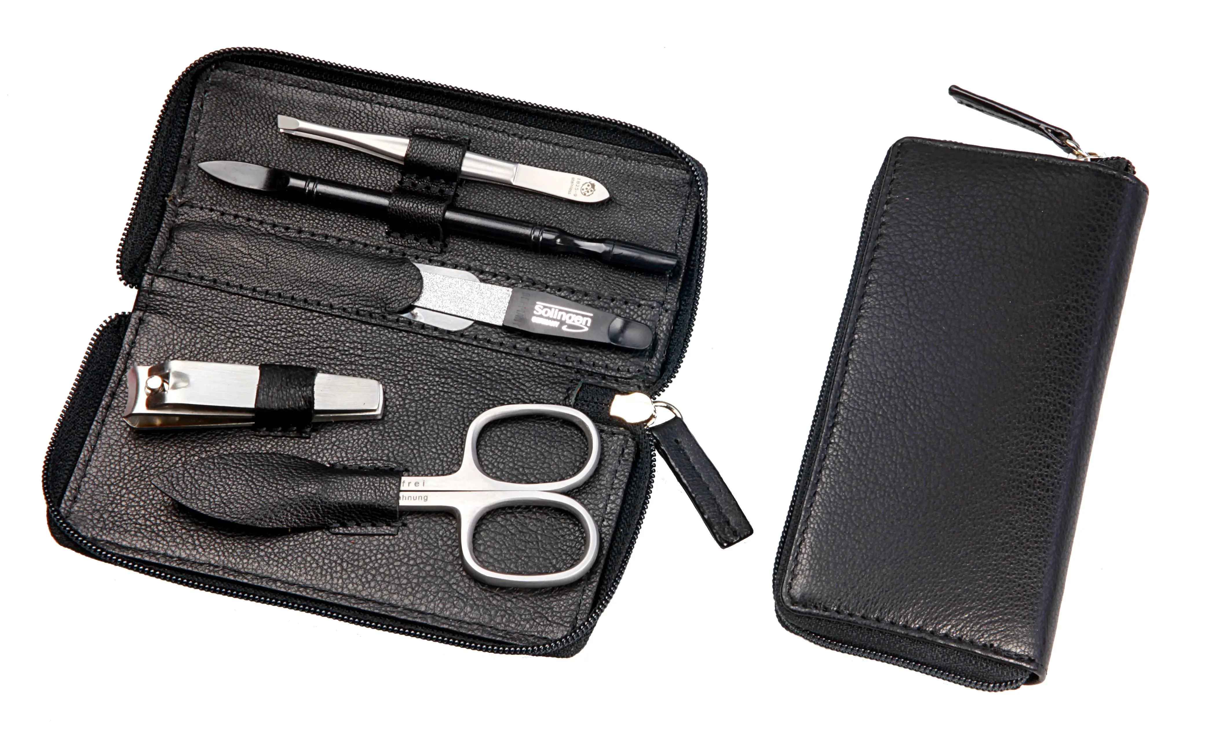Produktinformationen "Manicure-Etui, Reißverschluss: 5-tlg. Bestückung, rostfrei-edelmattiert; Nappa-Schafleder, schwarz"