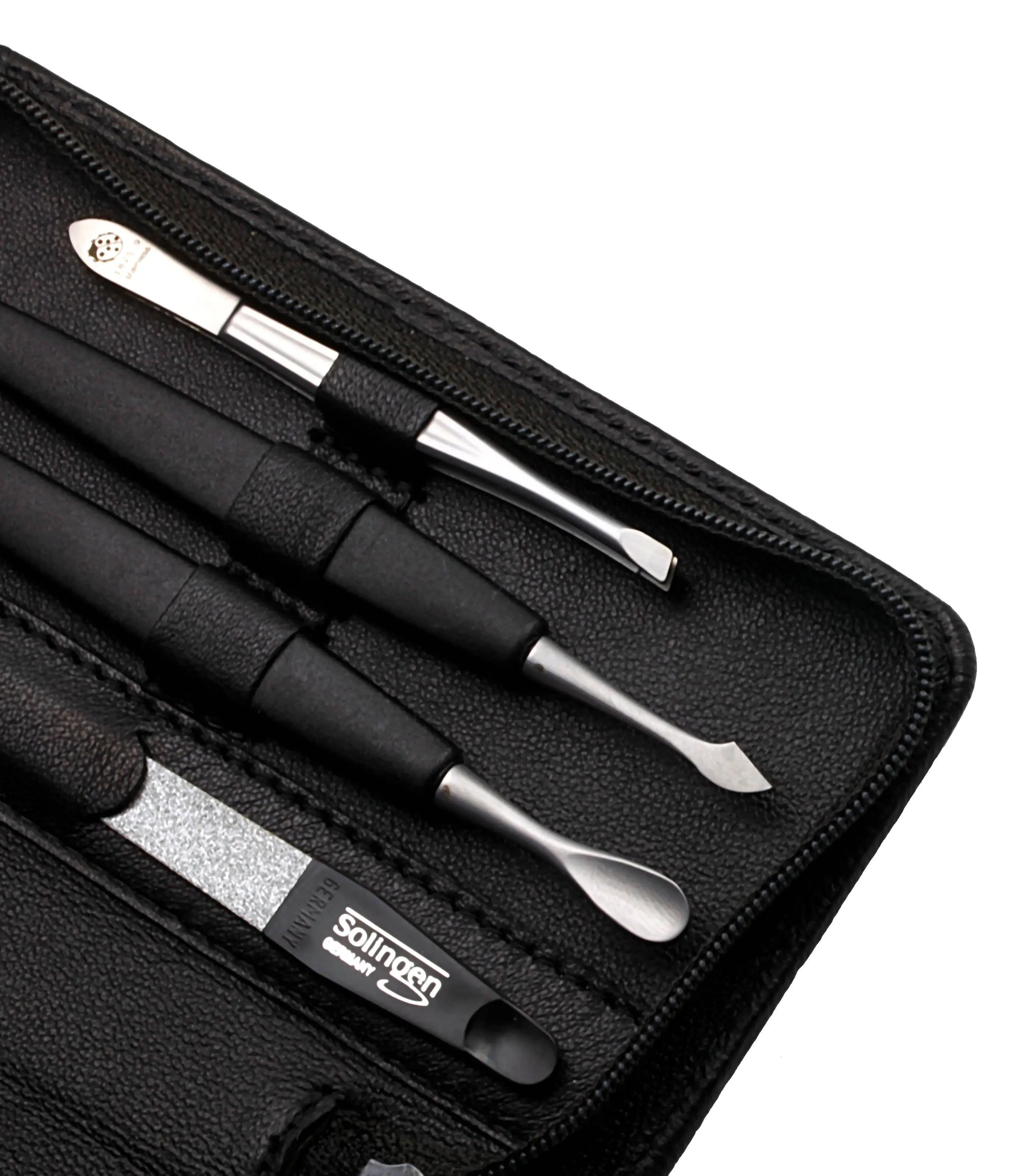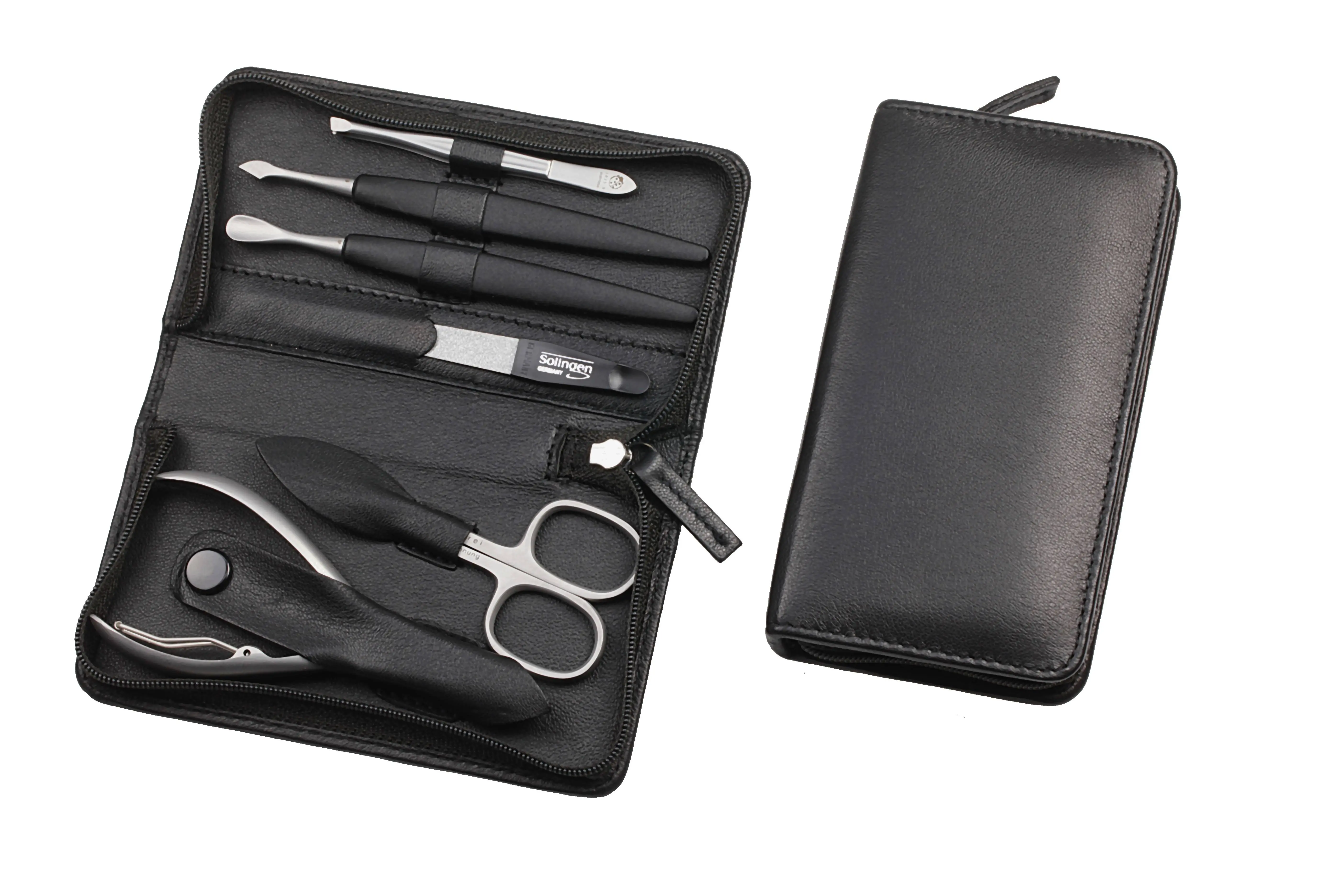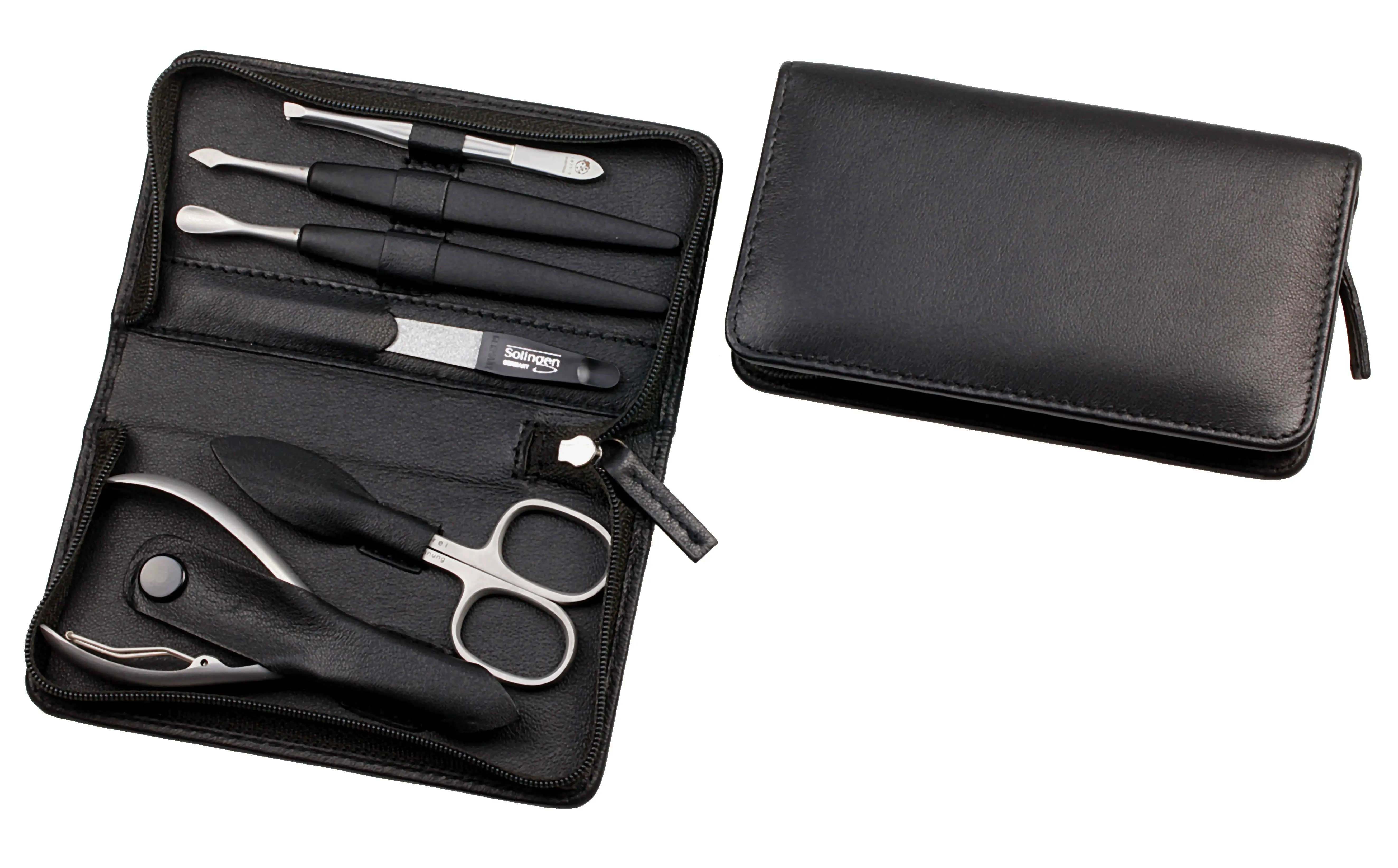 Produktinformationen "Manicure-Etui, Reißverschluss: 6-tlg. Bestückung, rostfrei-edelmattiert; Nappa-Lammleder, schwarz"