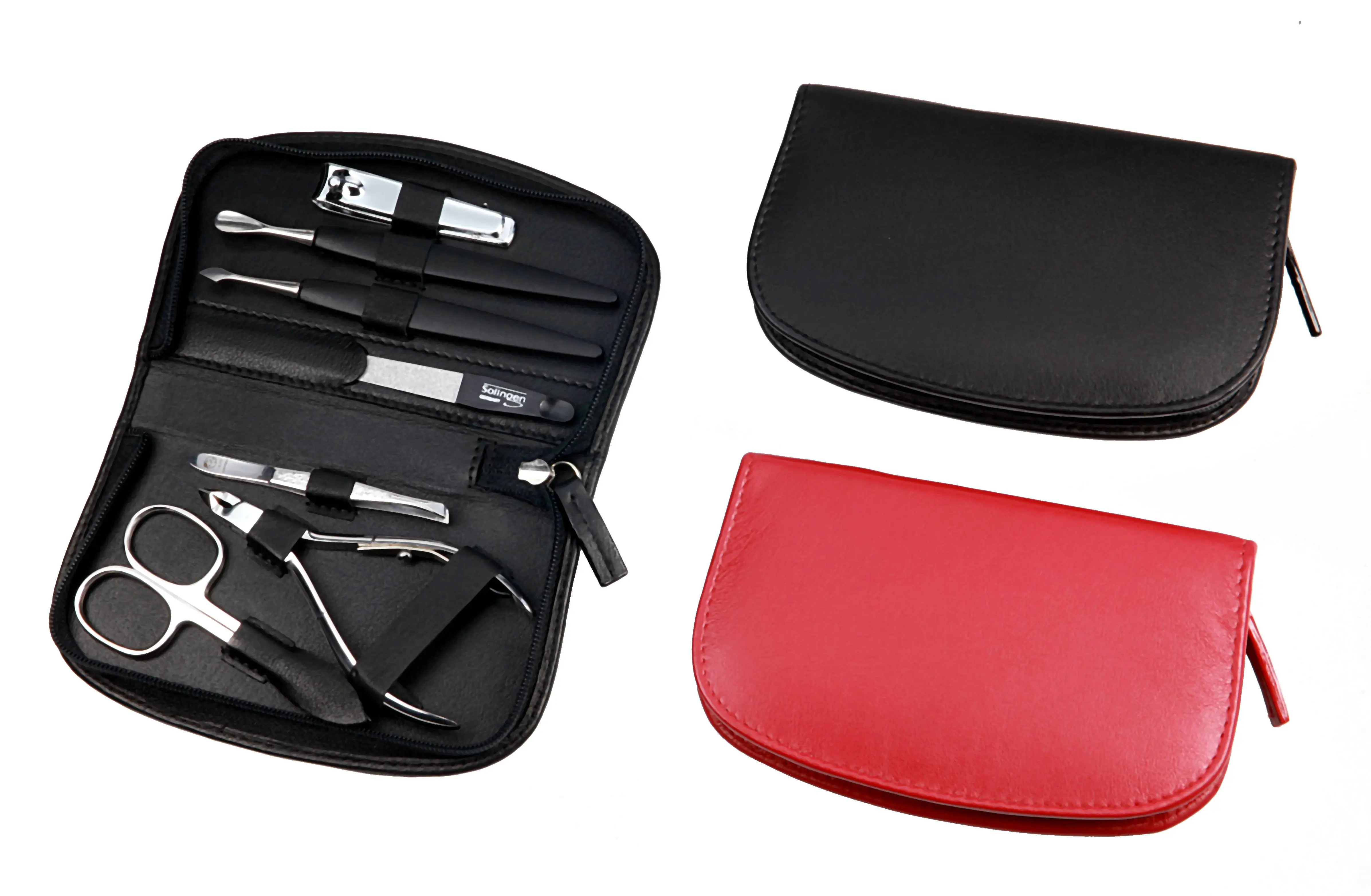 Produktinformationen "Manicure-Etui, Reißverschluss: 7-tlg. Bestückung, rostfrei-glanzpoliert; Nappa-Lammleder, rot"