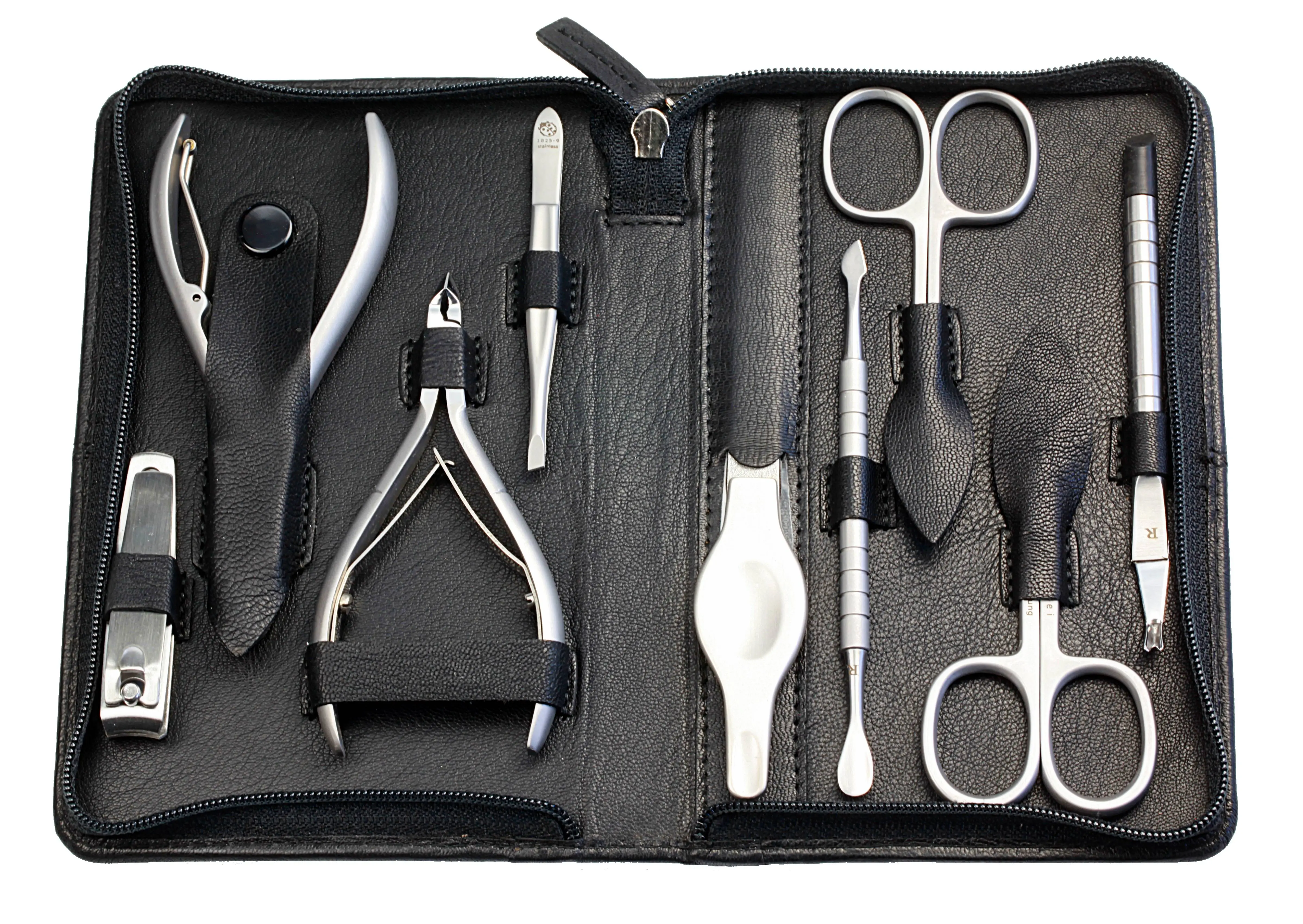 Produktinformationen "Manicure-Etui, Reißverschluss: 9-tlg. Bestückung, rostfrei-edelmattiert; echt Nappa-Schafleder, schwarz"
