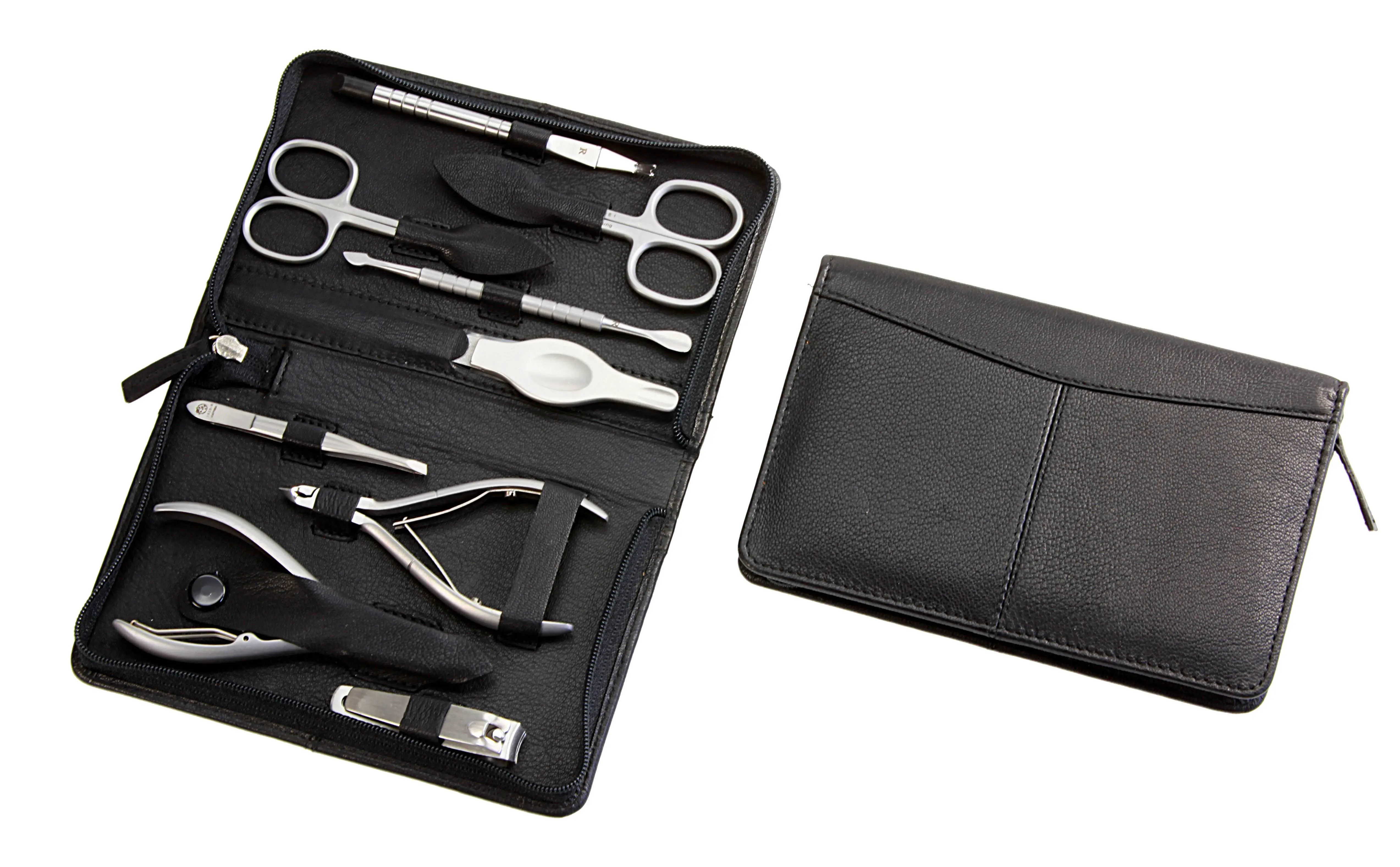 Manicure-Etui, Reißverschluss: 9-tlg. Bestückung, rostfrei-edelmattiert; echt Nappa-Schafleder, schwarz