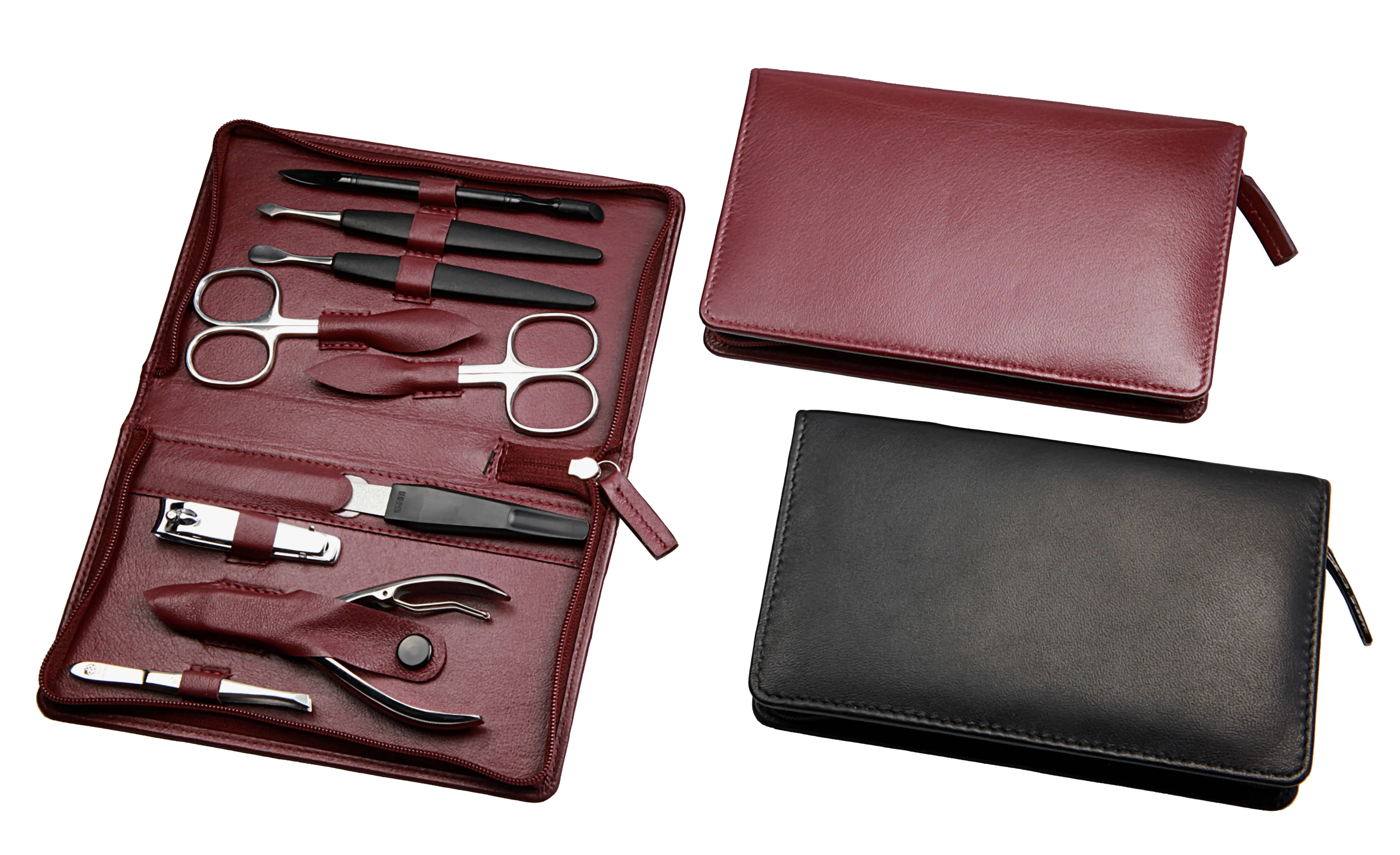 Produktinformationen "Manicure-Etui, Reißverschluss: 9-tlg. Bestückung, rostfrei-glanzpoliert; Nappa-Lammleder, bordeaux"