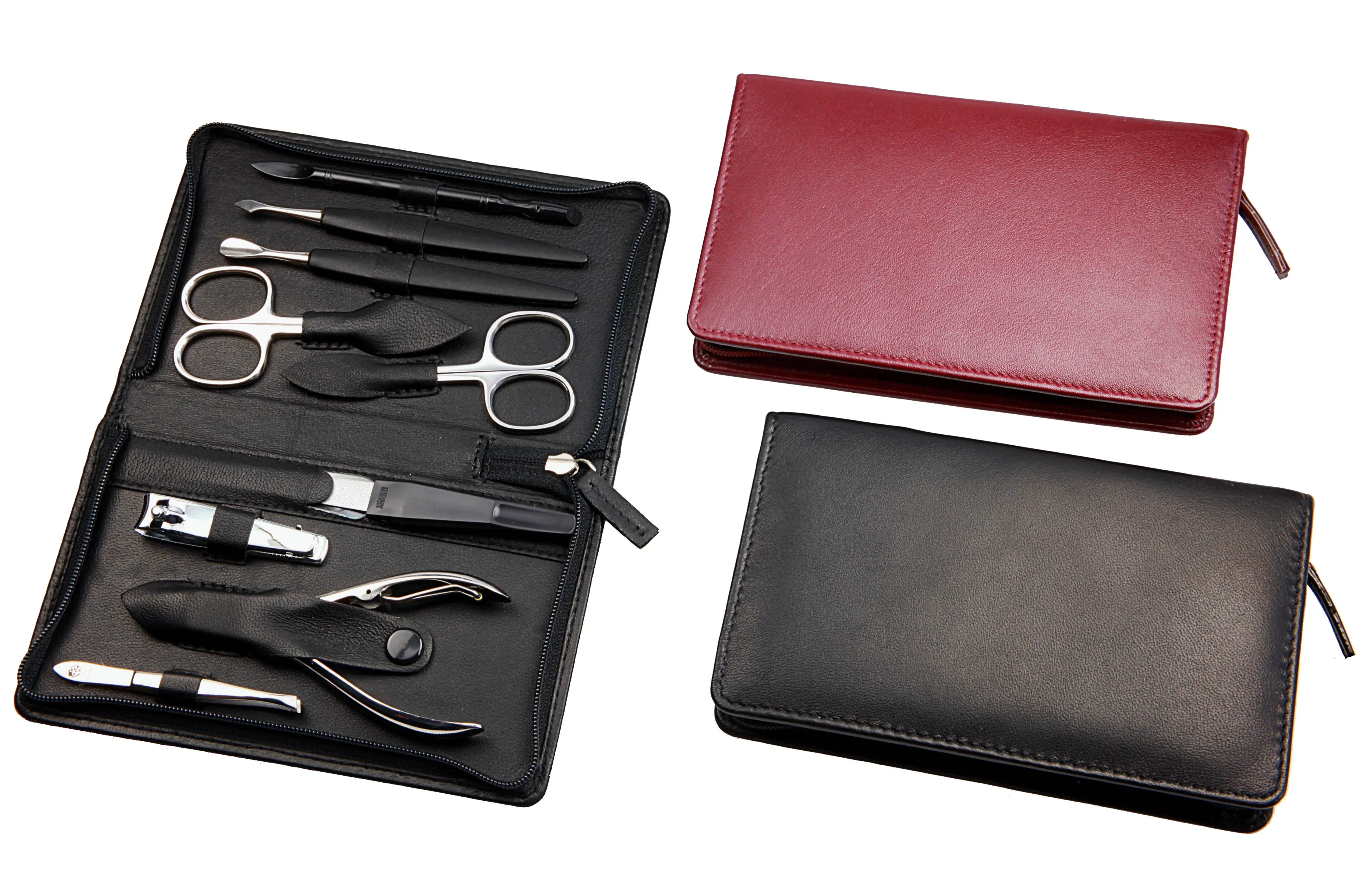 Produktinformationen "Manicure-Etui, Reißverschluss: 9-tlg. Bestückung, rostfrei-glanzpoliert; Nappa-Lammleder, schwarz"