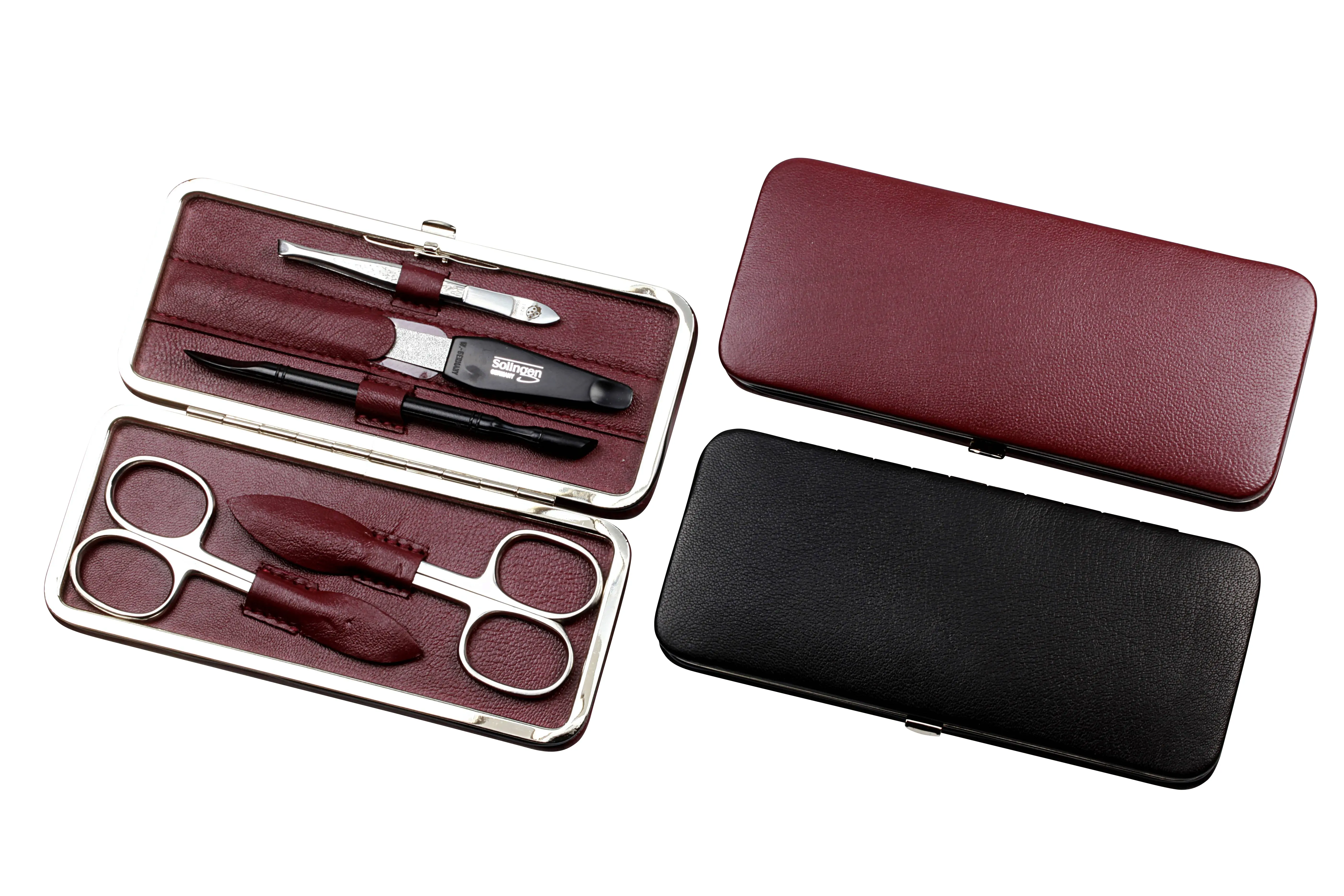 Produktinformationen "Manicure-Etui mit Rahmen: 5-tlg. Bestückung, rostfrei-glanzpoliert; echt Nappa-Lammleder, bordeaux"
