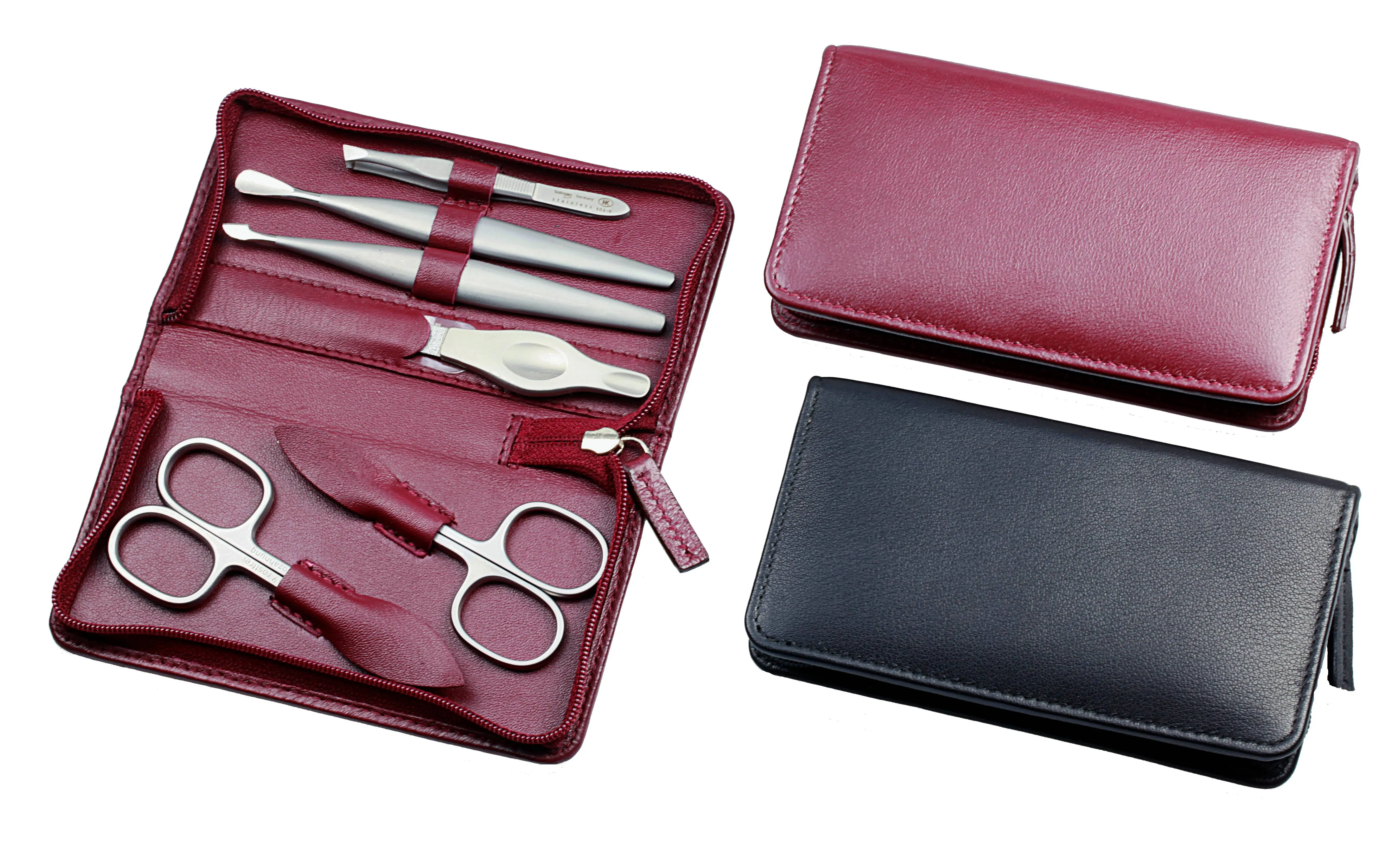 Manicure-Etui mit Reißverschluss: 6-tlg. Bestückung, rostfrei-edelmattiert; Nappa Lammleder, bordeaux