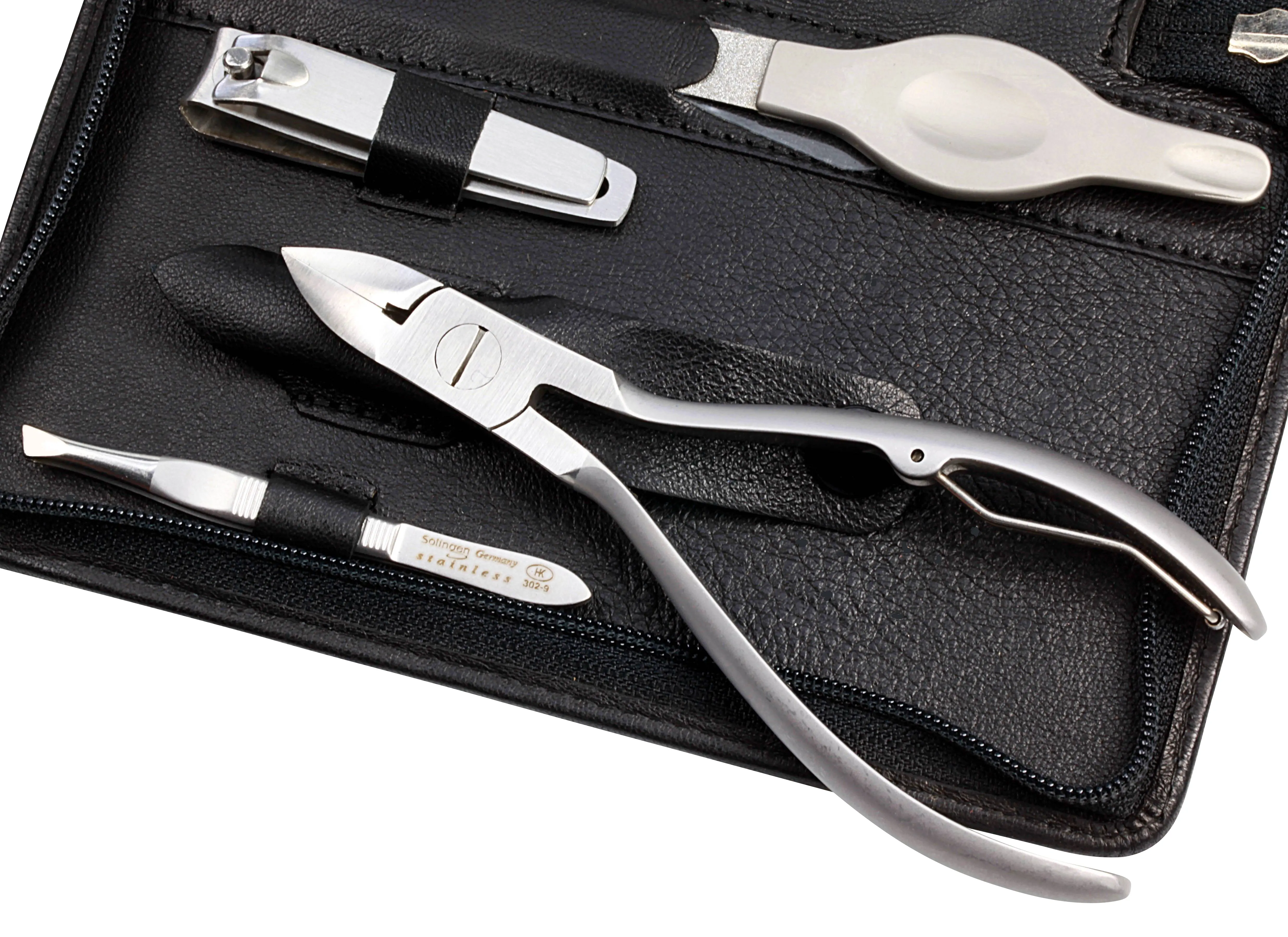 Produktinformationen "Manicure-Etui mit Reißverschluss: 9-tlg. Bestückung, rostfrei-edelmattiert; Nappa-Lammleder, schwarz"
