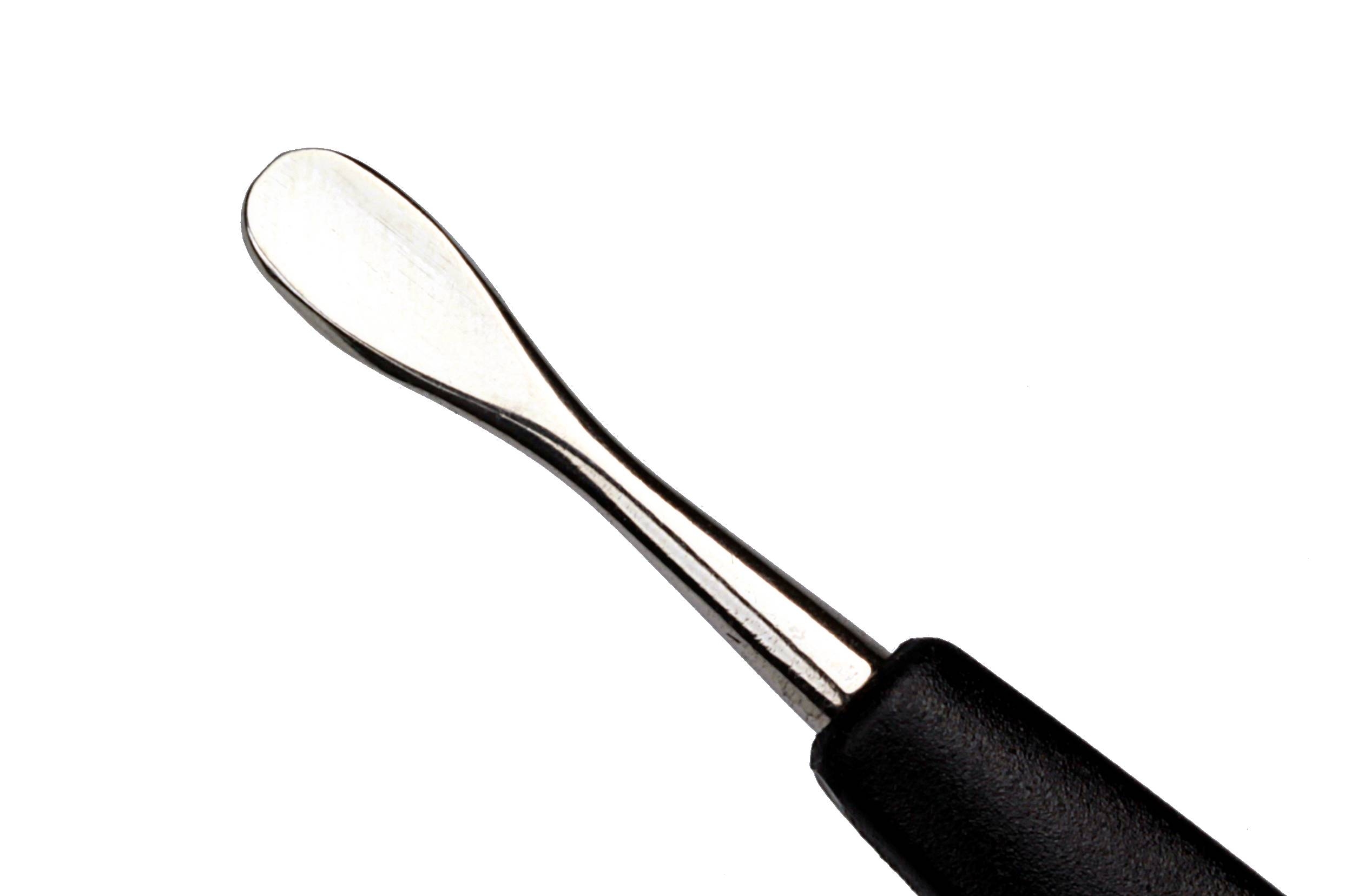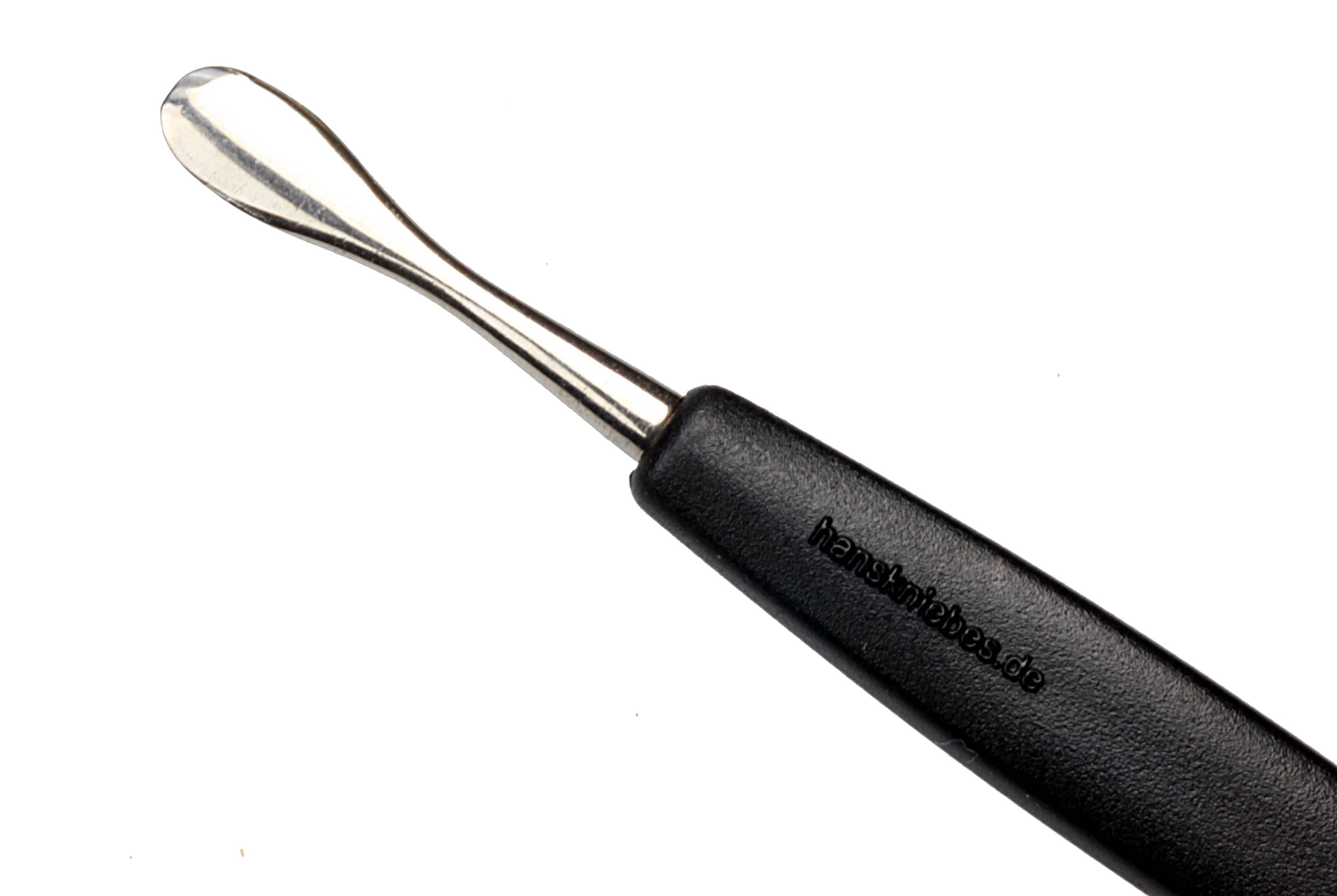 Der SONNENSCHEIN Nagelhautdrücker hat ein abgerundetes, löffelartiges Ende aus glanzpoliertem, rostfreien Edelstahl. Damit lässt sich überschüssige Nagelhaut, am besten nachdem sie gründlich in lauwarmem Wasser eingeweicht wurde, sanft entlang des Nagelbetts zurückschieben, bevor sie dann z. B. mit einer Hautschere oder -zange entfernt wird.