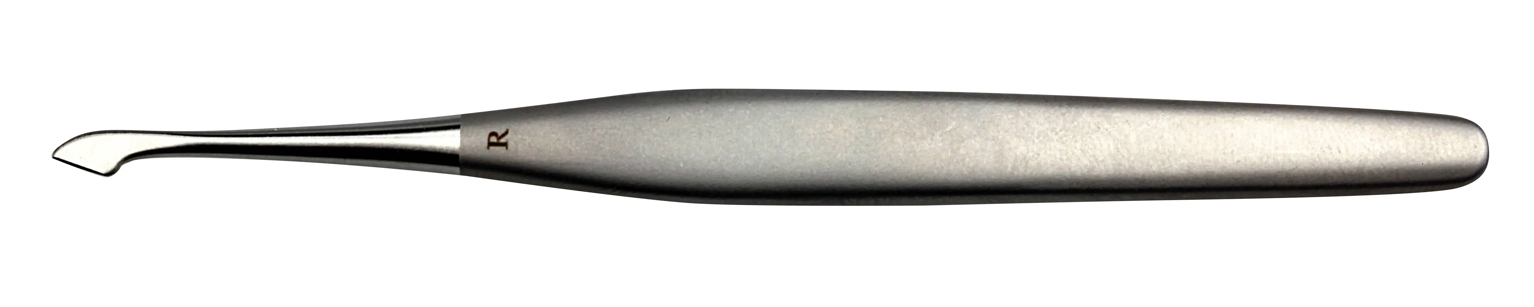 Mit diesem soliden und langlebigen Nagelmesser, das sorgfältig in einem Teil aus rostfreiem Edelstahl gefertigt ist, lassen sich lose Hornzellen auf dem Nagelrücken mühelos entfernen. Es ist antiallergen und kann hygienisch desinifiziert werden.