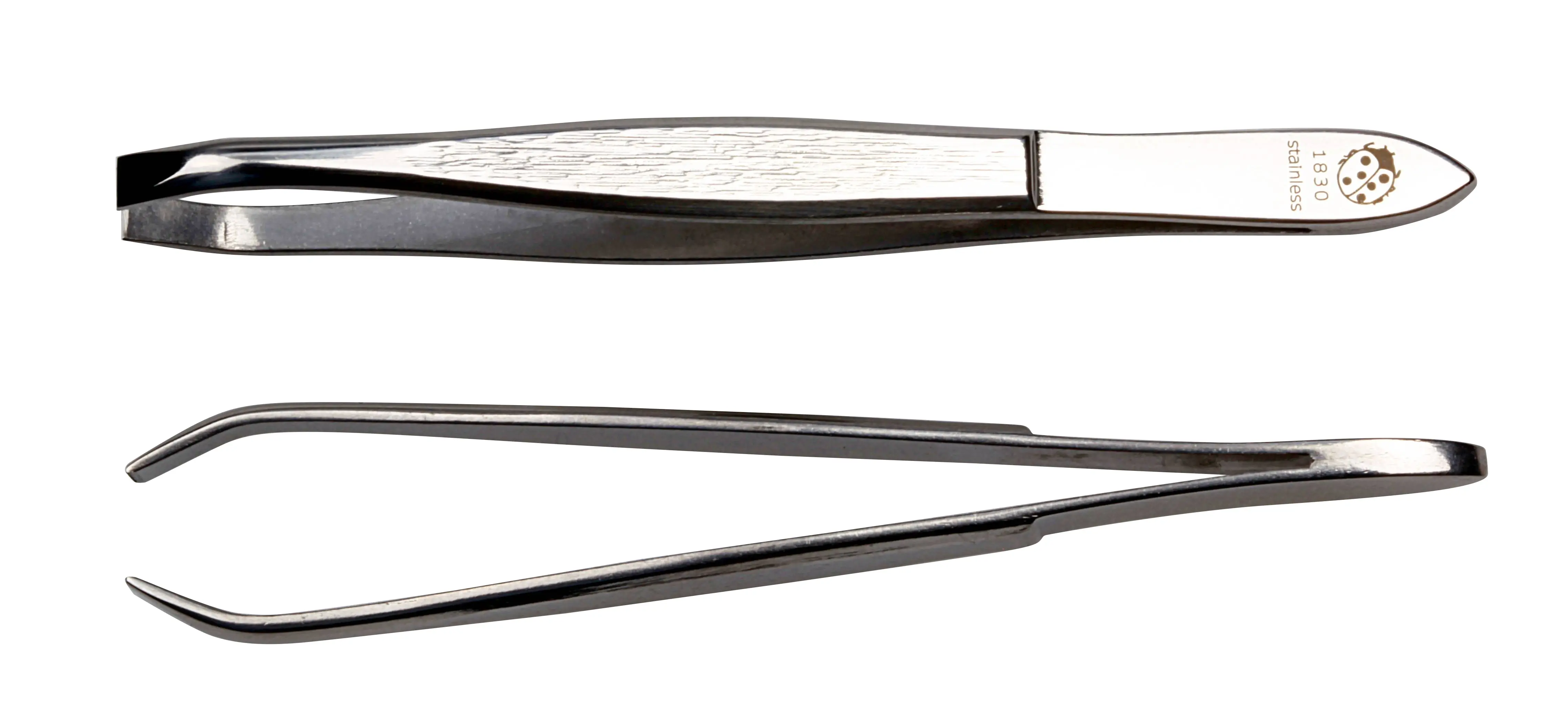 SONNENSCHEIN-Pinzette mit gekröpfter Spitze, d. h. mit nach innen abgewinkelten Griffbacken. Sie wird sorgfältig aus rostfreiem Edelstahl gefertigt, damit die Spitzen exakt aufeinandertreffen. Ihre Griffbacken werden einzeln von Hand so geschliffen, dass sie präzise schließen und auch feinste Härchen ebenso sicher wie einfach zupfen.
