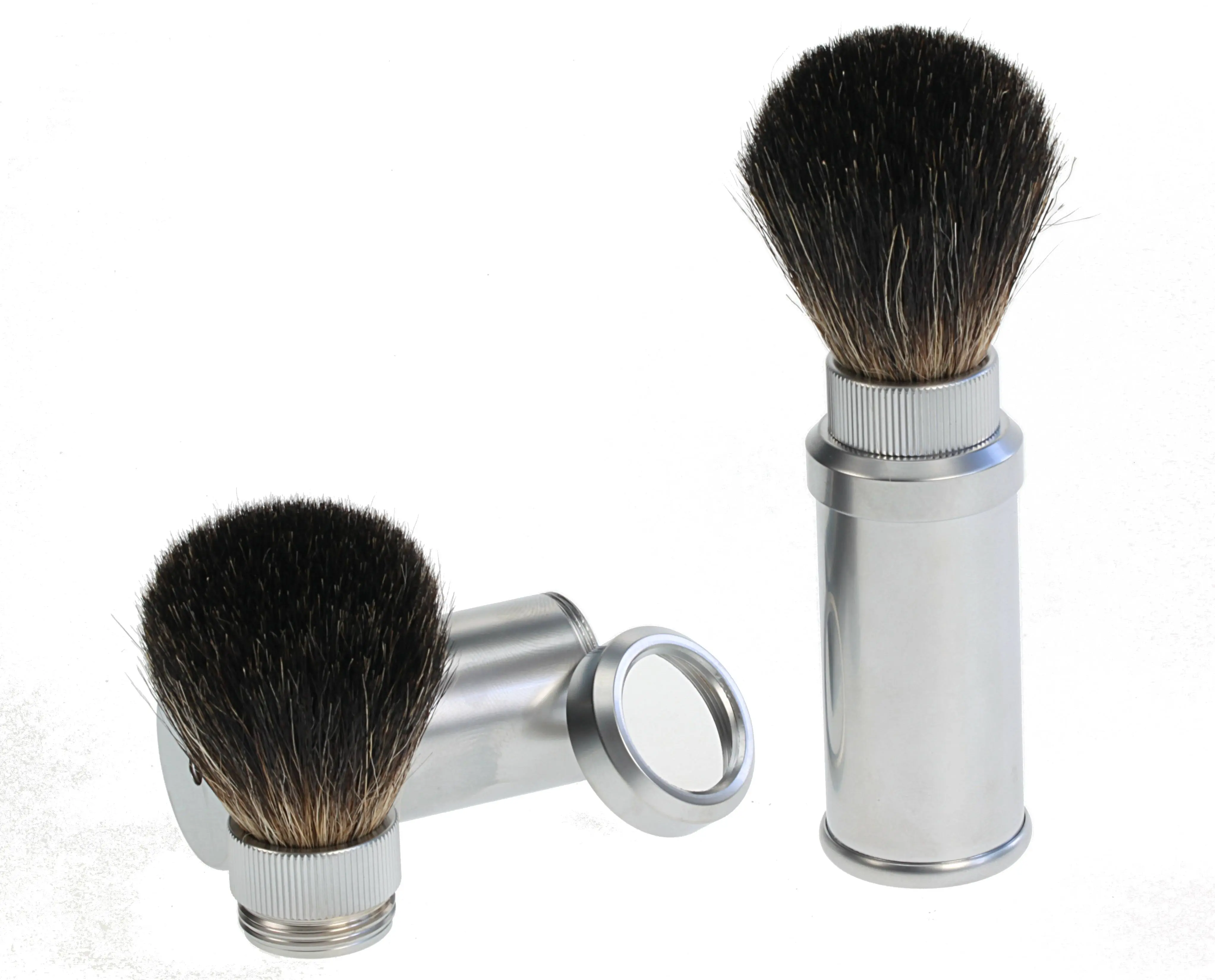 Reise-Rasierpinsel, echt Dachs, Aluminium-Gehäuse
