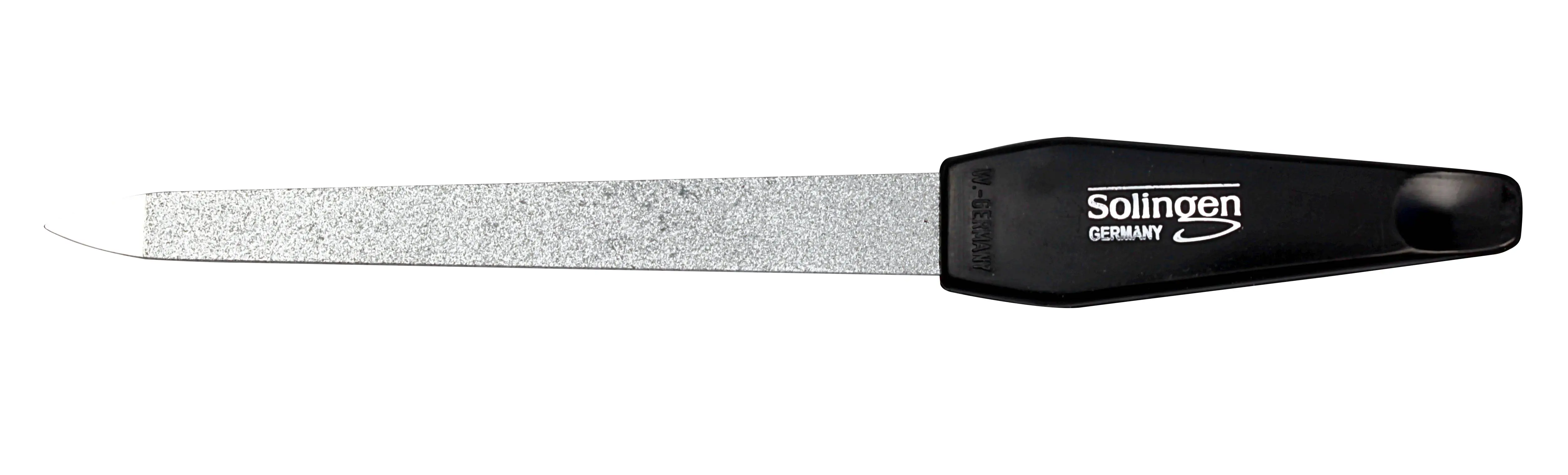 Praktisch: Mit der Spitze der Feile lassen sich die Nägel reinigen. Zudem ist das Ende des Feilengriffs so augeformt, das es als Nagelhautschieber verwendet werden kann.