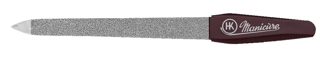 Diese Saphirfeile mit einer Gesamtlänge von lediglich 10 cm ist ideal für unterwegs, passt sie doch in jede kleine Tasche. Ihr Feilblatt hat eine grobe Belagseite zum Formen und eine feine Belagseite zum Glätten der Nägel. Damit die Feile lange gebrauchsfähig bleibt, sind die einzelnen Saphir-Partikel durch eine Chromschicht fest an das gehärtete und vollflexible Stahlblatt gebunden. Das spitze Ende des Feilblatts kann auch als Nagelreiniger verwendet werden.