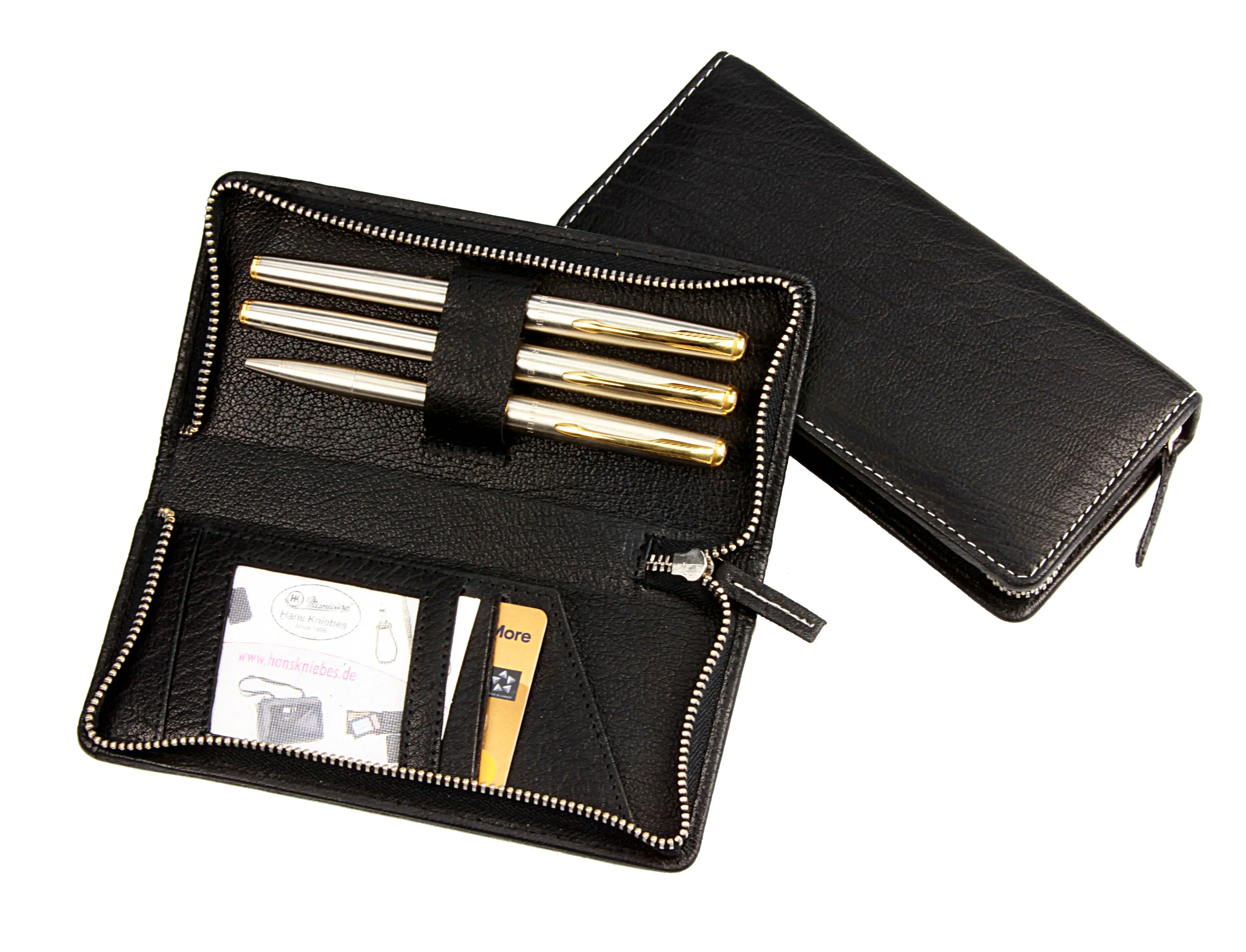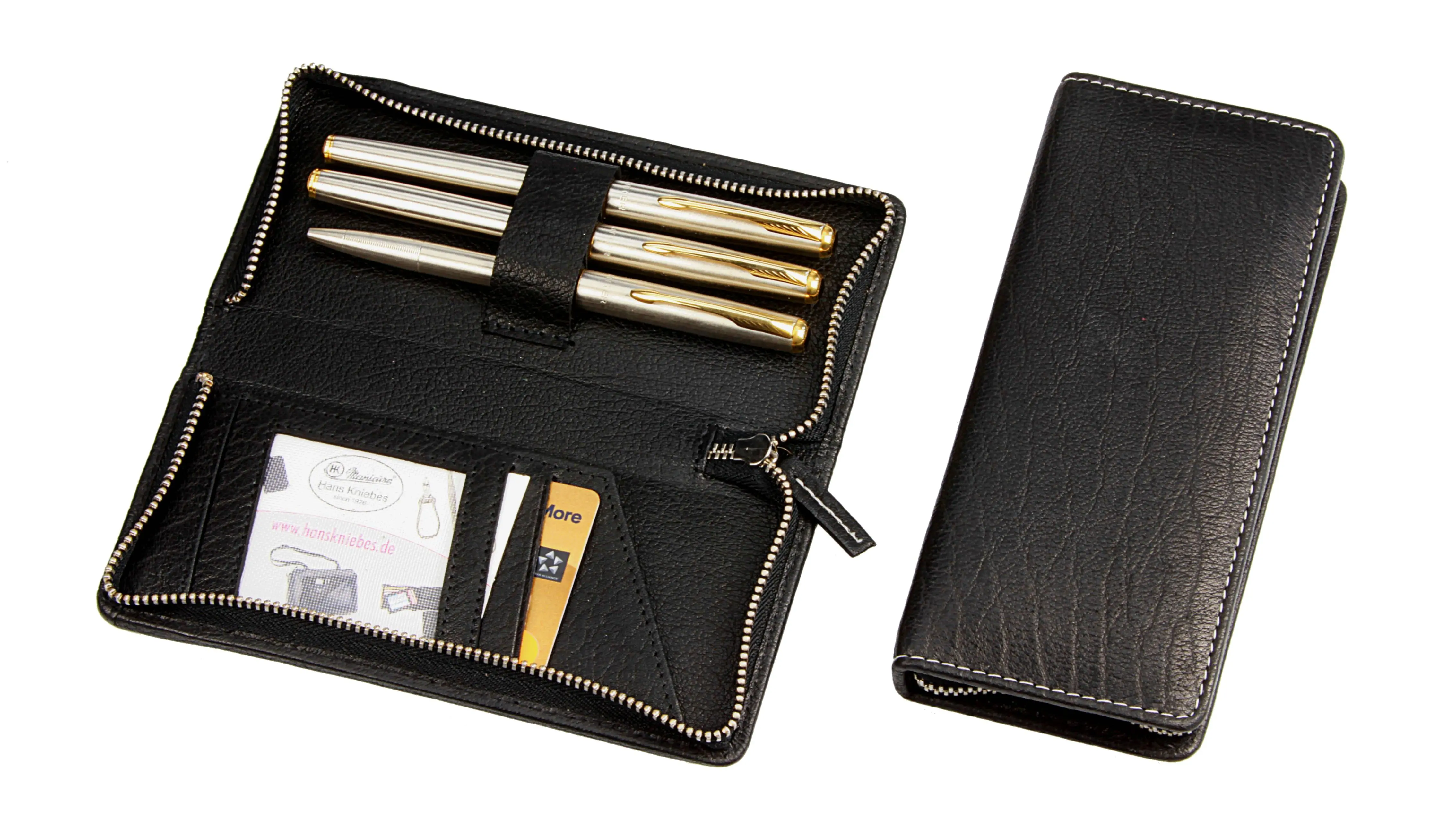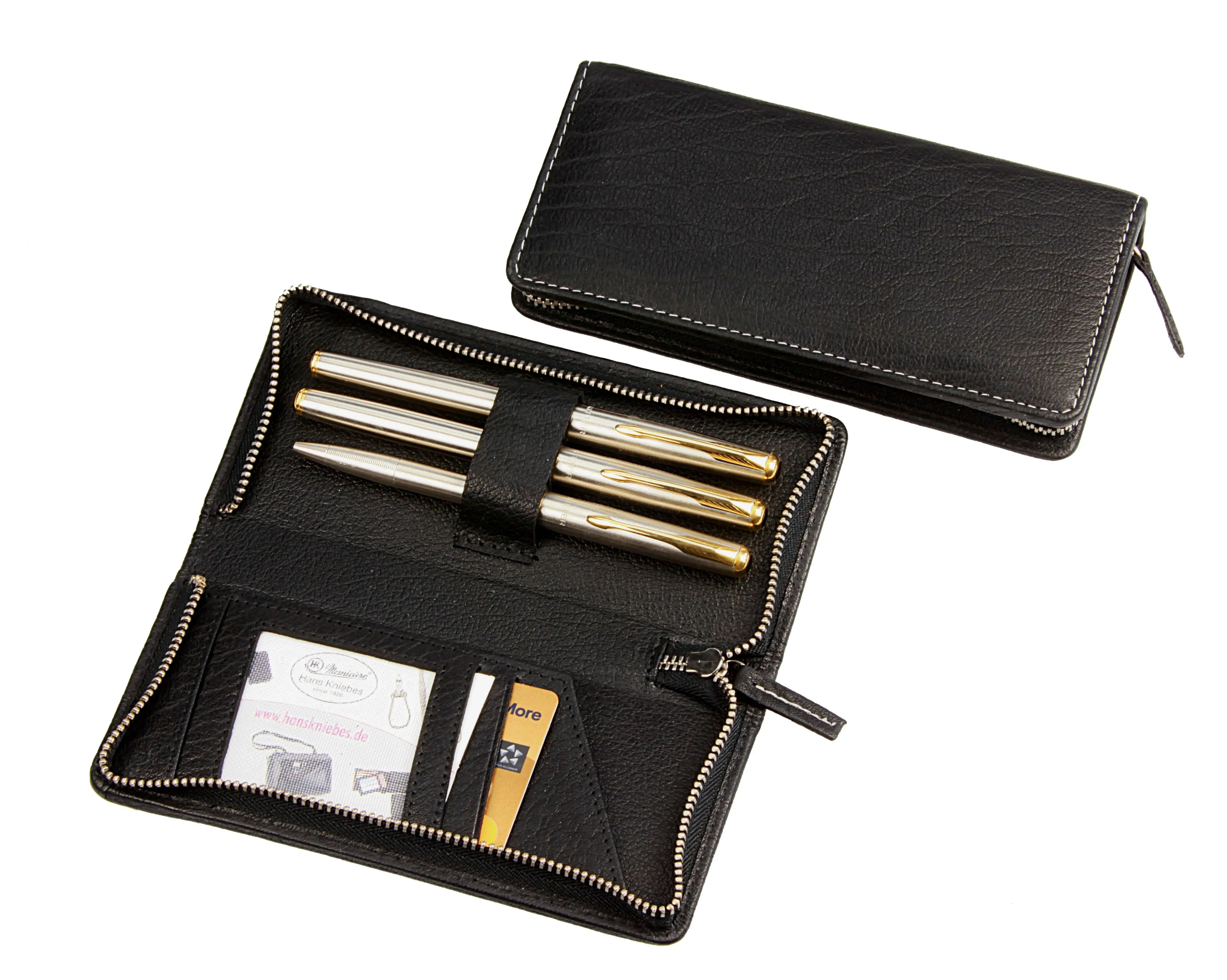 Stift-Etui mit Metall-Reißverschluss, für drei Schreibgeräte, schwarz mit Kontrastnaht