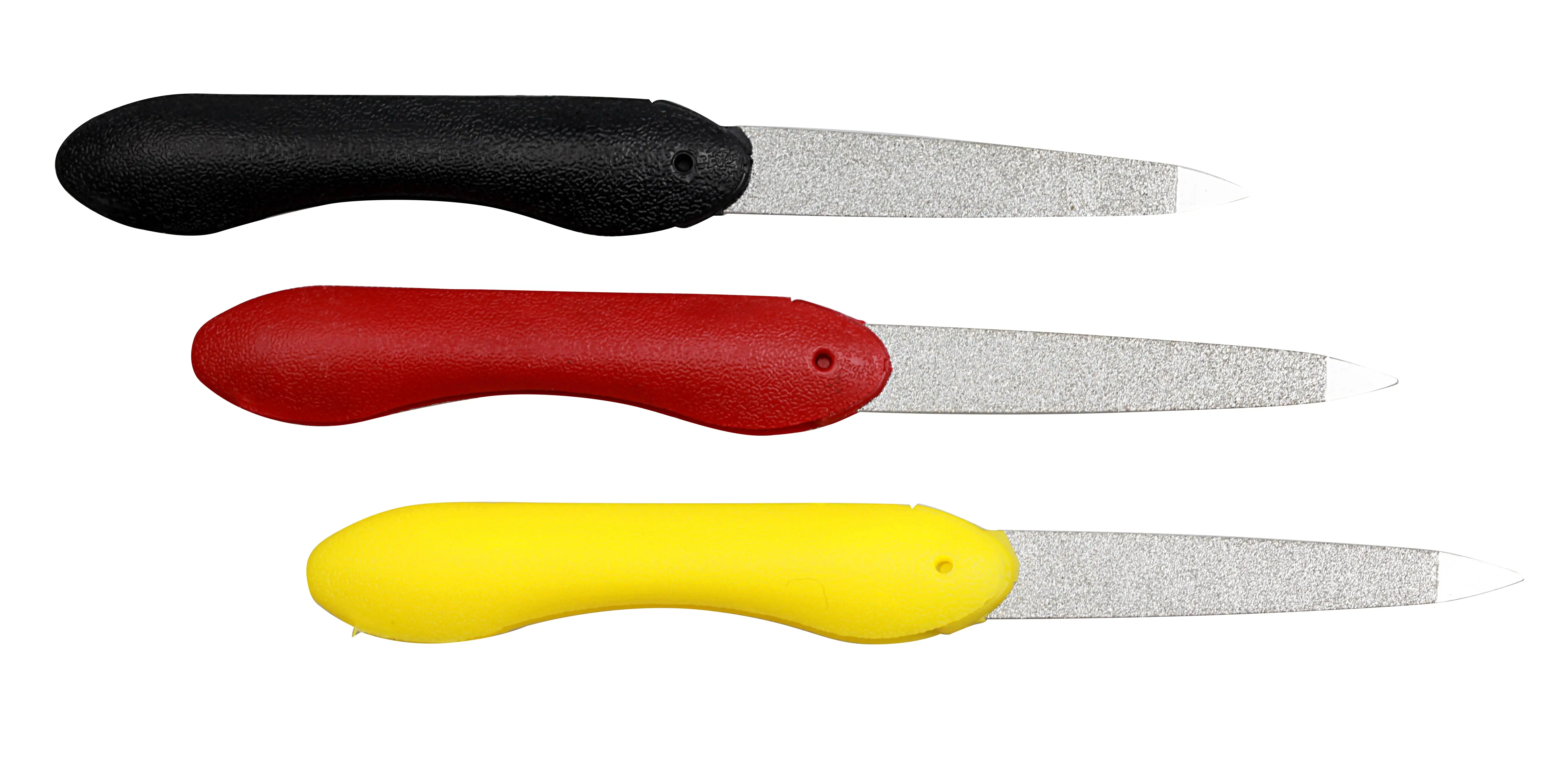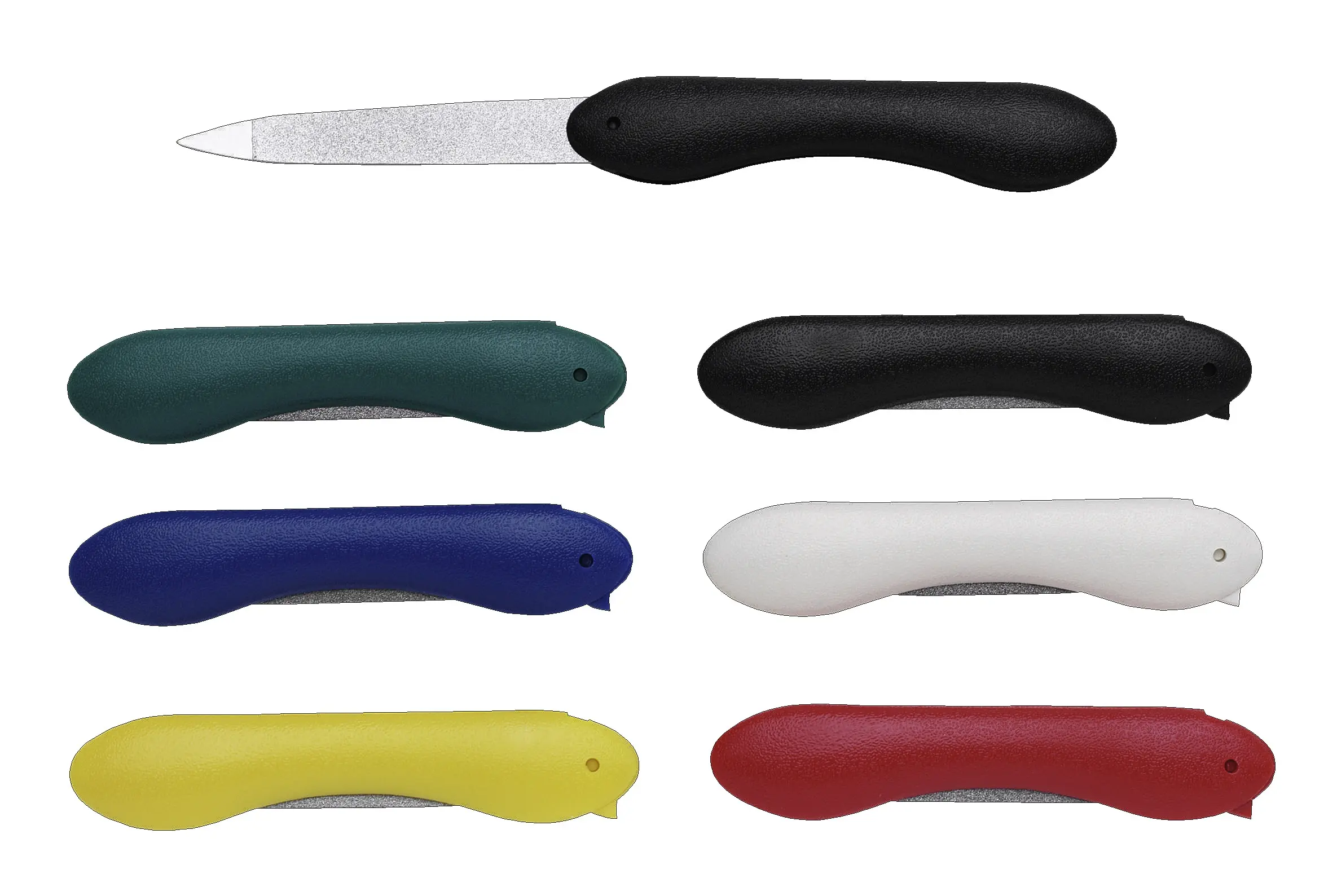 Die Feile ist in verschiedenen Farben erhältlich. Neben schwarz und weiß ist der Feilengriff auch in blau, rot, grün und gelb verfügbar. Ihre Wunschfarbe tragen Sie bitte unter "Kommentar" am Ende des Bestellprozesses ein.