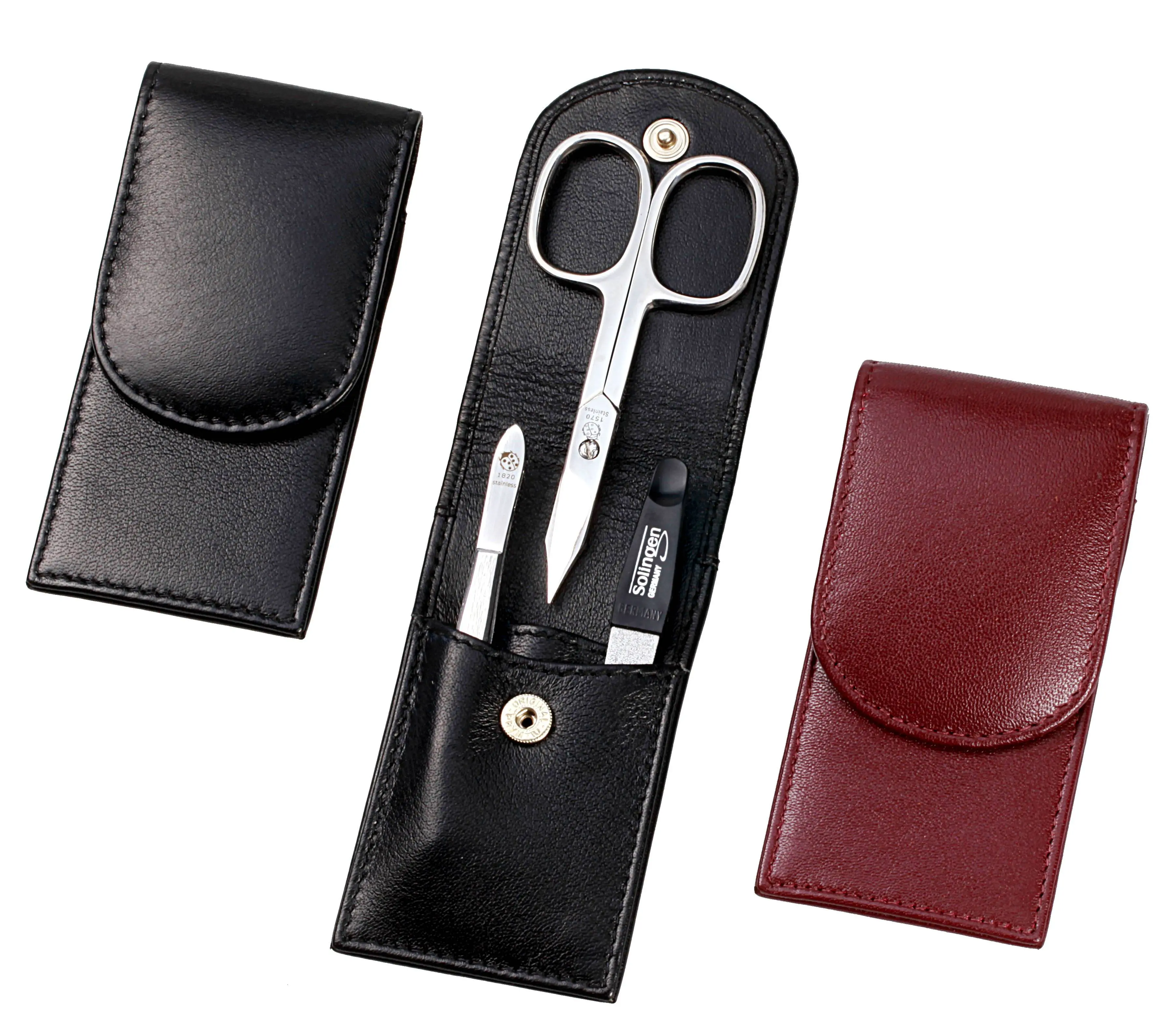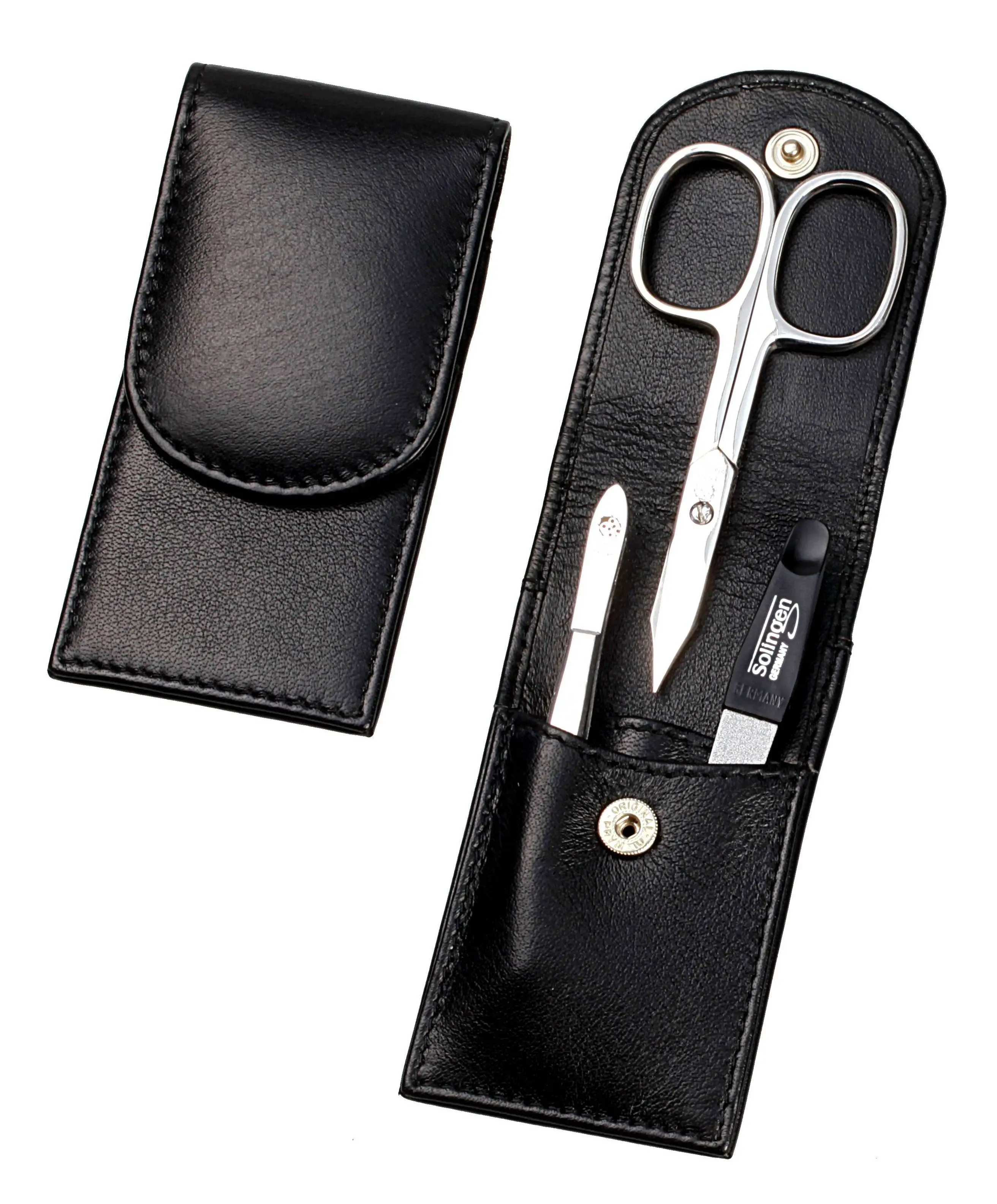 Produktinformationen "Taschenmanicure: 3-tlg. Bestückung, rostfrei-glanzpoliert; Nappa-Lammleder, schwarz"