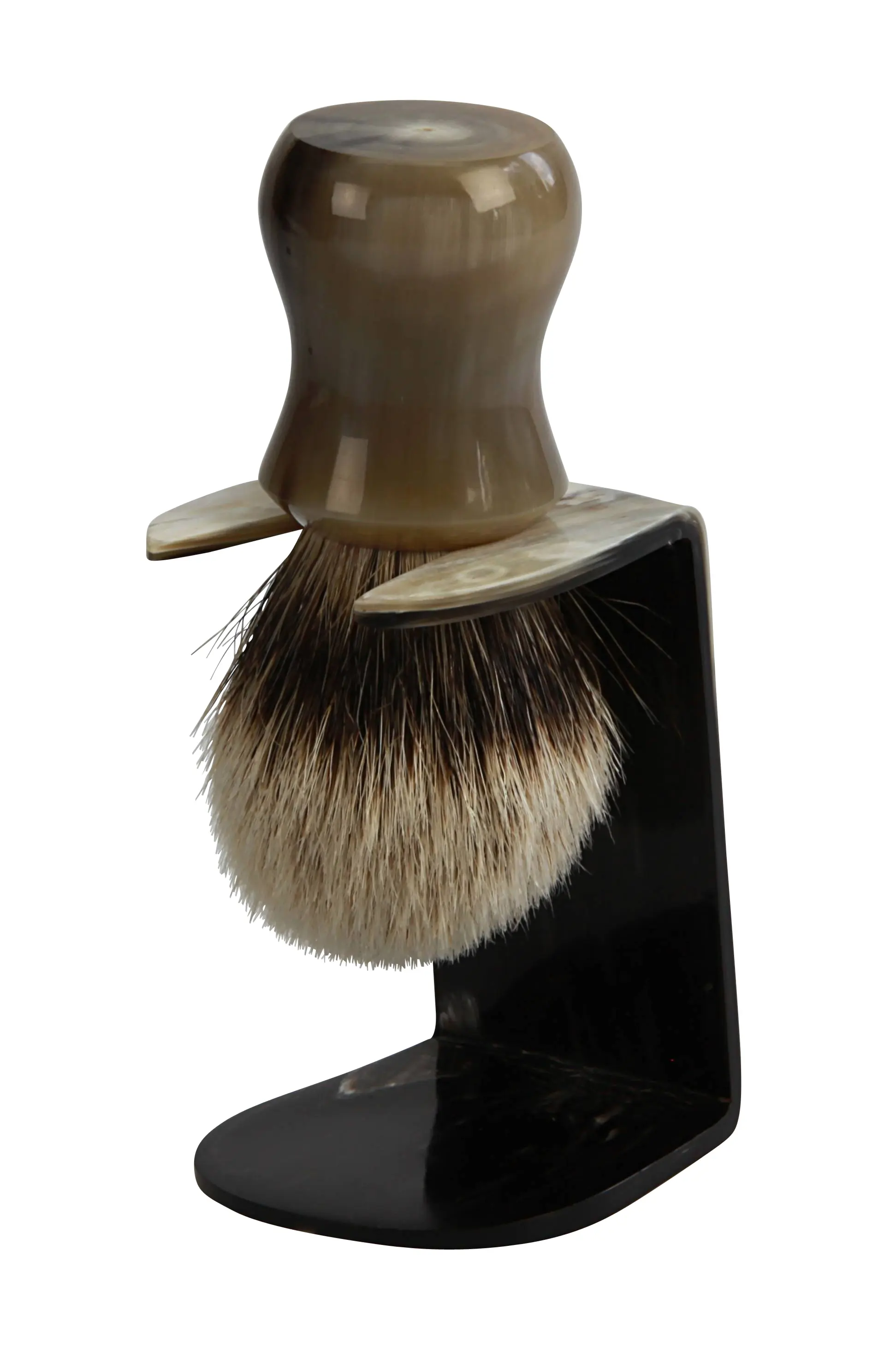 Shaving brush, genuine badger "silver tip", spherical, genuine horn handle