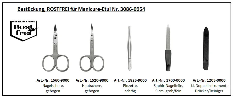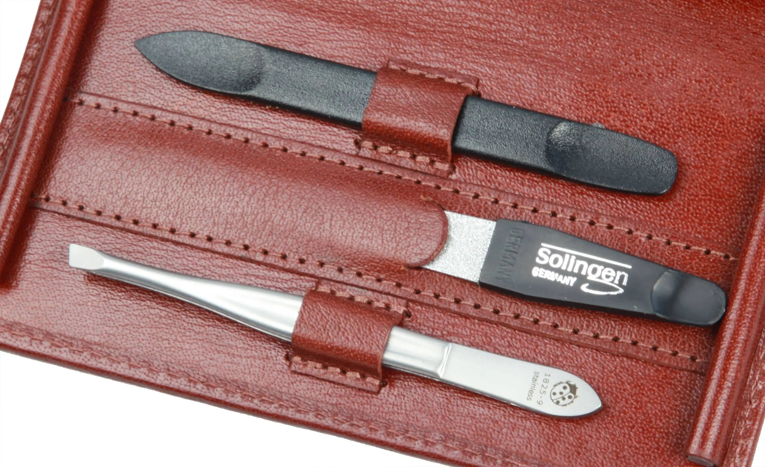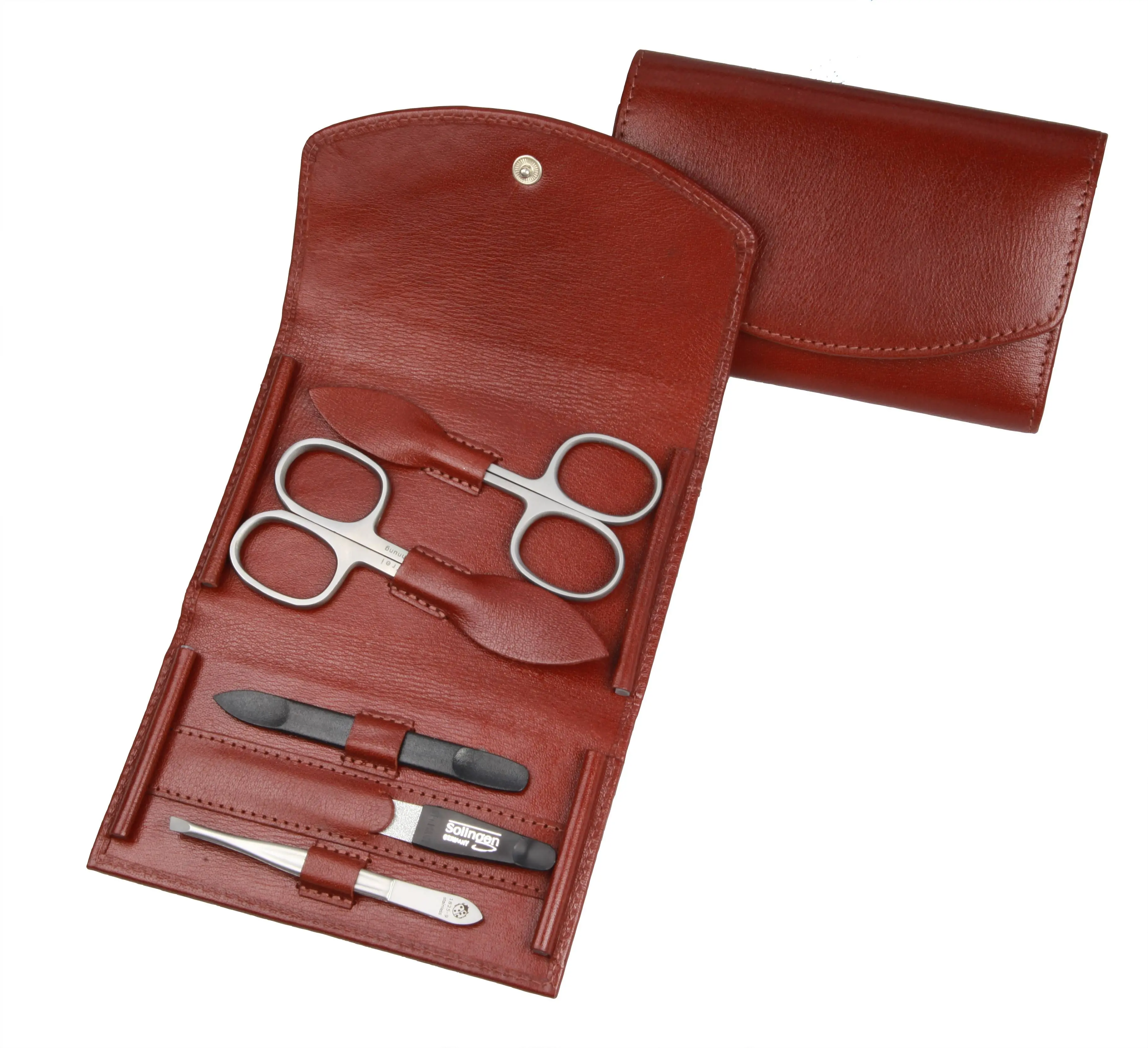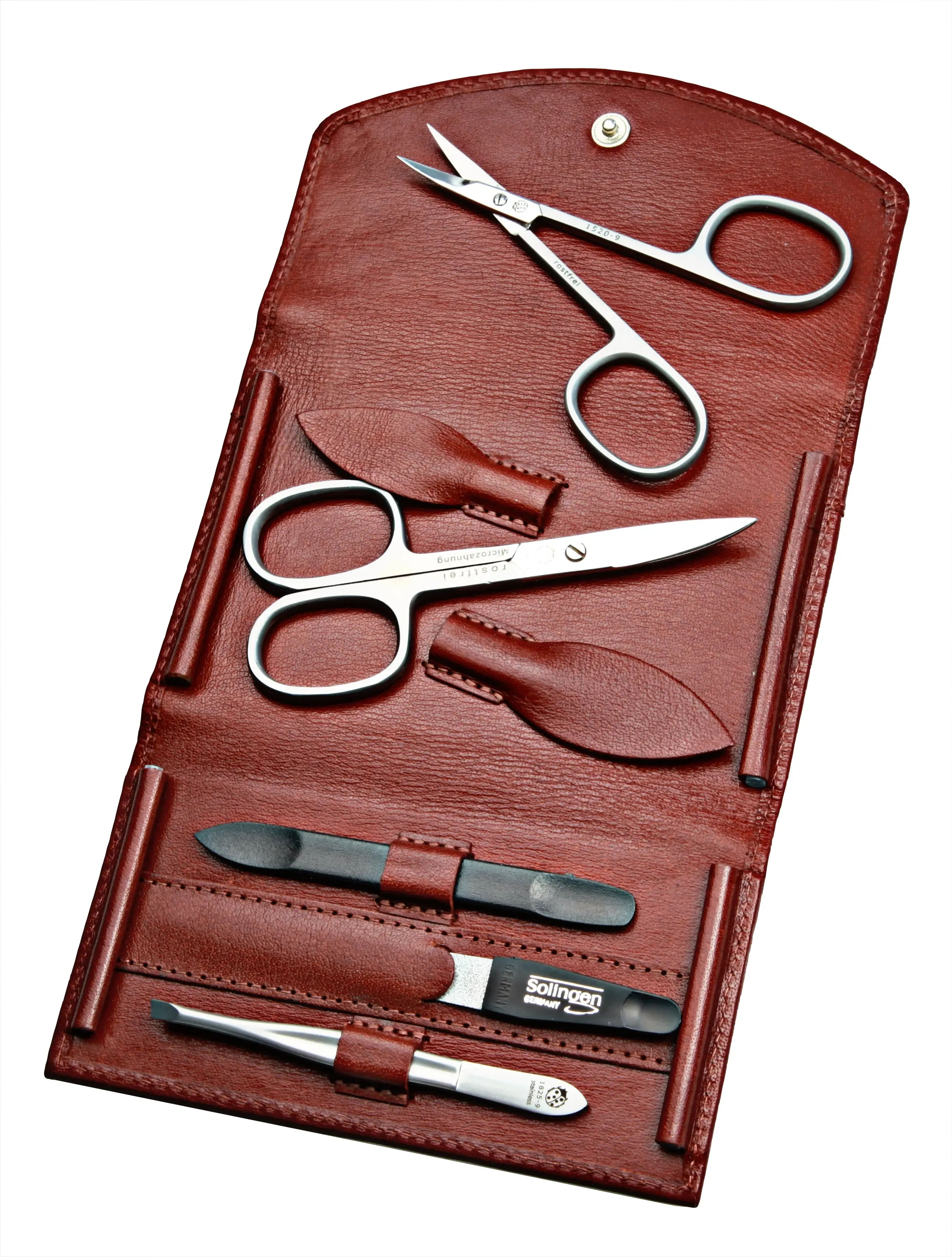 manicure set: 5 implements, stainless steel, matt finish; buffalo leather, cognac brown