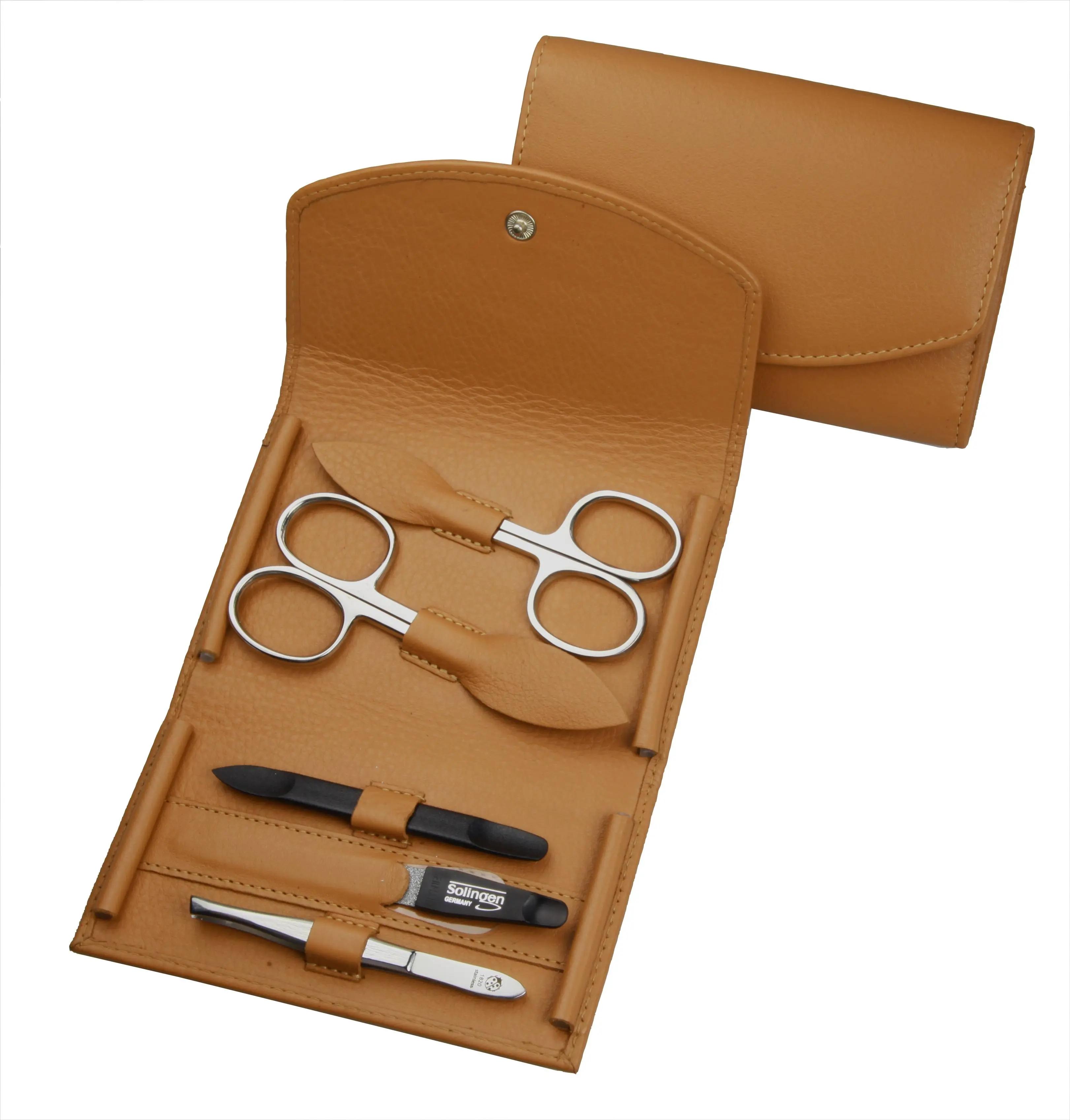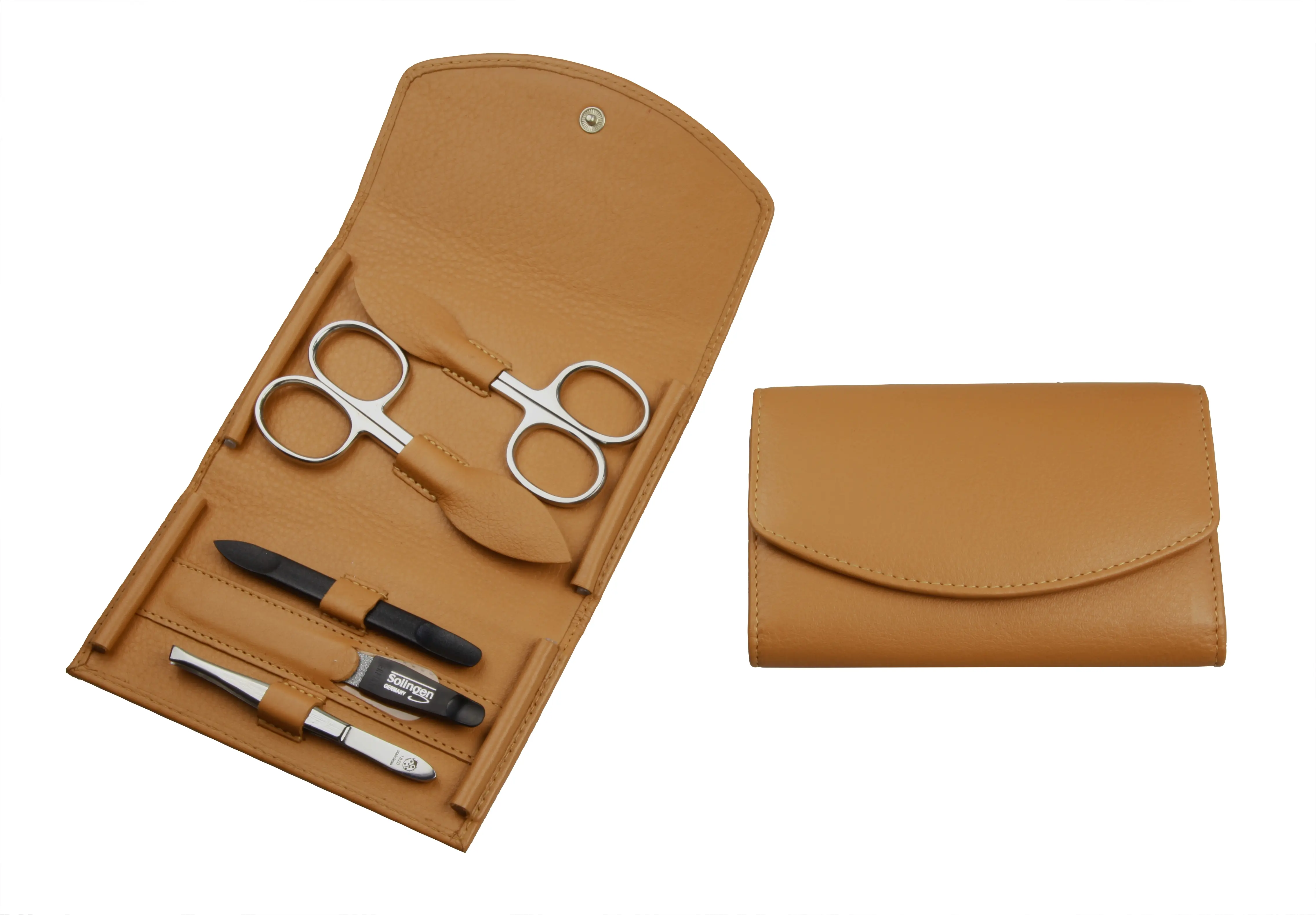 manicure set: 5 implements, stainless steel, mirror-polished; fullgrain cowhide, sand beige
