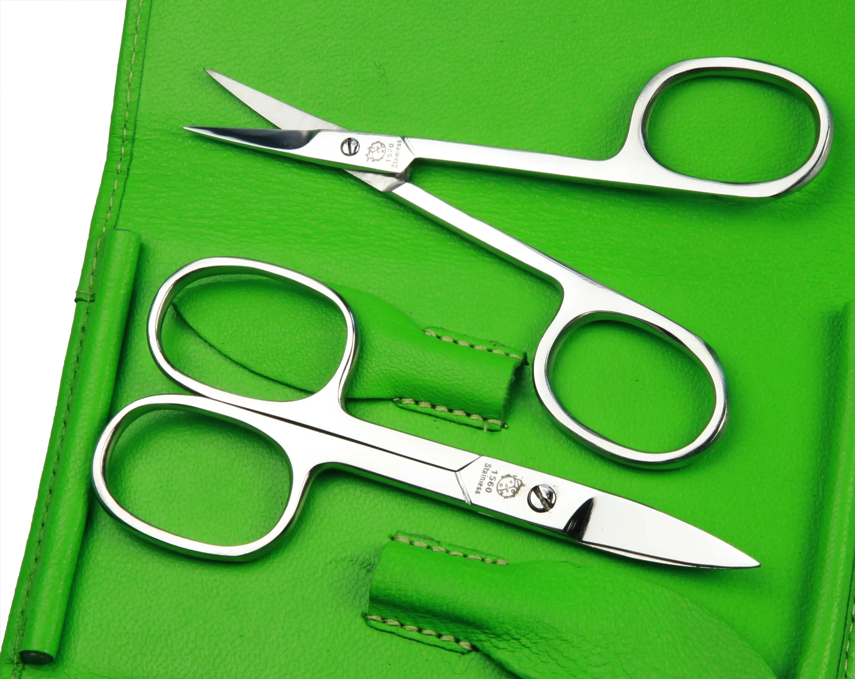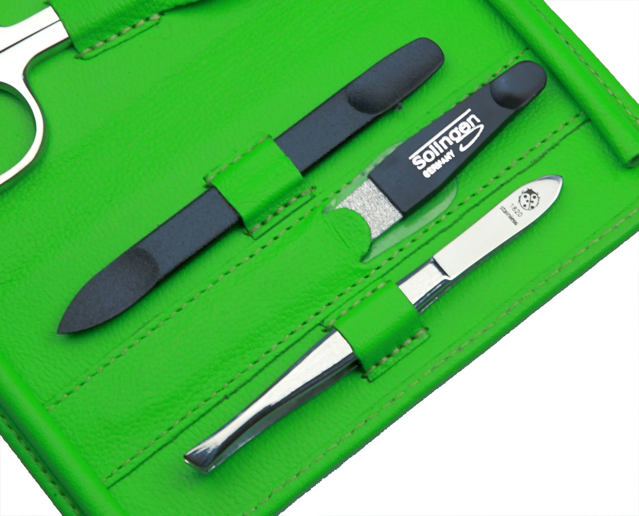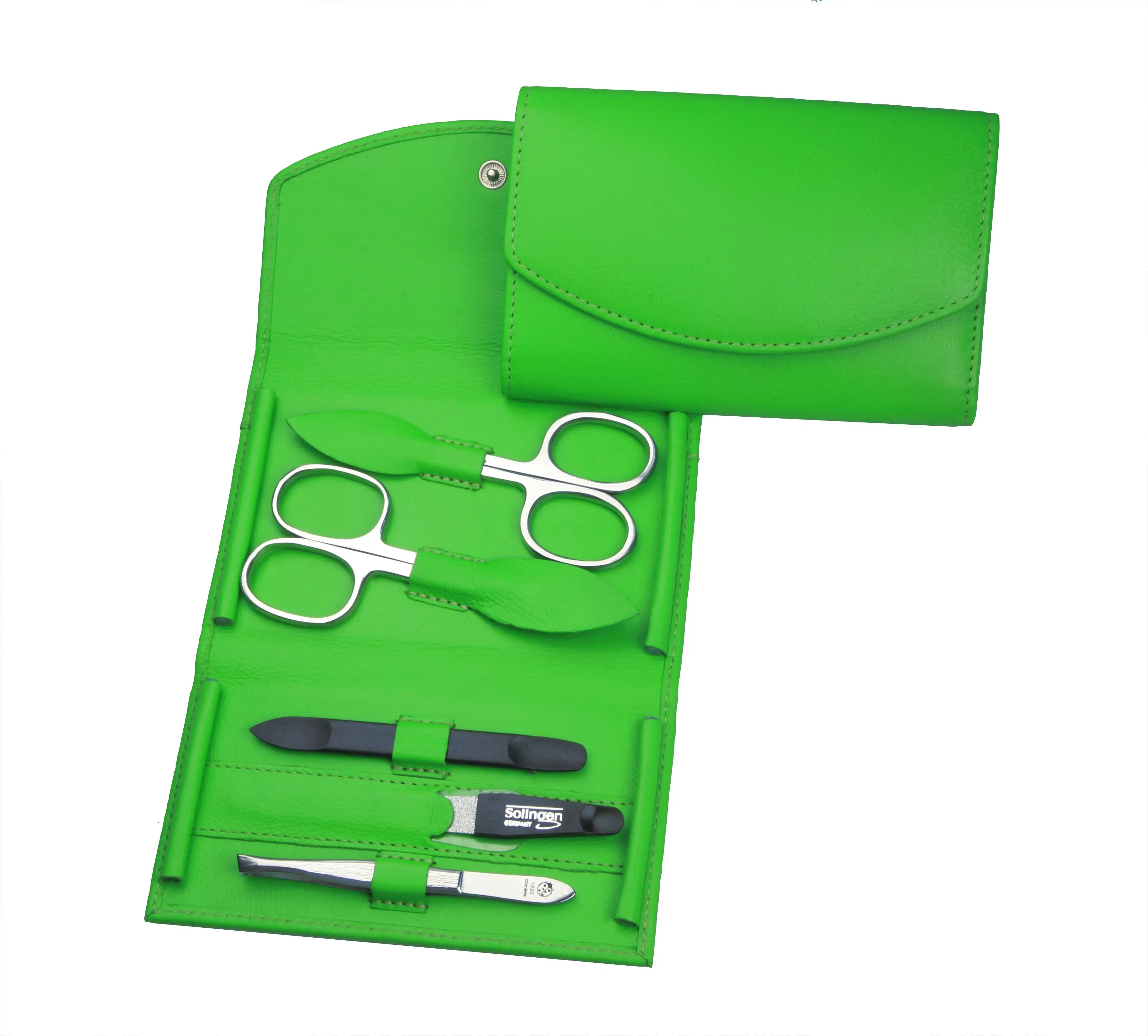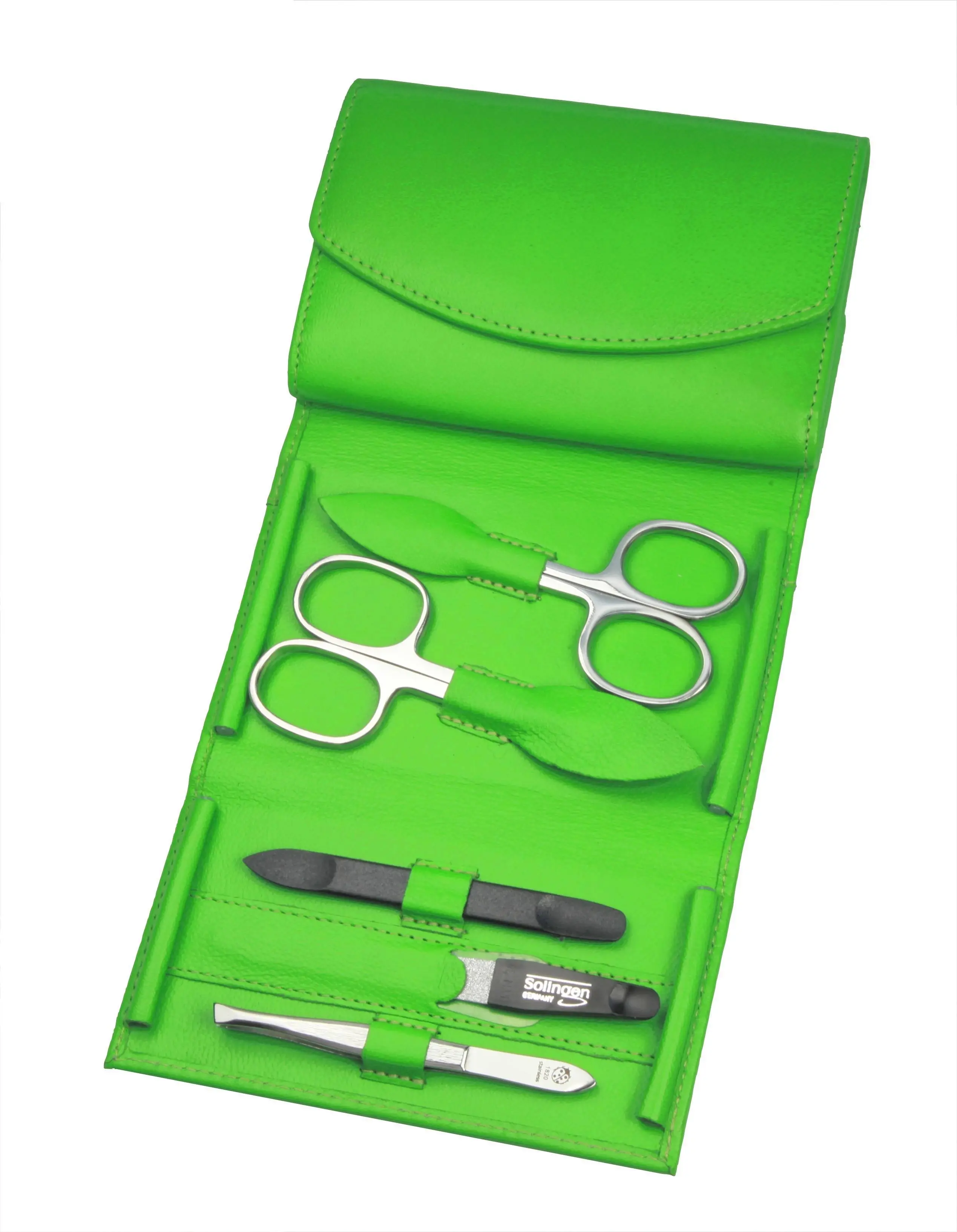 manicure set: 5 implements, stainless steel, mirror polished; nappa lambskin, apfelgrün