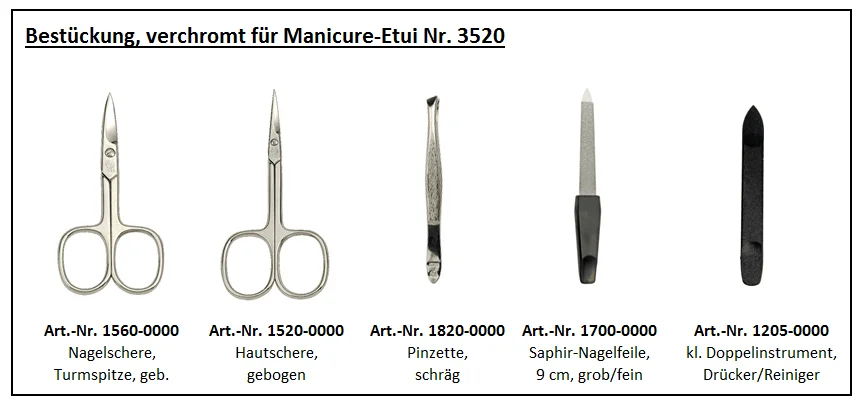 Product information "manicure set: 5 implements, stainless steel, mirror polished; nappa lambskin, apfelgrün"