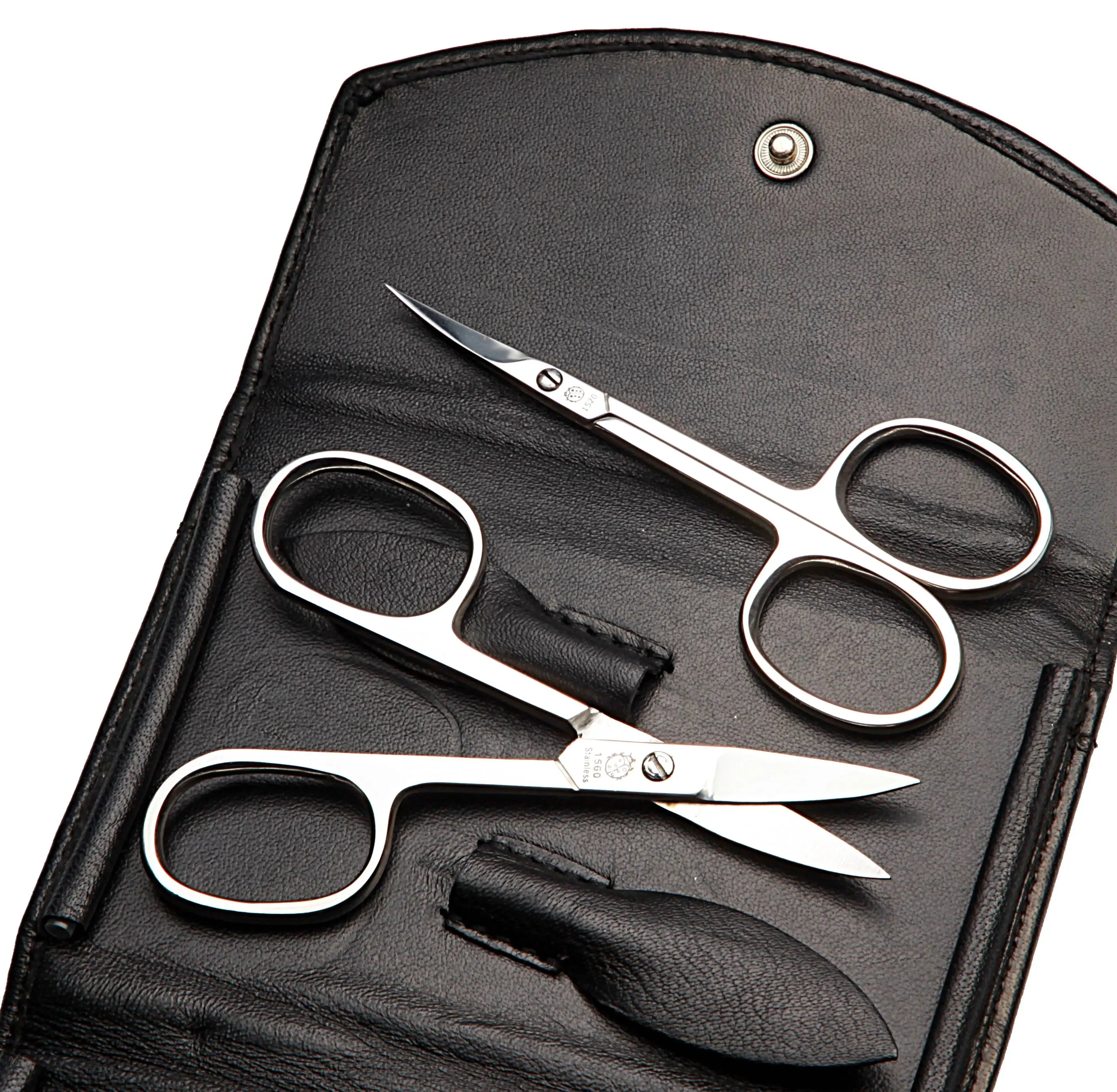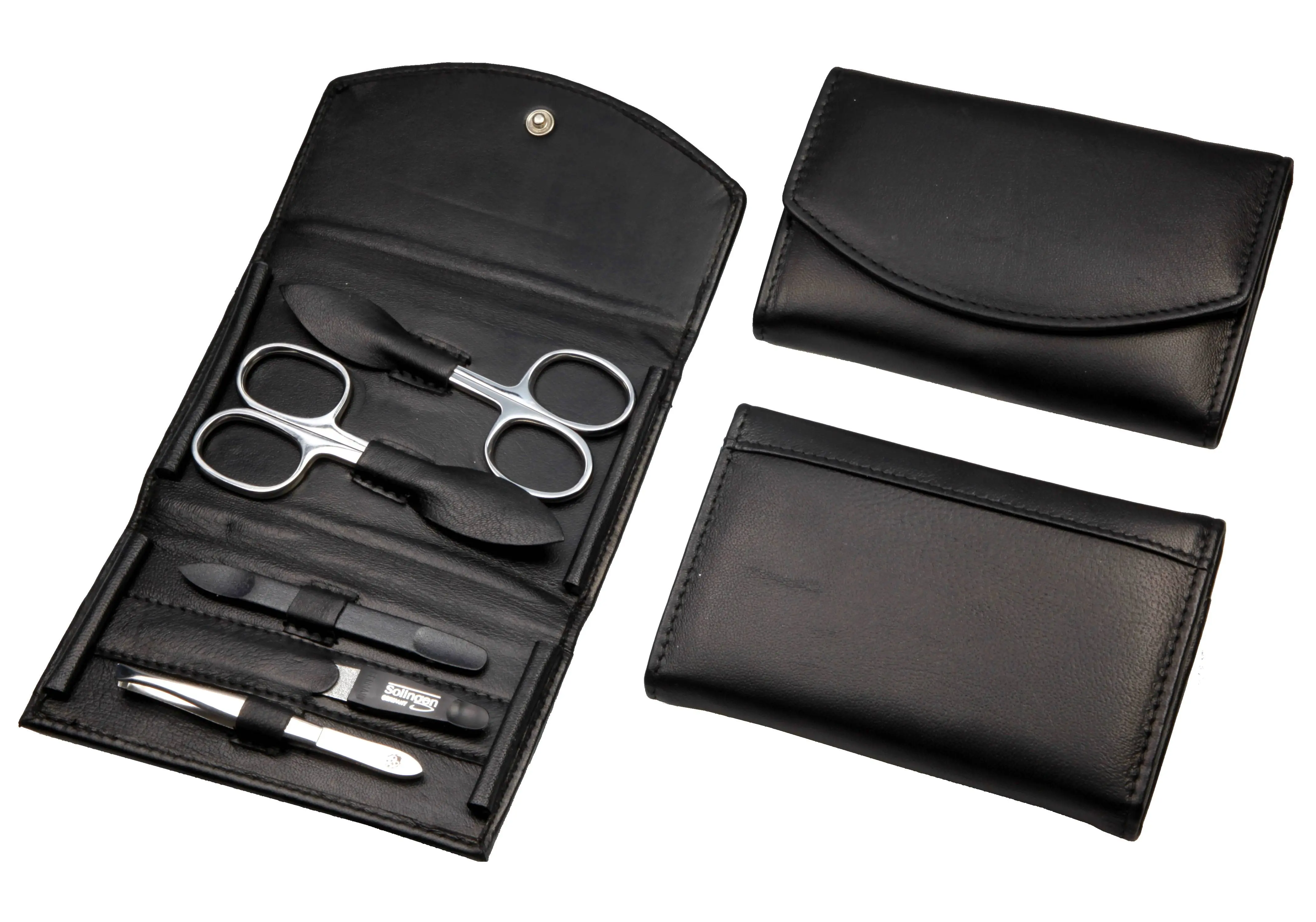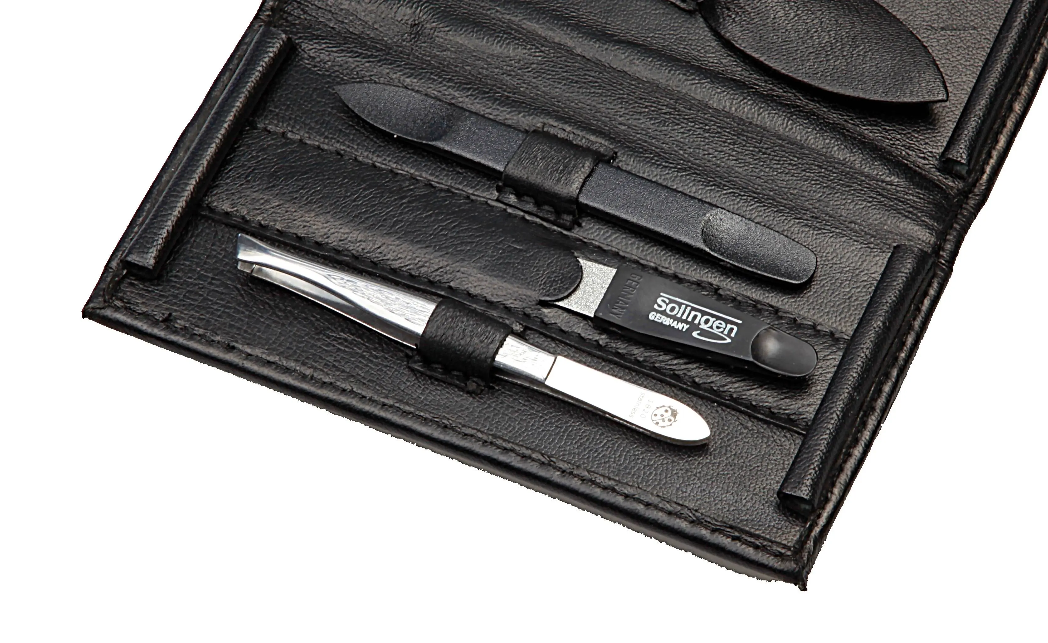 manicure set: 5 implements, stainless steel, mirror-polished; nappa lambskin, black