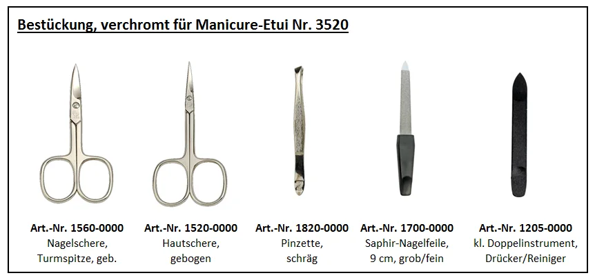Product information "manicure set: 5 implements, stainless steel, mirror-polished; nappa lambskin, black"