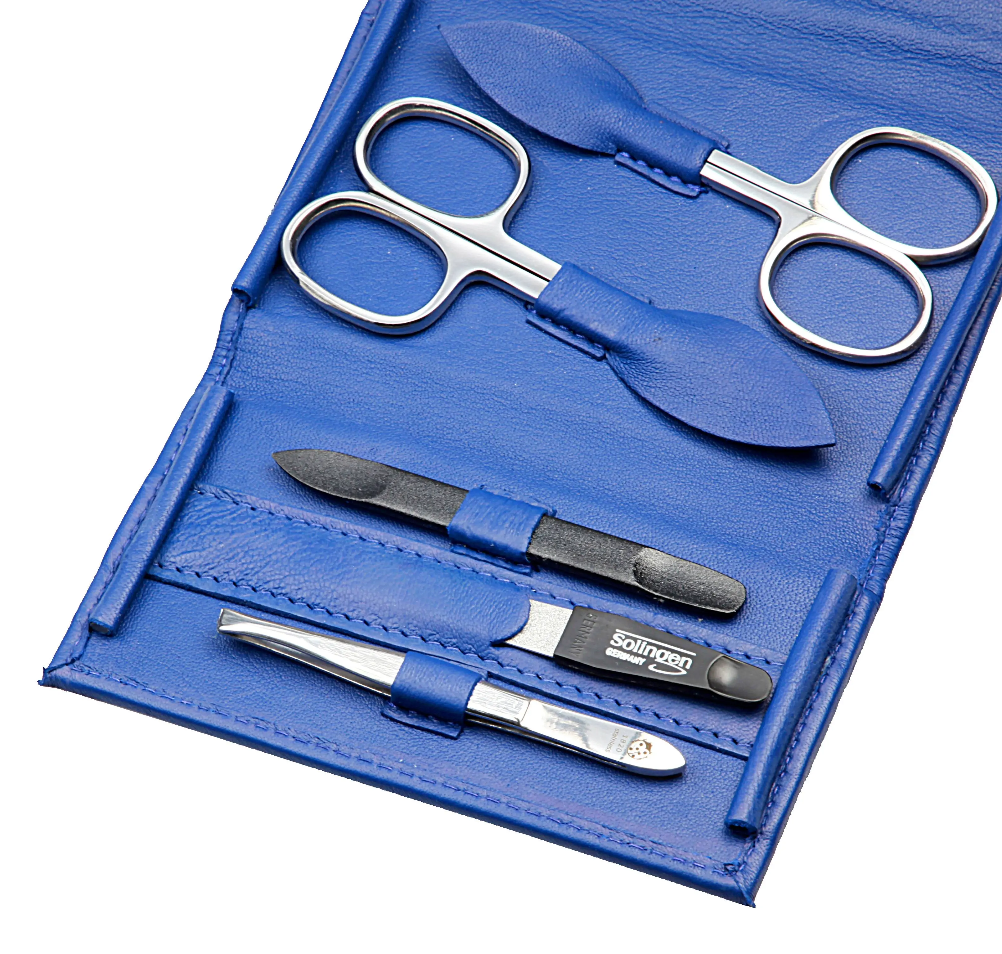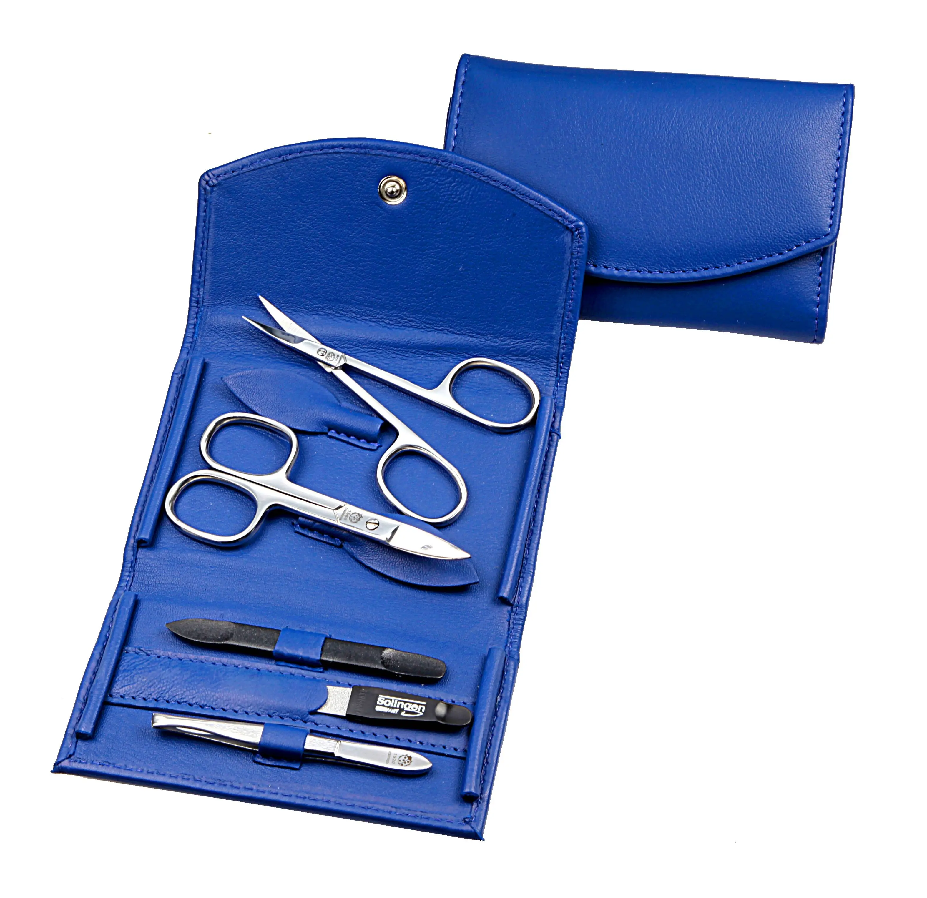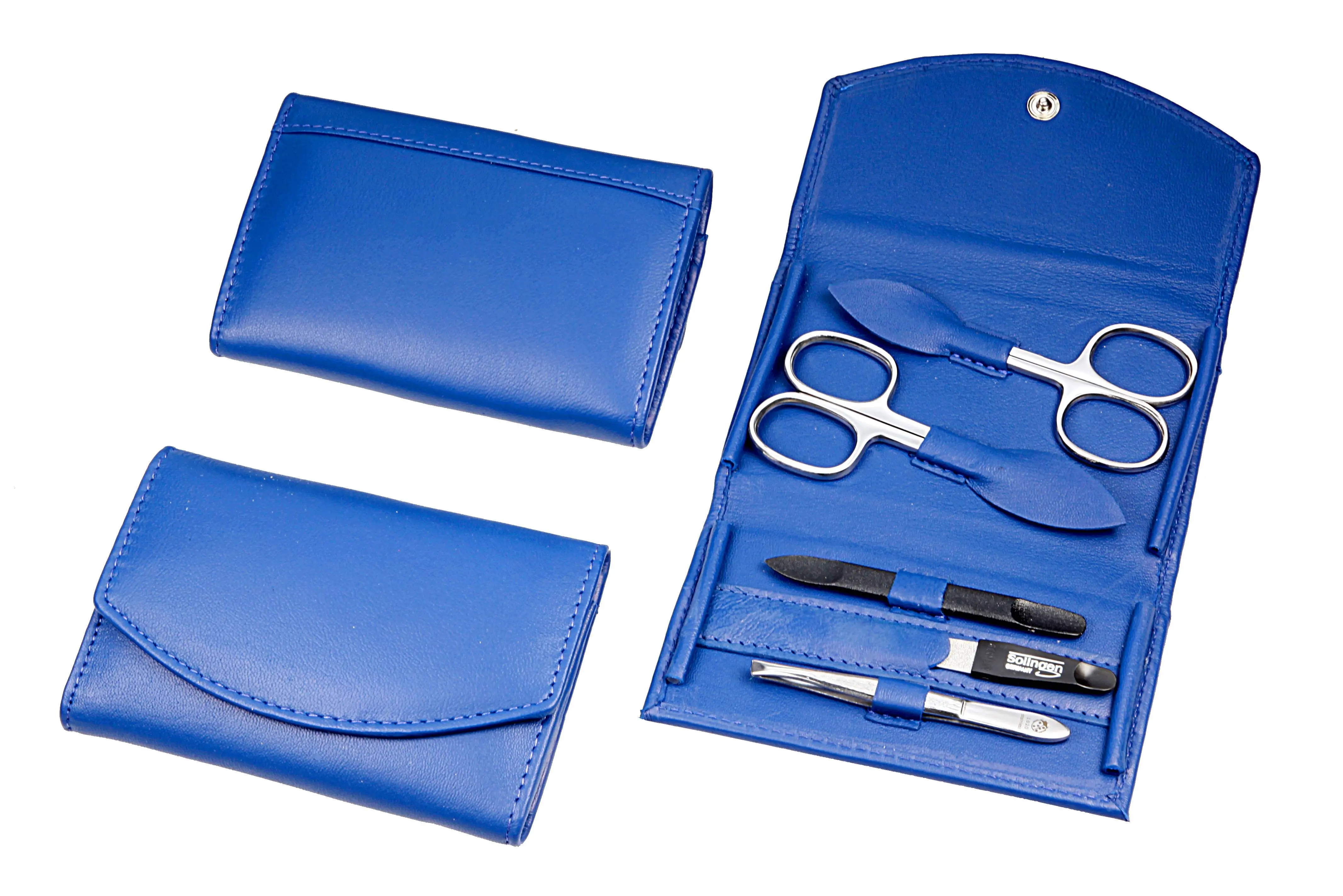 manicure set: 5 implements, stainless steel, mirror polished; nappa lambskin, cobalt blue