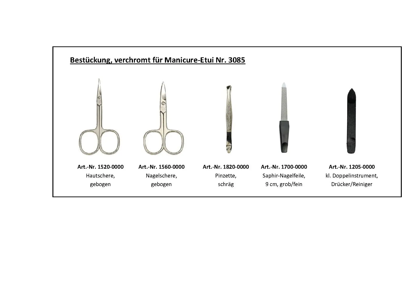 The case is equipped with five high-quality SONNENSCHEIN nail care instruments made of stainless steel: