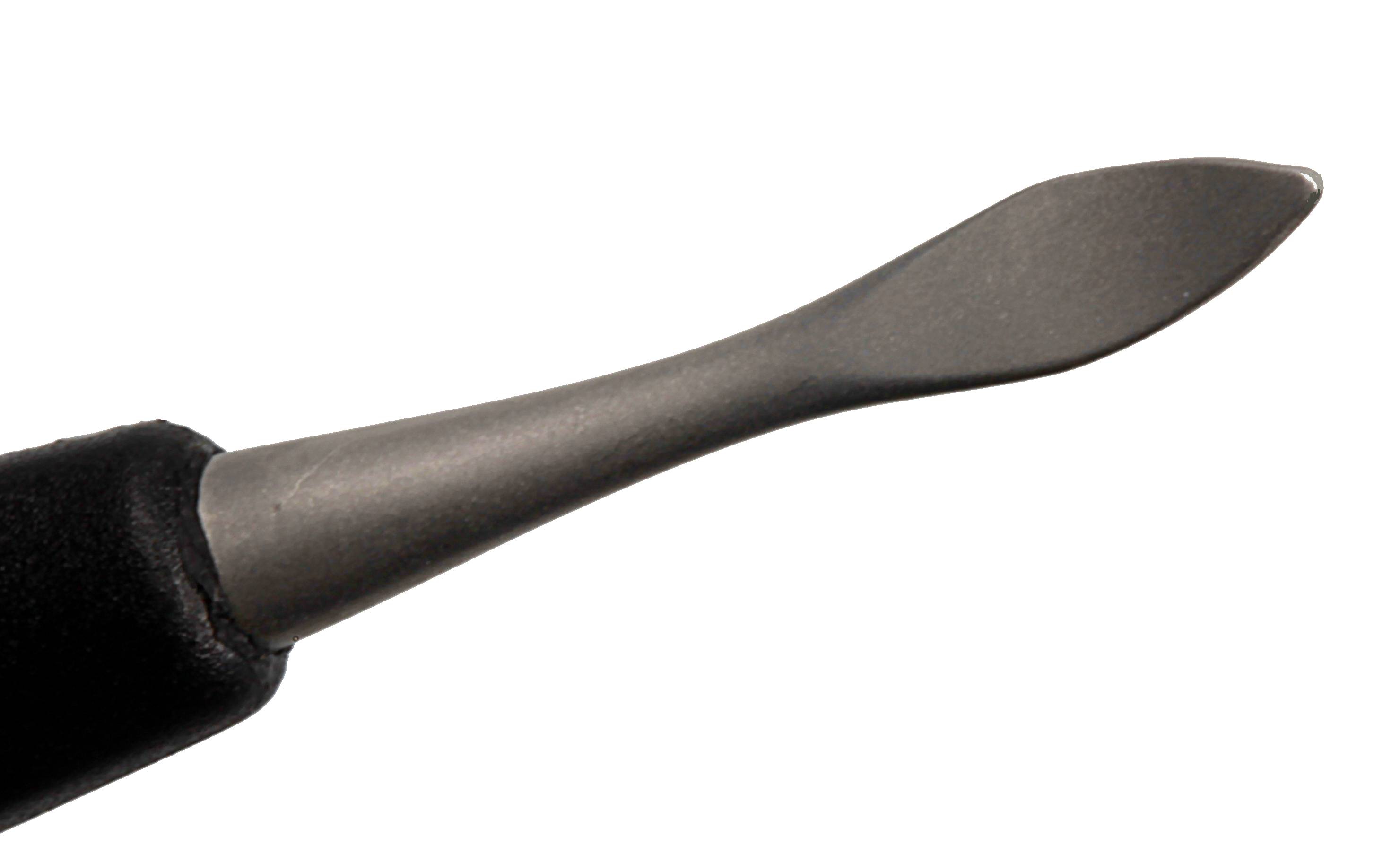 With the concave tip of this SONNENSCHEIN nail cleaner you can safely remove grime and particles from under the nails and along the nail fold. The cleaner is made of stainless steel and is fitted to a black plastic handle.