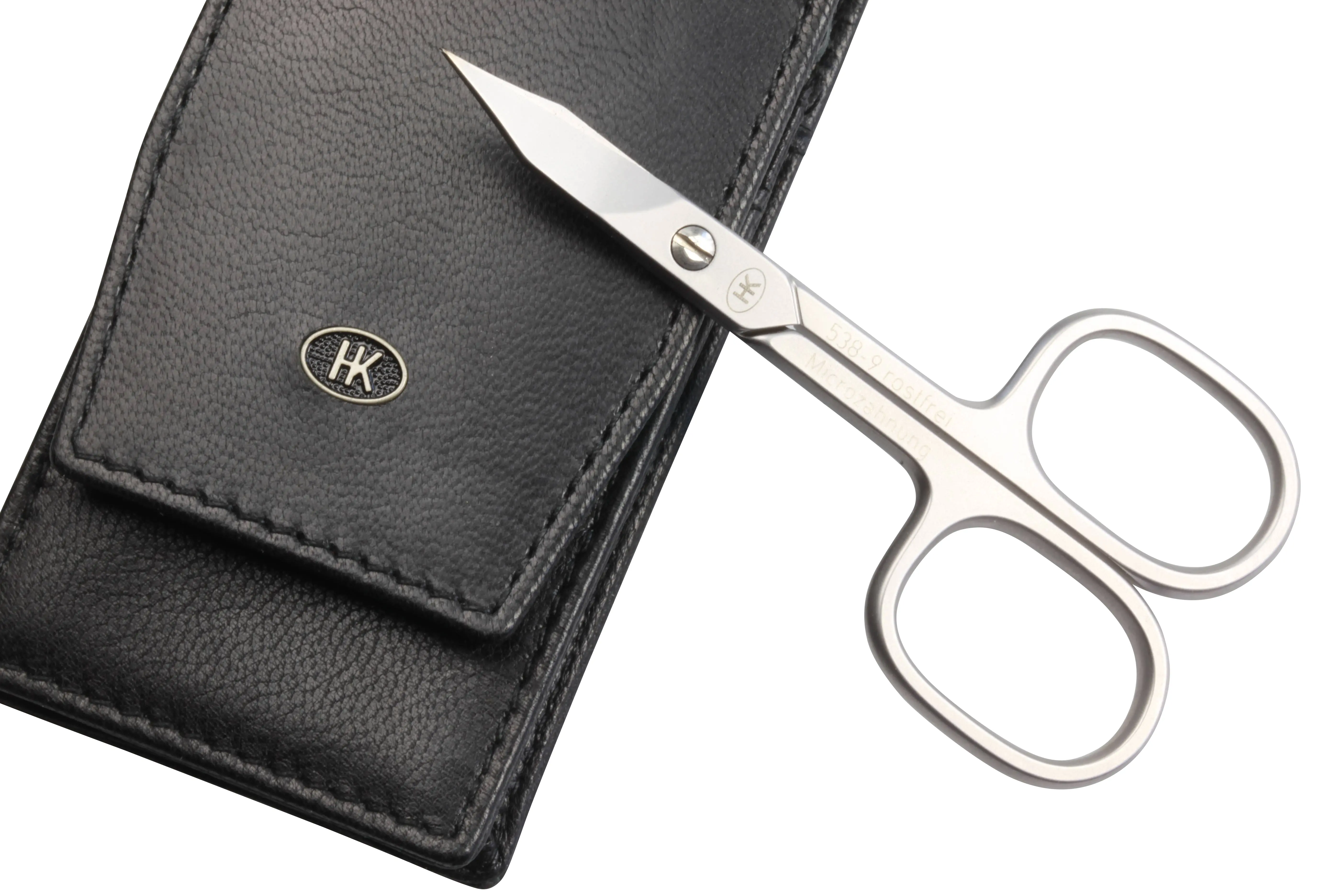 · nail scissors with arrow point; strong enough, to cut nails both easily and accurately, its arrow pointed tip allows to also remove even finest cuticles with precision; the one-sided microserration of the cutting edges ensures that the scissors really grip and cut rather than slide along the nail; can be re-sharpened!