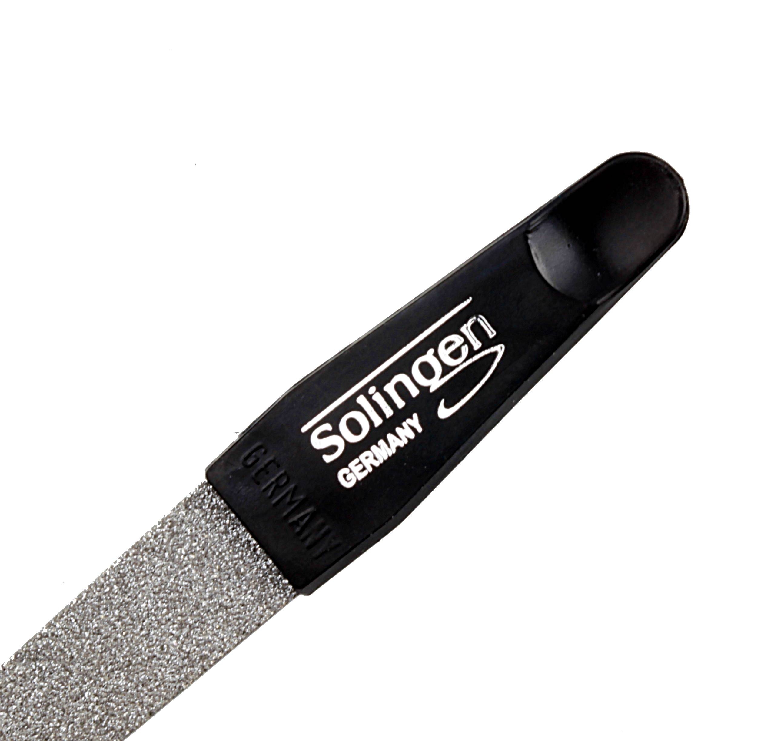 This sapphire nail file "made in Solingen" with a total length of 9 cm is your ideal companion on the go, as it fits into any handbag. It comes with a coarse side for shortening and shaping, as well as, a fine one for smoothing the nails.