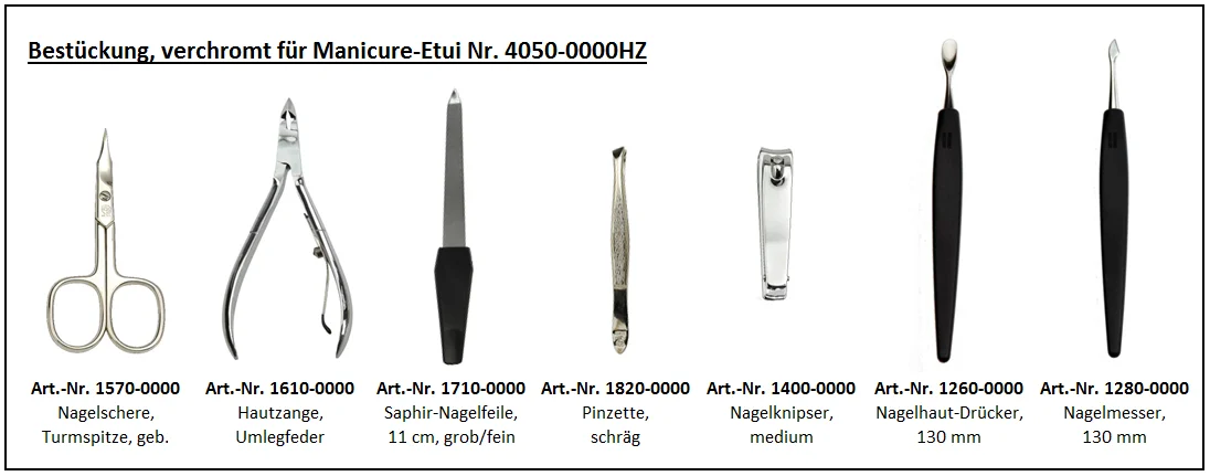 Do you always think of simple, not really extraordinary shapes when it comes to zippered cases? This model definitely dispels this prejudice forever! The elegantly curved shape of this case is light and graceful. Carefully handcrafted from soft nappa lambskin in a bright and shiny red, this case includes seven high-quality nailcare instruments in prove SONNENSCHEIN brand quality, which are crafted from stainless steel with a mirror polished finish. In this particular style, the cuticle scissors, which are a normal choice in most manicure sets, are deliberately replaced by a cuticle nipper.