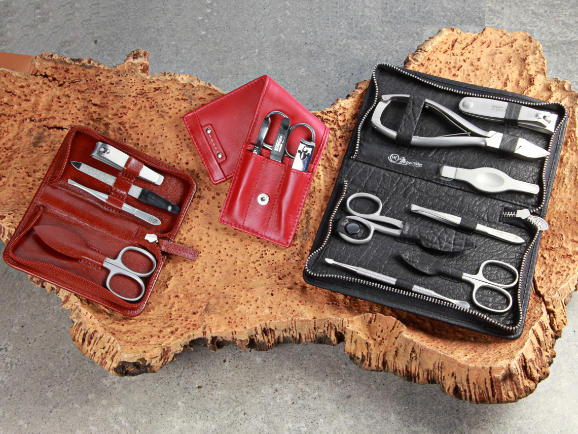 Während Nagelpflegeinstrumente nach wie vor unser Kerngeschäft sind, haben wir unser Sortiment in den 1960er Jahren um Maniküre-Sets erweitert. Im Laufe der Jahrzehnte ist unsere Produktpalette um Kulturbeutel, edle Lederwaren wie Schmuckkästchen und Geldbörsen sowie elegante Schreibtischaccessoires gewachsen.